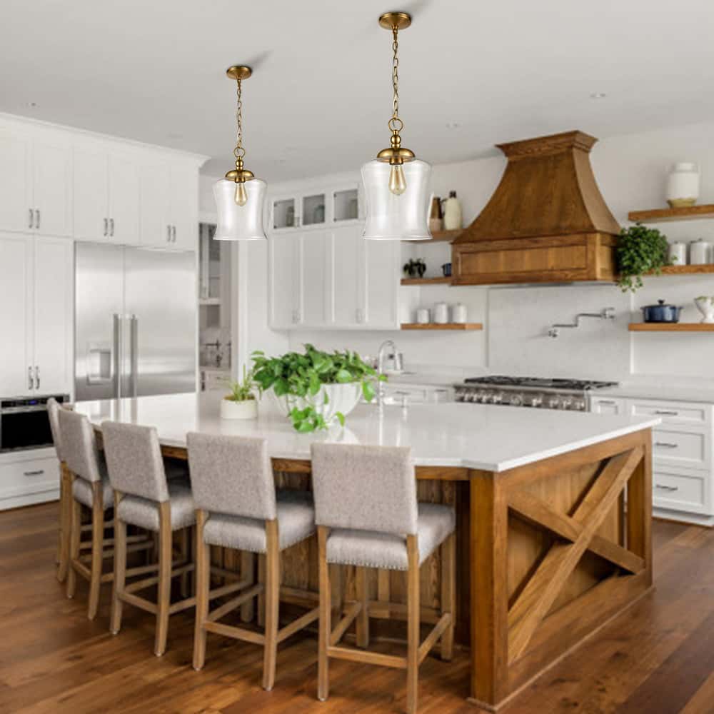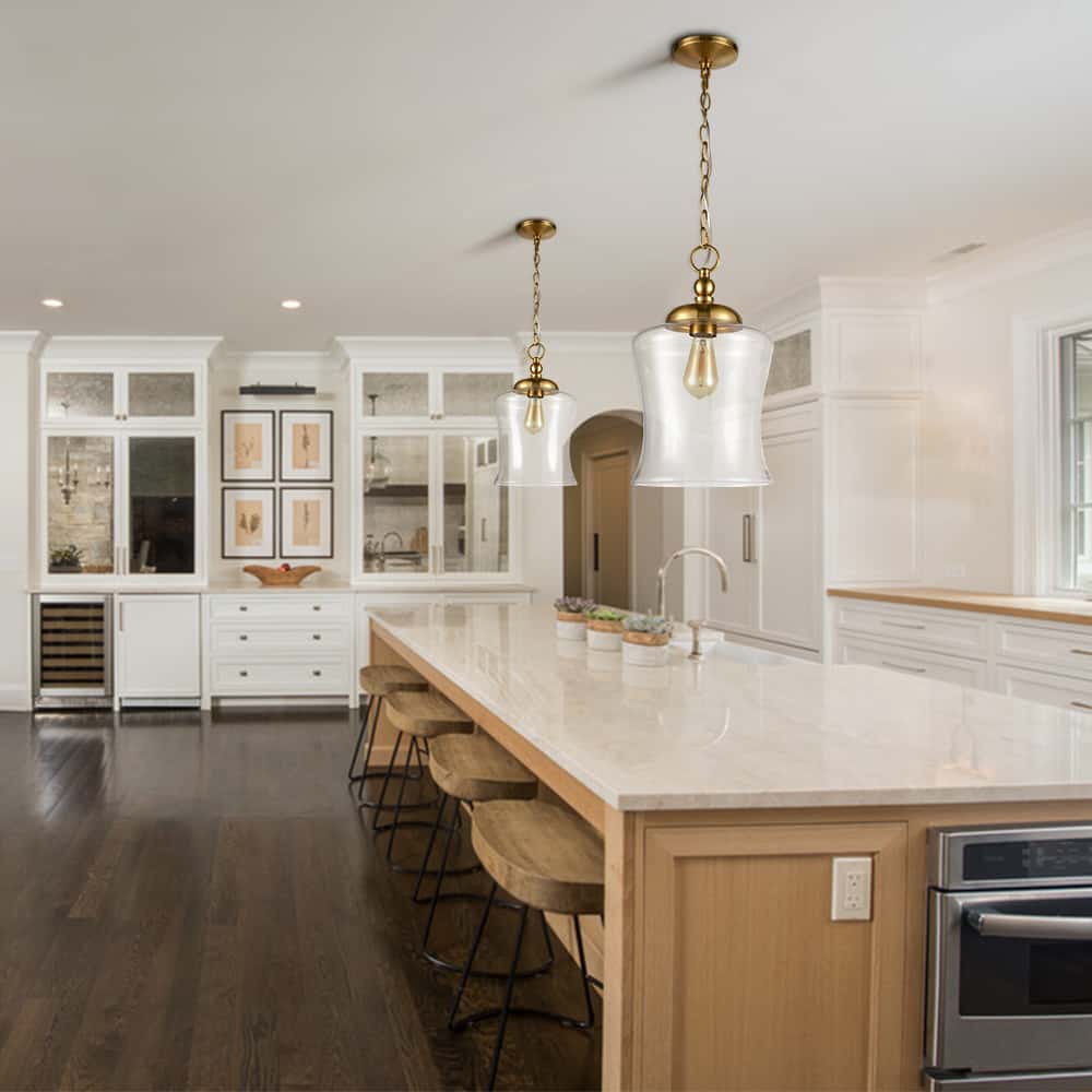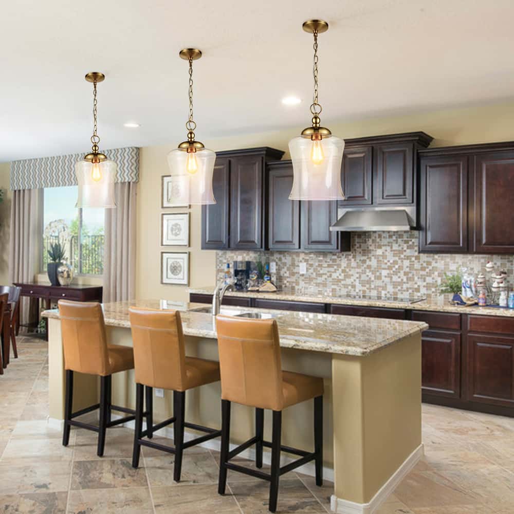 The brass pendant lights revitalize your home decor with a boost of brightness, its clear glass shades give your aesthetic a hint of industrial inspired touch.
