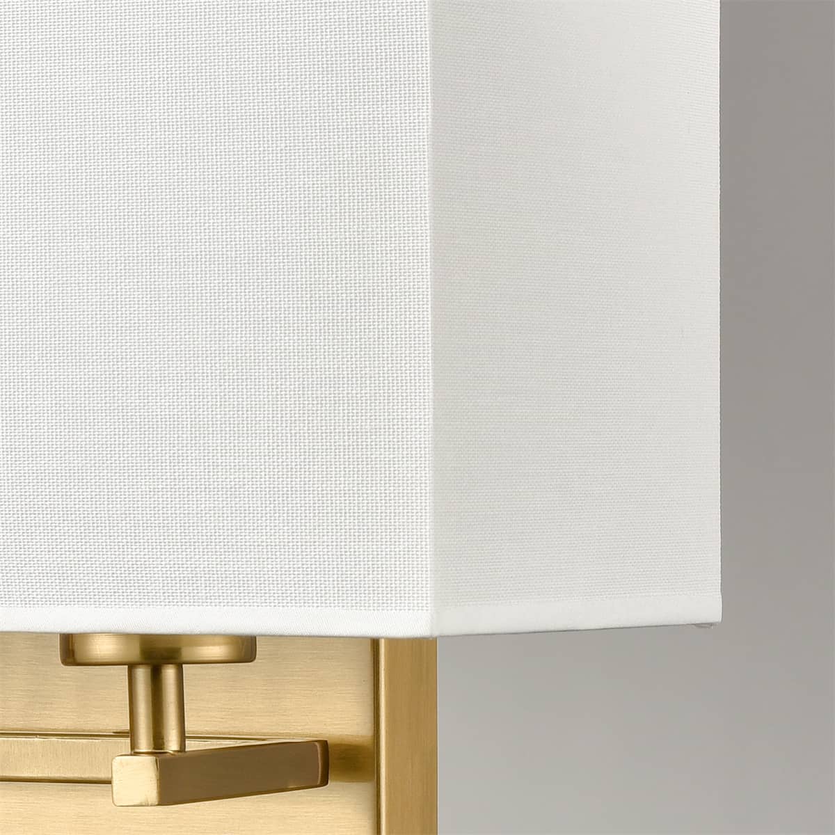 The modern brass wall lamp show off the unique texture of double-layer electroplating and brushed metal. The light pouring through the fabric lampshades is gently muted and fills the room without any glare.