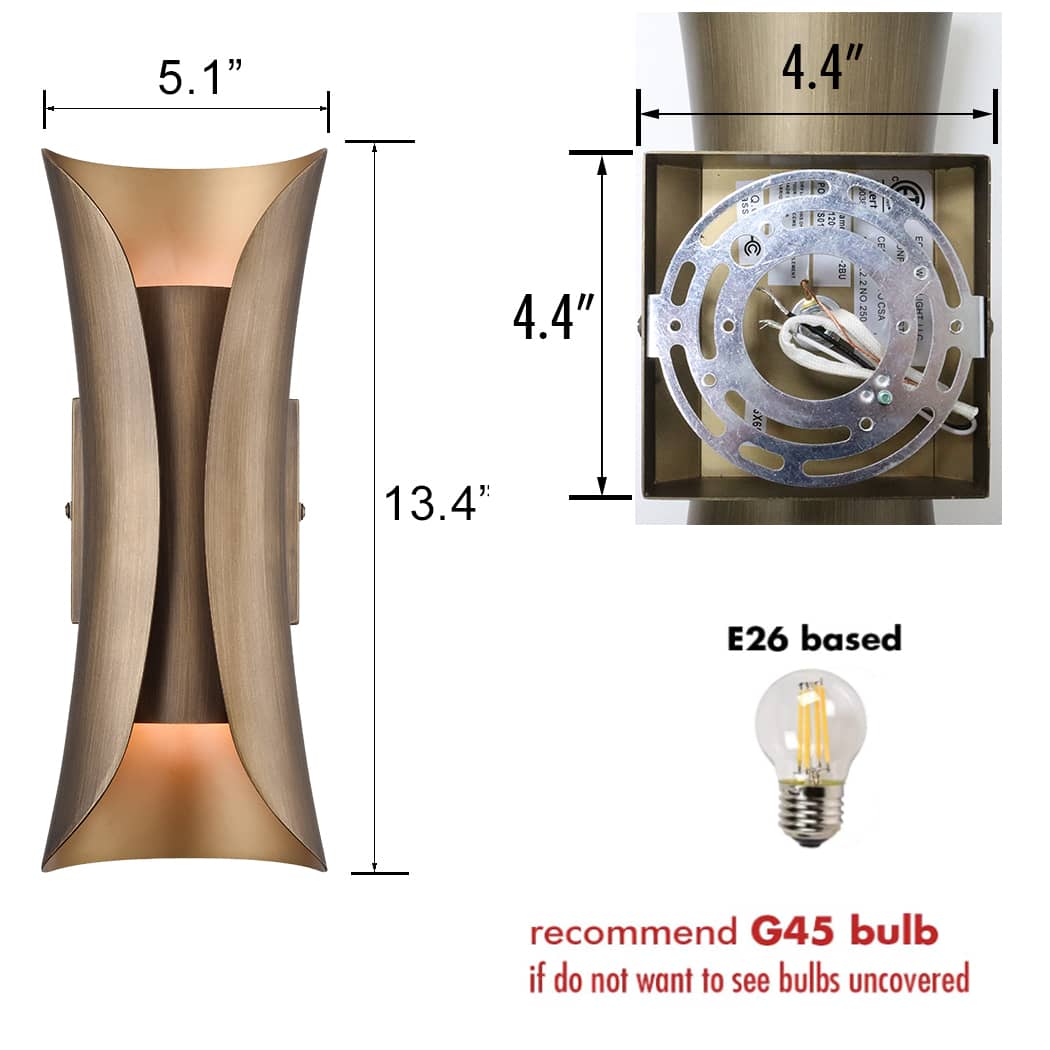 The wall light features 2 E26 base socket which is compatible with a variety of bulb types: LED, INCANDESCENT, CFL.