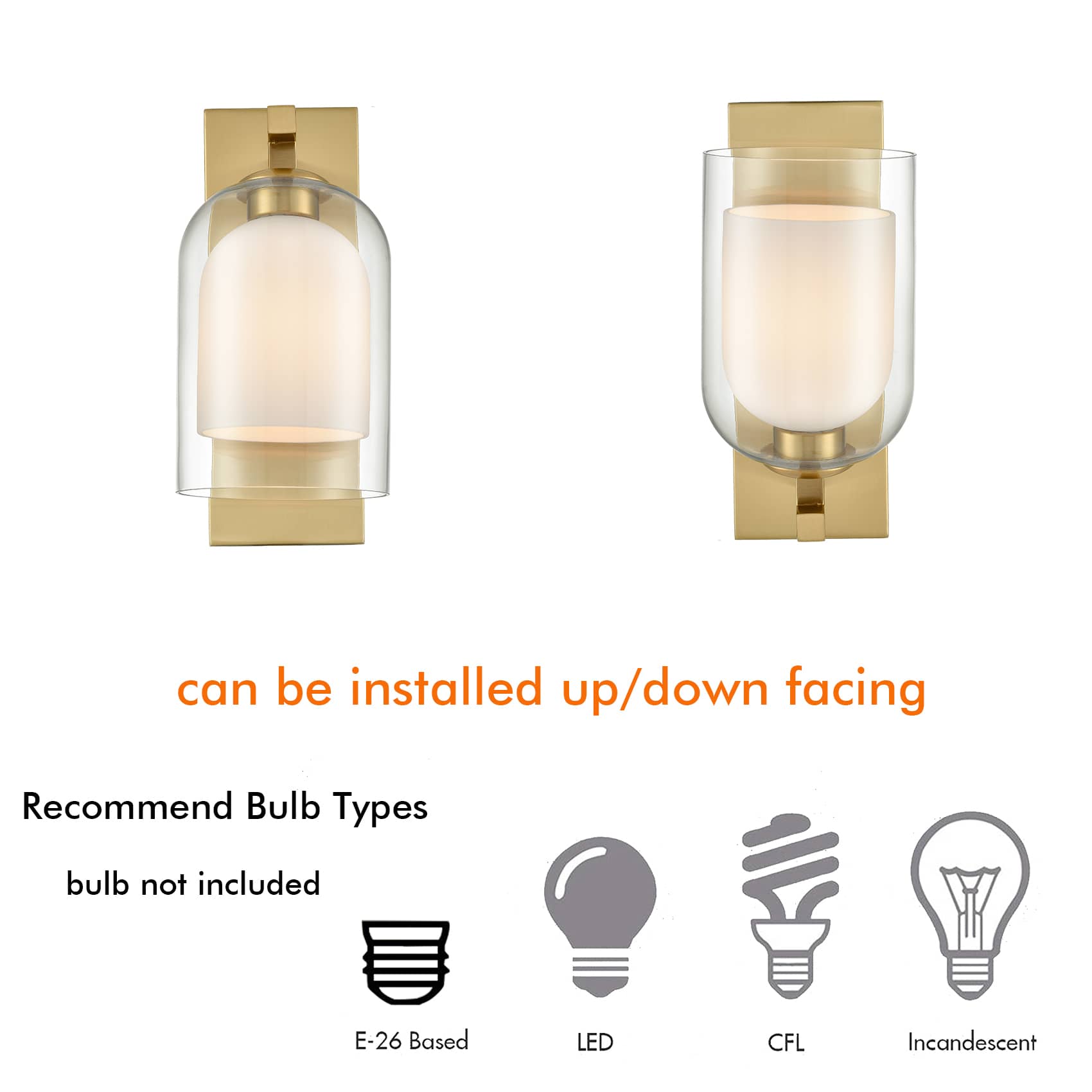 The modern double glass shade wall light features 1 E26-base socket which is compatible with a variety of bulb types: LED, INCANDESCENT, CFL.