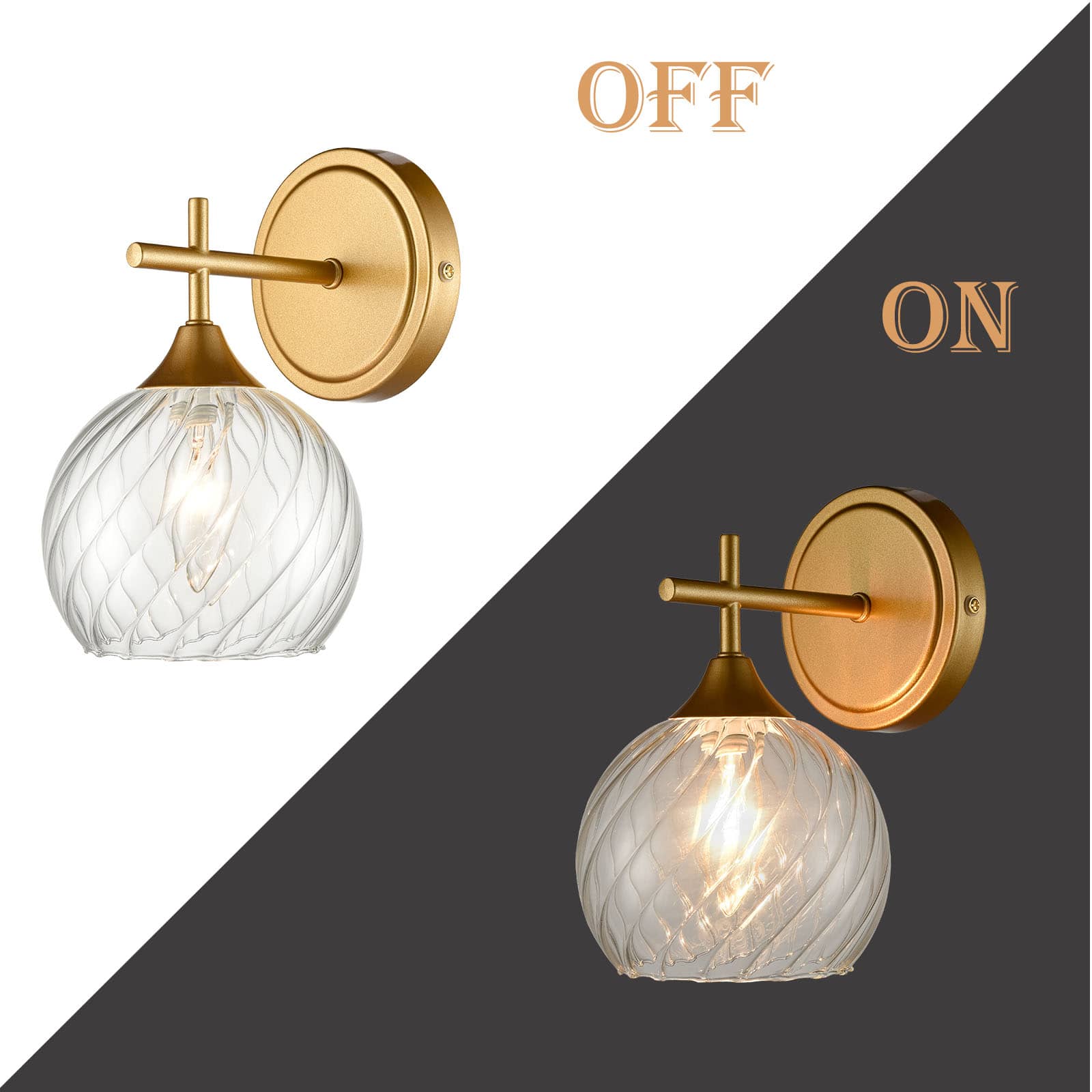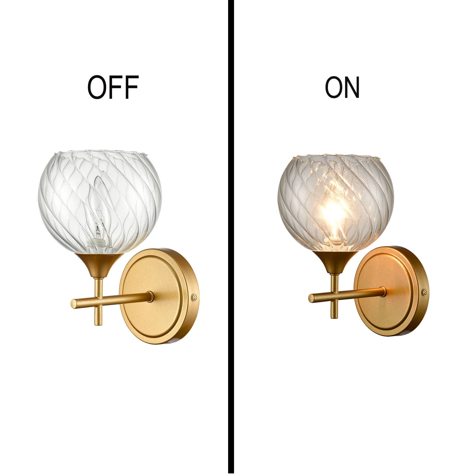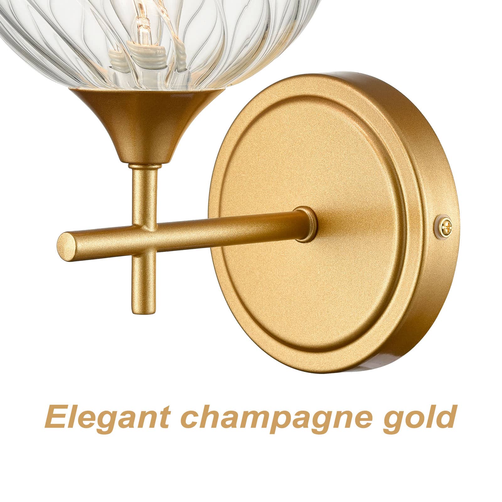 The vintage gold bathroom wall sconces show off a boost of sparkle with their shimmery gold finish. Their clear glass shades that flaunt leave pattern provide attractive eye appeal and convey a refined touch to your home. Their hand-blown clear glass globe shades introduce a large dose of texture to the space. Boasting a sleek sphere silhouette, they show off the beauty of geometry and complete the aesthetic with an elegant touch. A charming glow shines through the glass shade, creating intriguing light effects and shades.