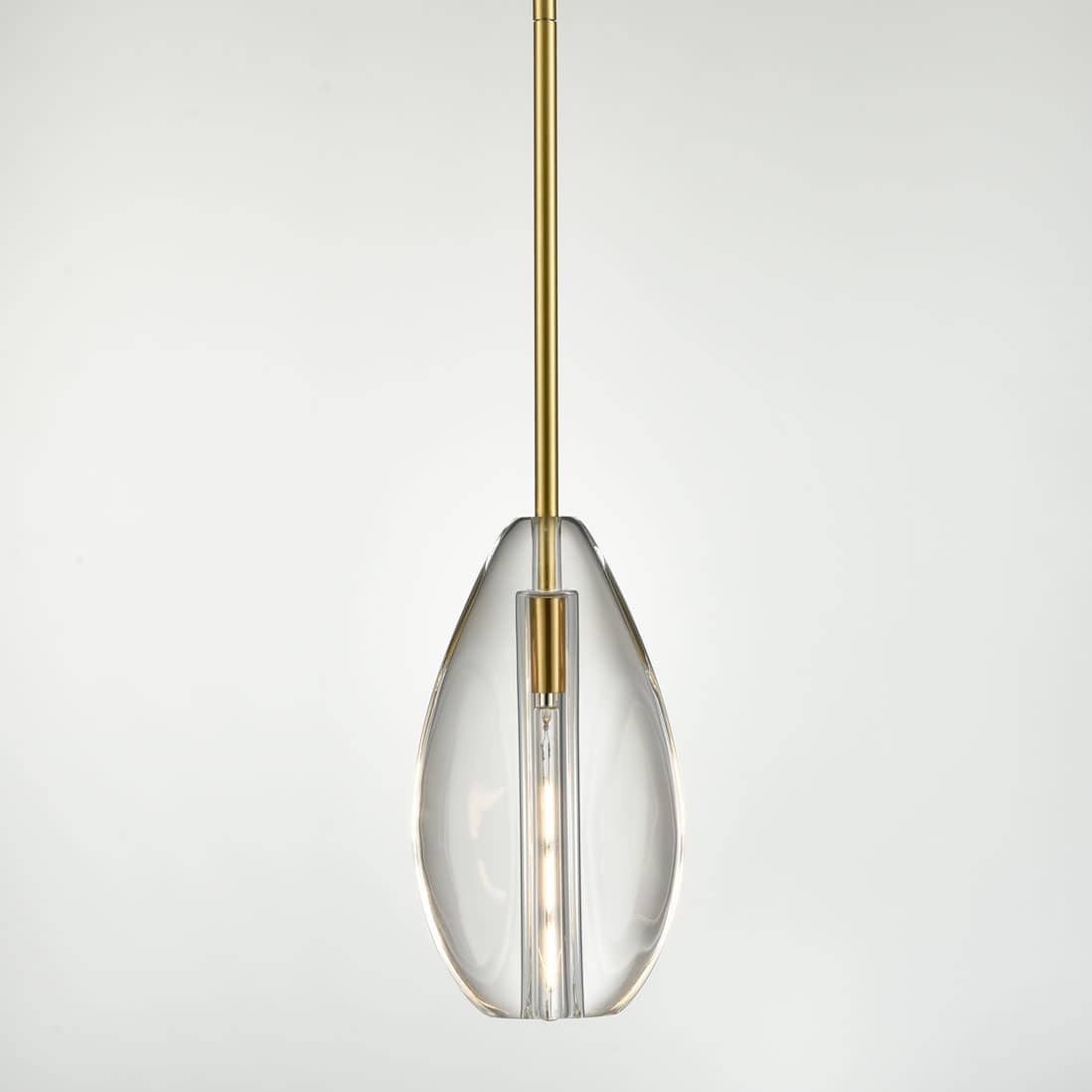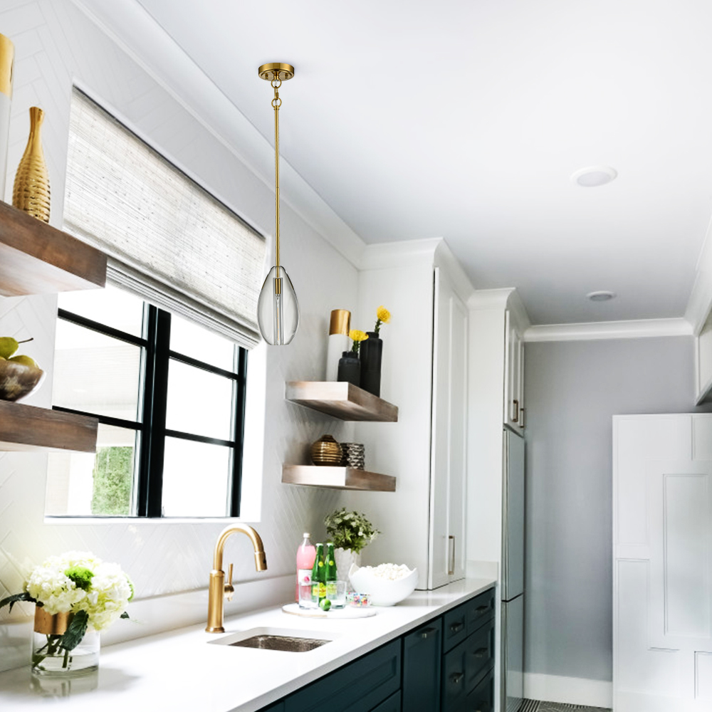 The modern clear crystal pendant light sports a rustproof electrophoretic gold finish, perking up your interior with a touch of glitz. Crafted of shimmery clear crystal, its waterdrop-inspired lampshade draws the eye upward to a beautiful display of crystal and metal. It catches the light to create a beautiful dazzling effect as well as provide generous ambient illumination to your living space. Its crystal lampshade contrasts the gold finish and adds alluring visual interest to the interior. An E12-base T6 3-watt LED bulb featuring 120V, 2700K color temperature, and 80 in RA is included in the package. It comes with three 12-inch rods and one 6-inch rod to suit your different lighting needs.