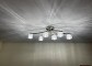 The crystal glass shades are attached to two wavy bars and largely resemble the glittering ice cubes. With exquisite workmanship, six shades are evenly aligned in linear formation when viewed from different angles.