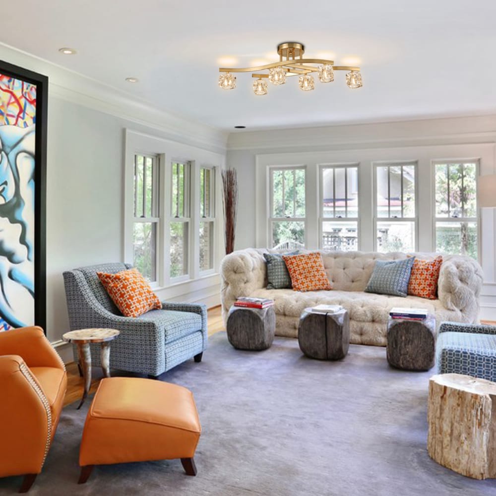 The modern crystal ceiling light is compatible with six 40-watt G9-base bulbs (NOT included). It is fully dimmable with a compatible dimmer switch and dimmable bulbs. It disperses soft light rays throughout your space, creating a wonderful ambiance in your home.
