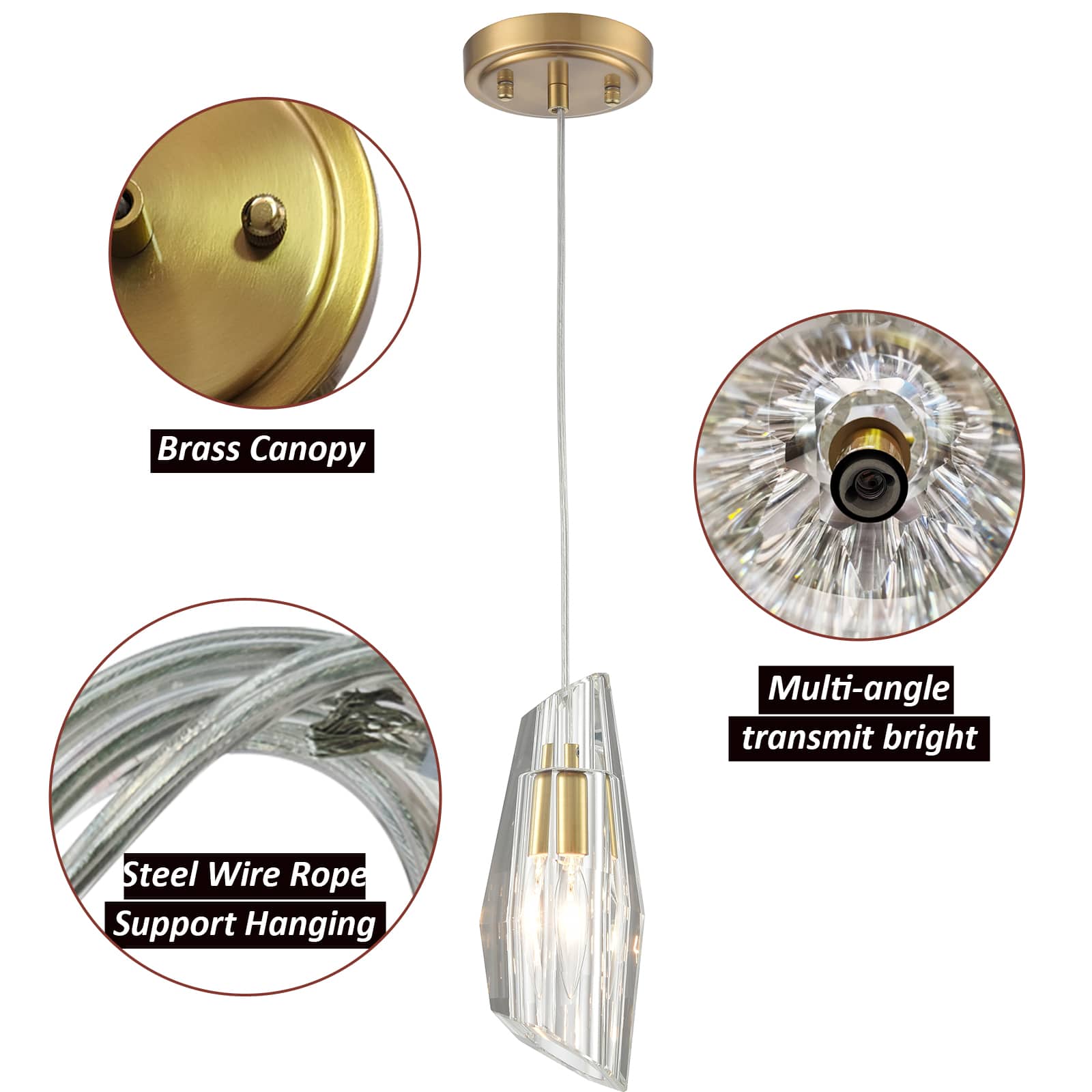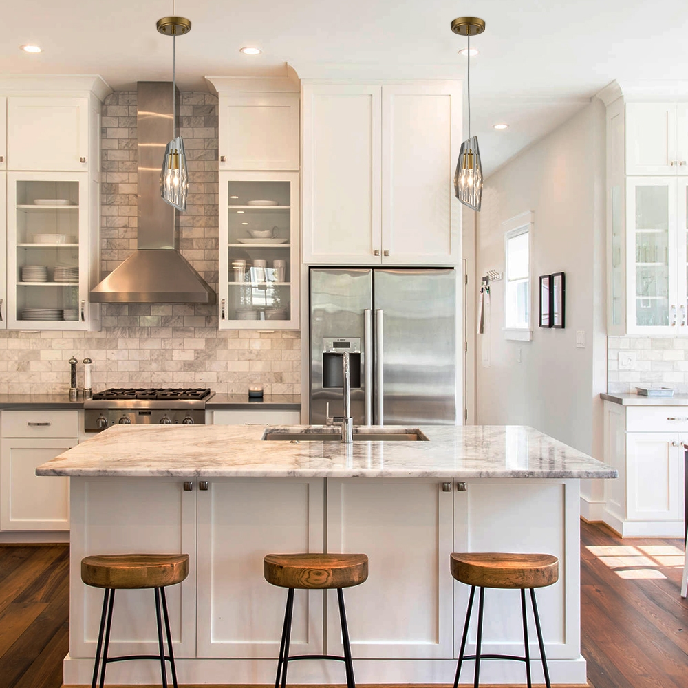 The crystal pendant light fixture sports a rustproof electrophoretic gold finish, perking up your interior with a touch of glitz. Its fluted elongated crystal lampshade is a special kind of bell shade that shows off an angled top and an angled bottom. Its crystal lampshade draws the eye upward to a beautiful display of crystal and metal. It catches the light to create a beautiful dazzling effect as well as provide generous ambient illumination to your living space. It has all the style, charisma, and drama required to catch everybody’s eyes. It comes with a 63-inch hanging cord to suit your different lighting needs.
