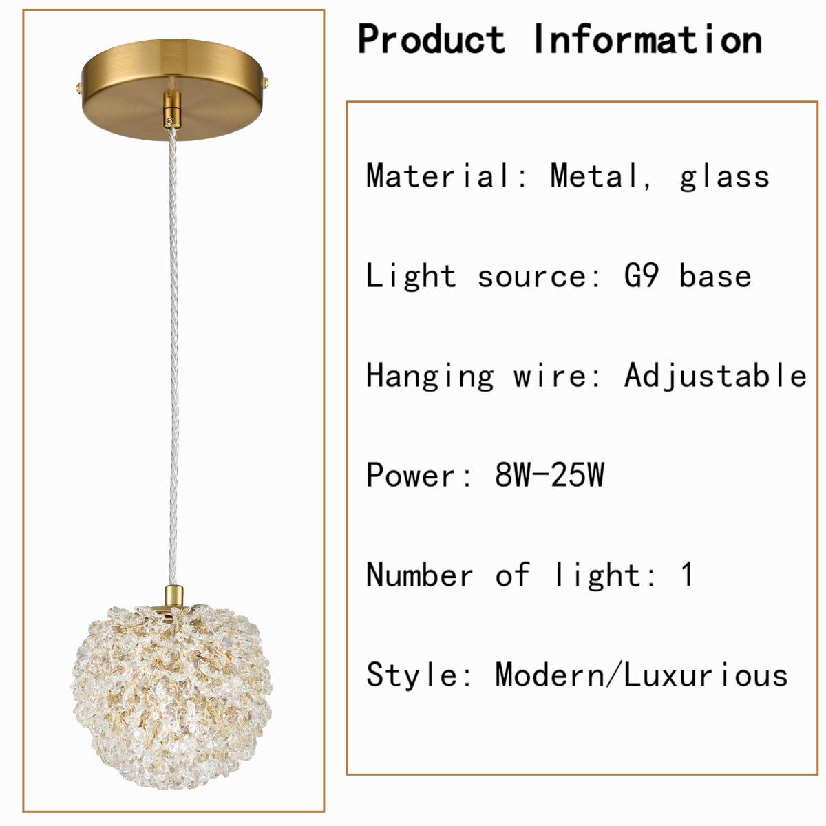 The modern crystal pendant light is compatible with one 8W LED bulb or one 25-watt G9-base incandescent or CFL bulb.