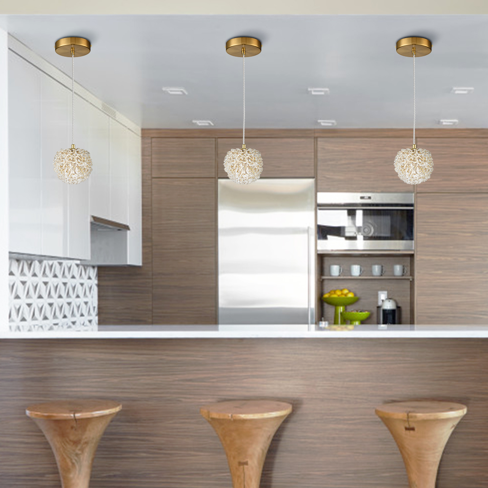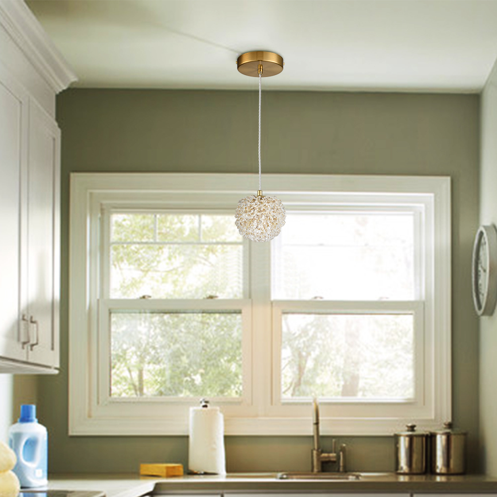 The modern crystal pendant light’s canopy and lamp holder show off a gleaming electrophoretic gold finish, pepping up your interior with a touch of glitz. A myriad of dazzling octagonal crystal beads are clustered together to form a globe shade, delivering a huge dose of contemporary sparkle and shine to your home. Offering a sleek spherical silhouette, it lends a touch of geometry and completes the aesthetic with a surprising twist. Its opulent crystal accent adds panache to a lighting fixture and gives the space a luxurious touch. A charming glow shines through the crystal lampshade, which creates intriguing light effects and shades. It comes with a 59.06-inch hanging cord.