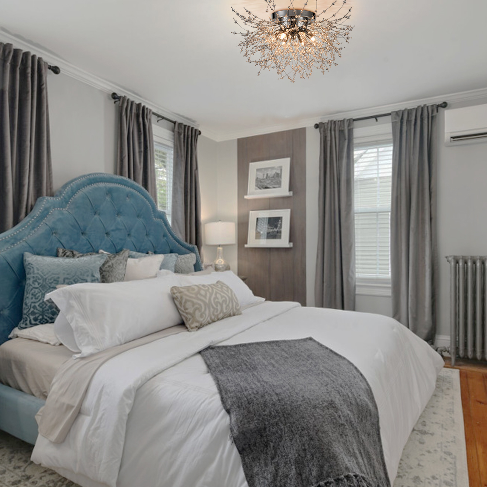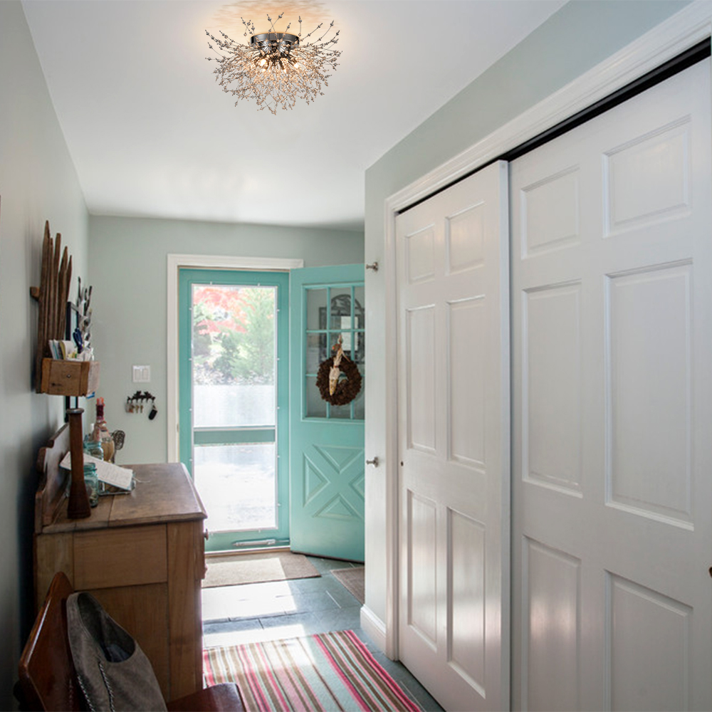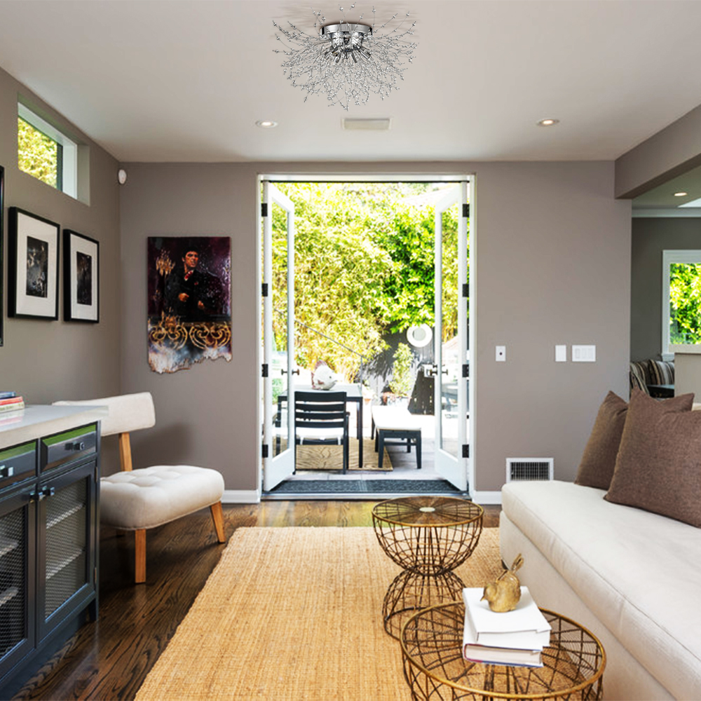 Showing off a rustproof chrome finish, the 6-light crystal sputnik ceiling light effortlessly lends a nice pop of brightness to your living space. Inspired by the appearance of dandelion flowers, it encompasses glamour and whimsy. Boasting a multitude of K9 crystal branches and six lamp holders shooting out from the center sphere, it delivers a huge dose of contemporary sparkle and shine. Its crystal beads on the wires largely resemble hundreds of tiny flowers collected together into a composite flower head, providing a ton of eye appeal and packing a powerful, artistic punch to your home. A charming glow shines through the crystal branches, which creates intriguing light effects and shades.