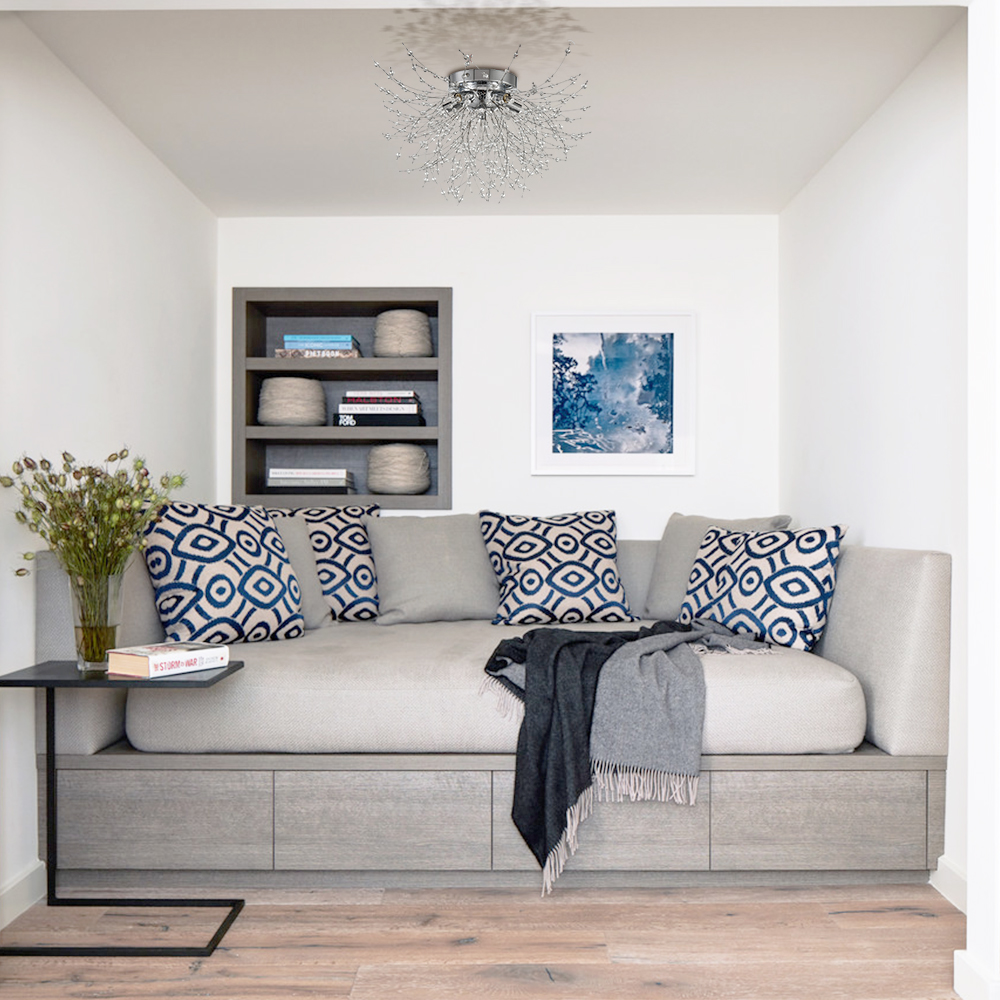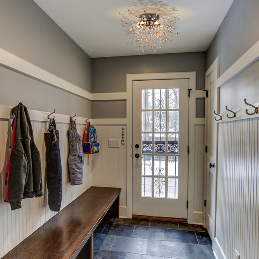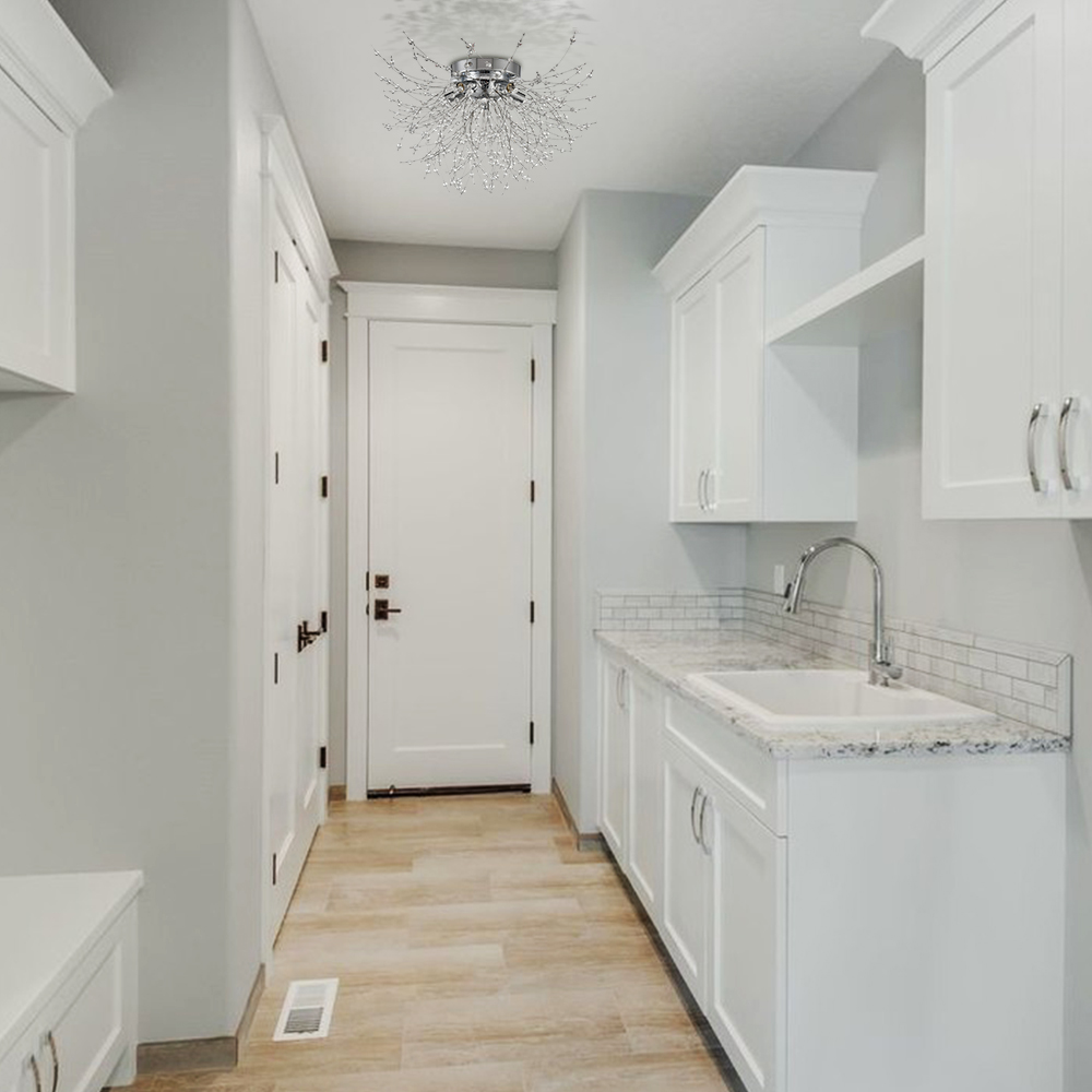 Showing off a rustproof chrome finish, the modern crystal sputnik ceiling light effortlessly lends a nice pop of brightness to your living space. Inspired by the appearance of dandelion flowers, it encompasses glamour and whimsy. Boasting a multitude of K9 crystal branches and five lamp holders shooting out from the center sphere, it delivers a huge dose of contemporary sparkle and shine. Its crystal beads on the wires largely resemble hundreds of tiny flowers collected together into a composite flower head, providing a ton of eye appeal and packing a powerful, artistic punch to your home. A charming glow shines through the crystal branches, which creates intriguing light effects and shades.