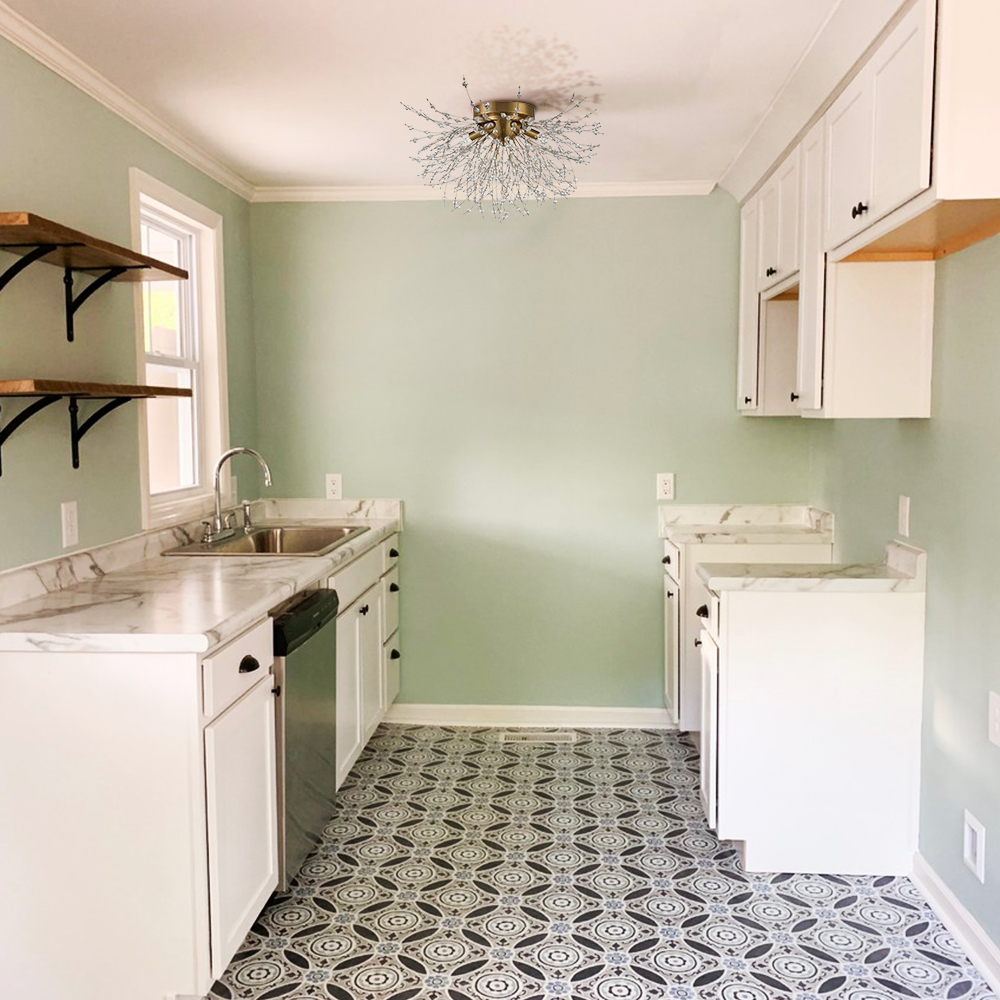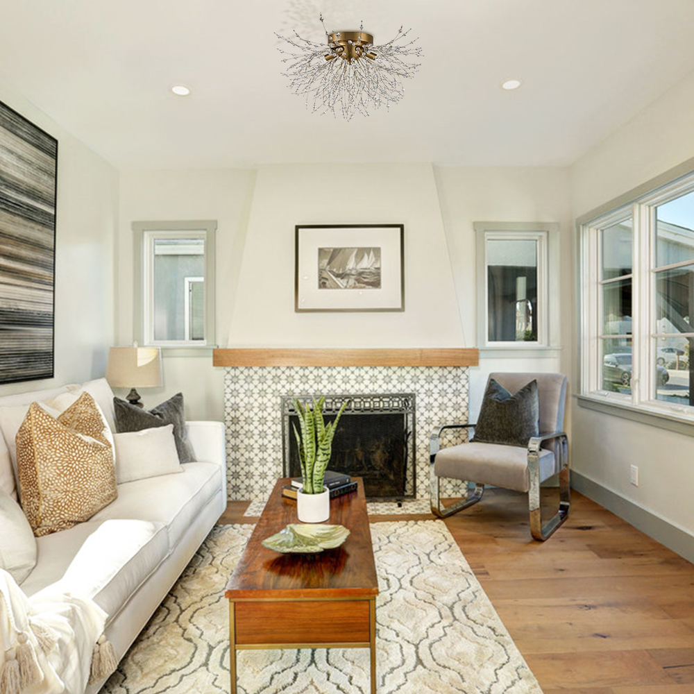Showing off a rustproof electrophoretic brass finish, the modern crystal sputnik ceiling light effortlessly lends a nice pop of brightness to your living space. Inspired by the appearance of dandelion flowers, the light fixture encompasses glamour and whimsy. Boasting a multitude of K9 crystal branches and five lamp holders shooting out from the center sphere, it delivers a huge dose of contemporary sparkle and shine. Its crystal beads on the wires largely resemble hundreds of tiny flowers collected together into a composite flower head, providing a ton of eye appeal and packing a powerful, artistic punch to your home. A charming glow shines through the crystal branches, which creates intriguing light effects and shades.