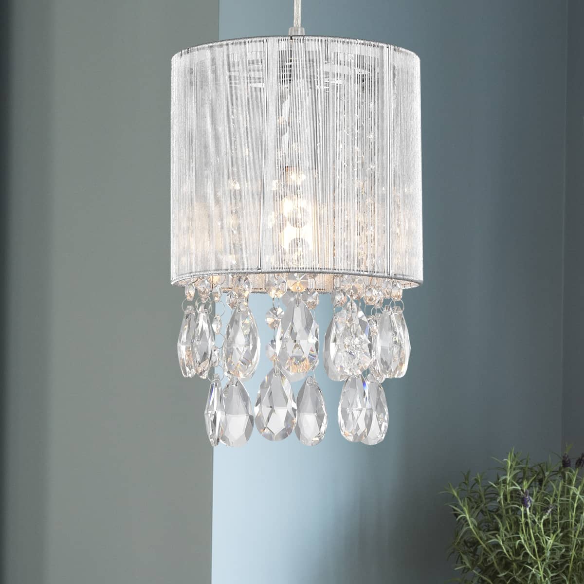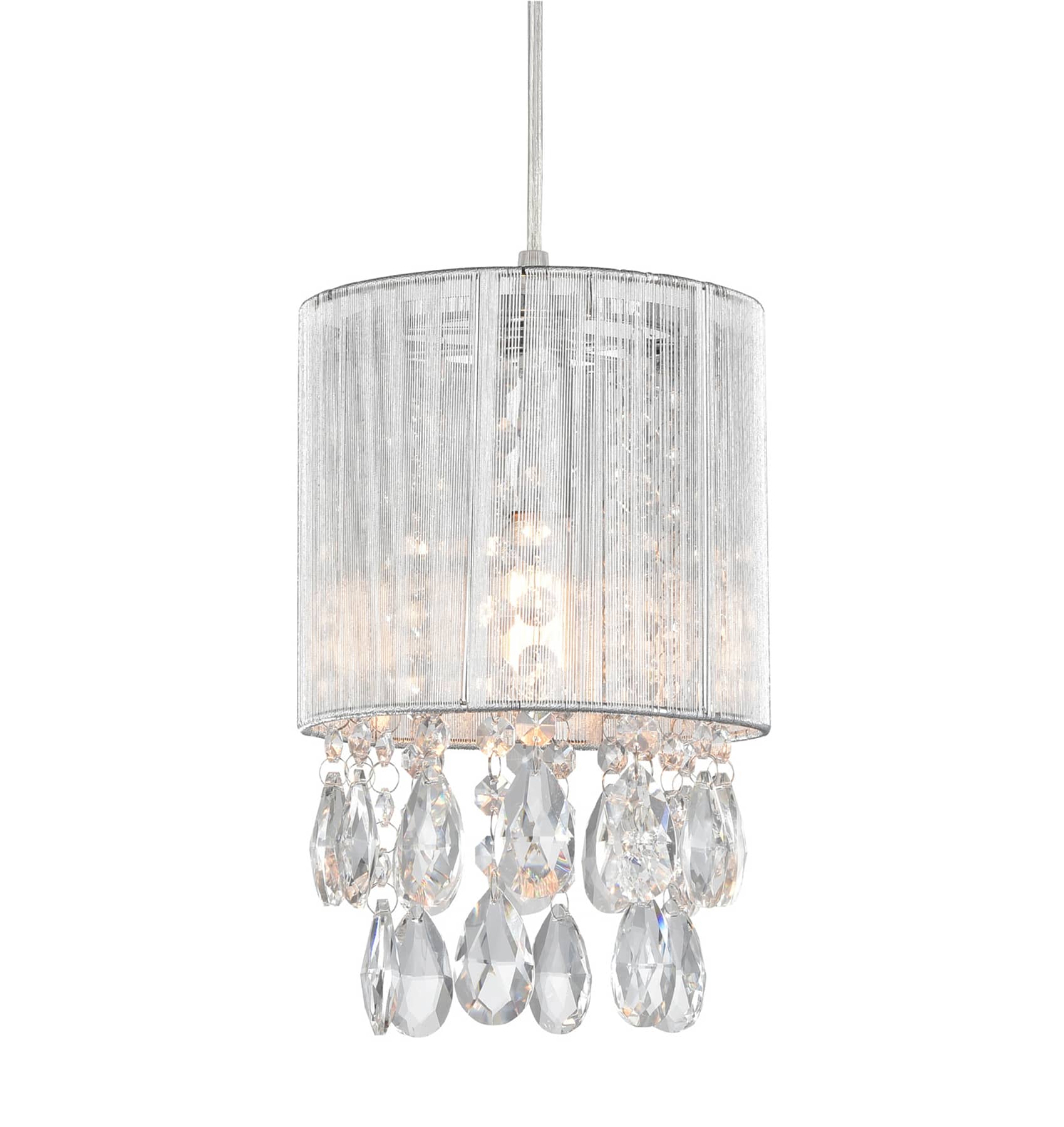 Modern Drum Shade Crystal Pendant Lighting, Silver String