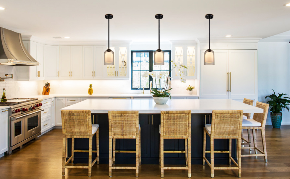 Flaunting a rustproof black finish, the modern mini pendant light brings a dash of drama to your interior. Crafted of impurity-free hand-blown clear glass and opal glass, its double bell shades lend understated elegance and industrial chic to your living space. It doubles up on the glass bell shades, creating layers of nuanced light. Its inner opal glass bell shade is encircled and protected by a bigger clear glass bell shade, boasting elegant geometry and adding a ton of eye appeal to the scene. It is sloped/vaulted ceiling adaptable and comes with three 12-inch rods and one 6-inch rod.