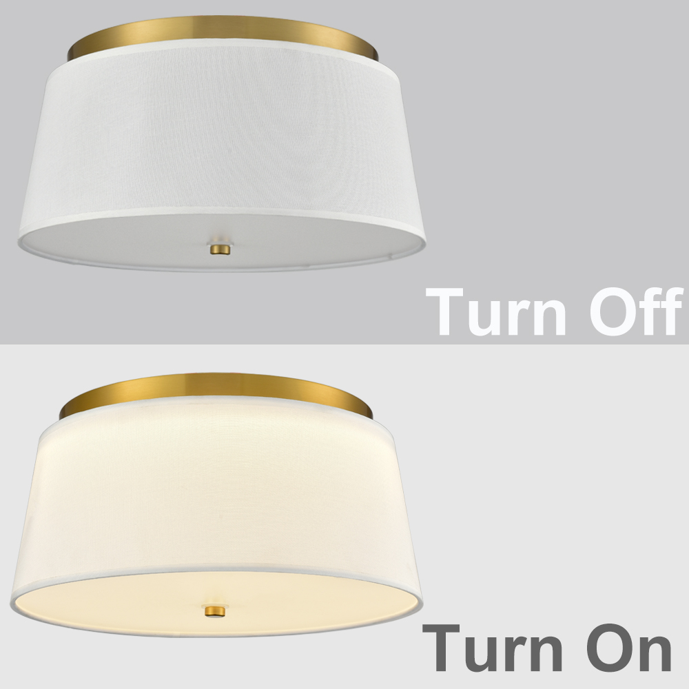 The LED ceiling light’s canopy, lamp-holder, and bottom accent flaunt a rustproof electrophoretic brass, pepping up your living space with a bit of bling. Its white linen drum shade casts an enchanting aura of elegance and brings rich visual interest to your interior. The light pouring through the linen drum shade is gently muted and fills the room without any glare. Its trapezoid drum shade gives your living space a touch of geometry. It is a gorgeous addition to your space with its geometric design. It is a perfect fixture for your bedroom, dining room, entryway, hallway, and living room.