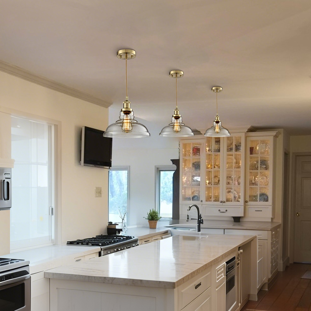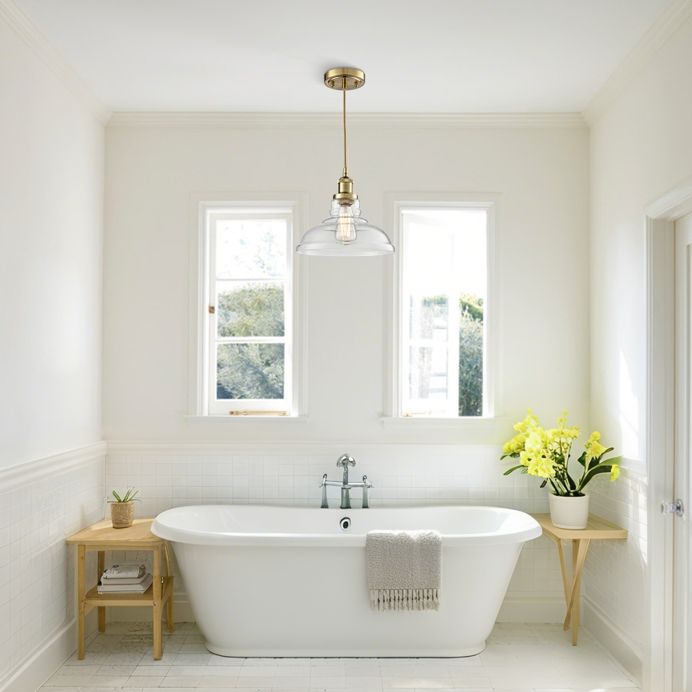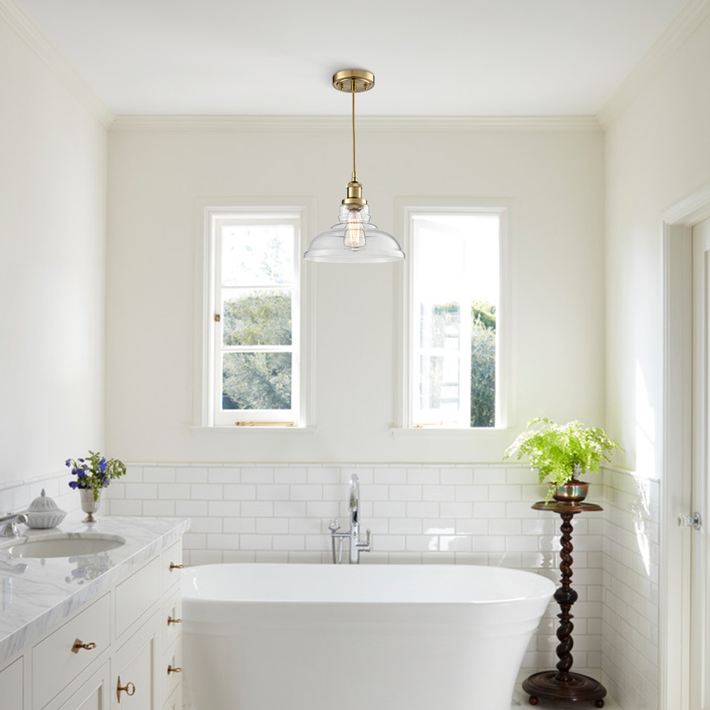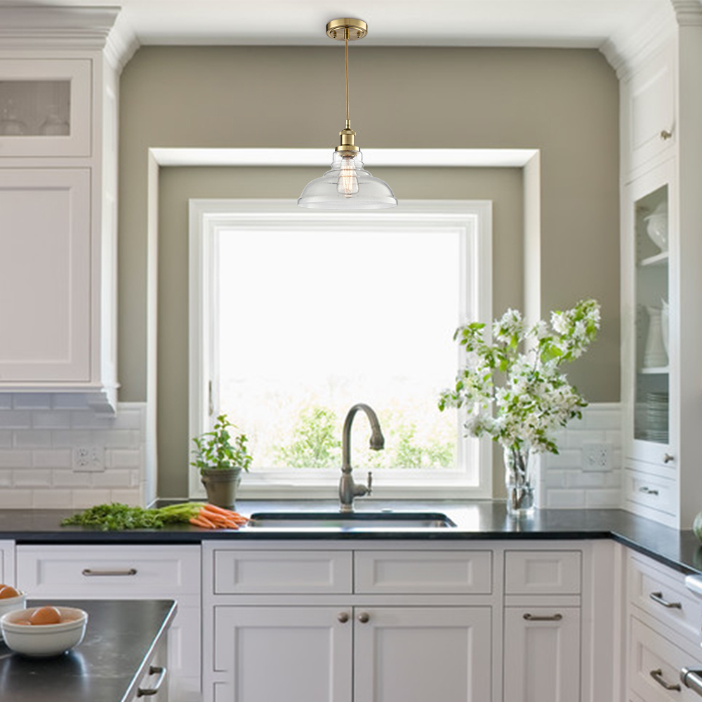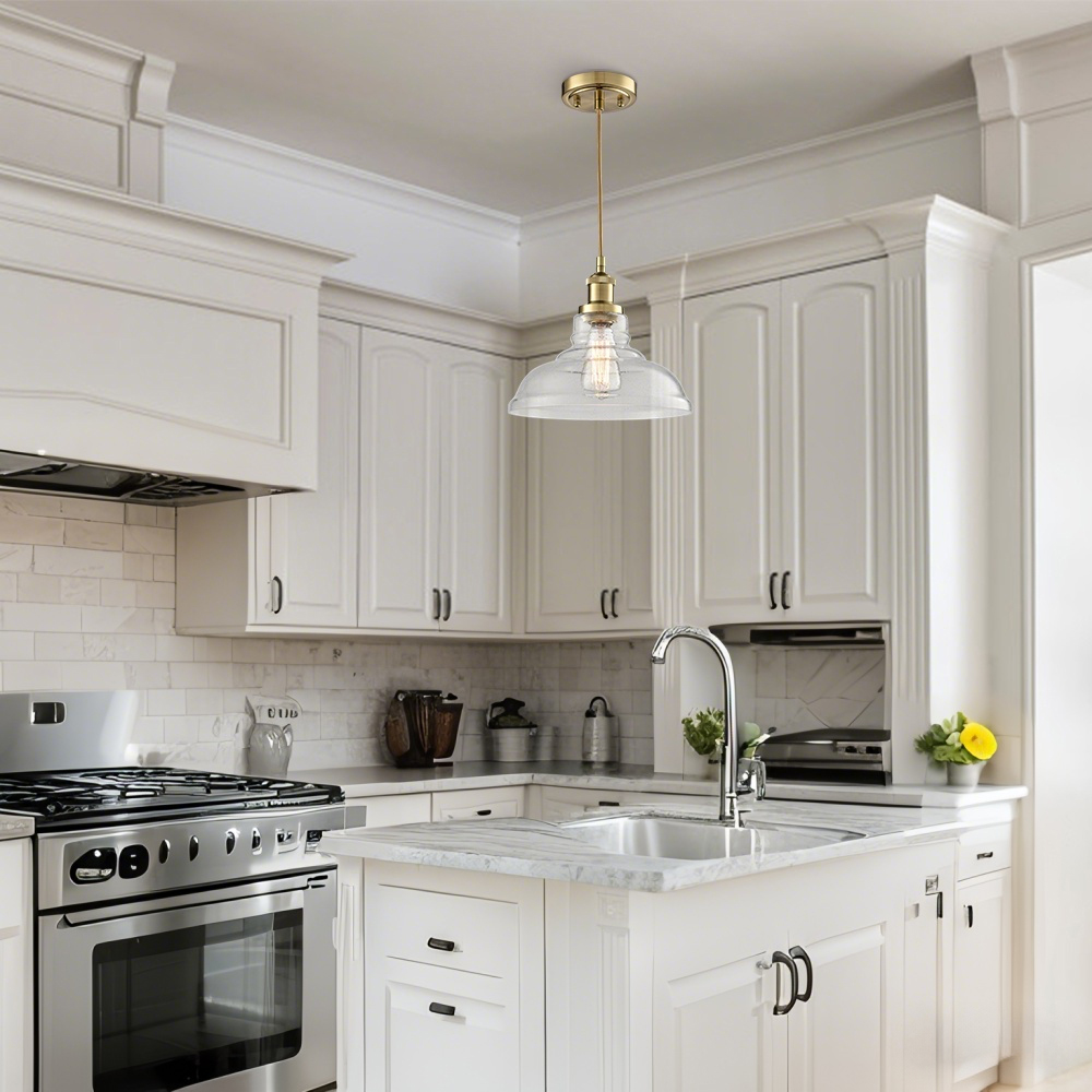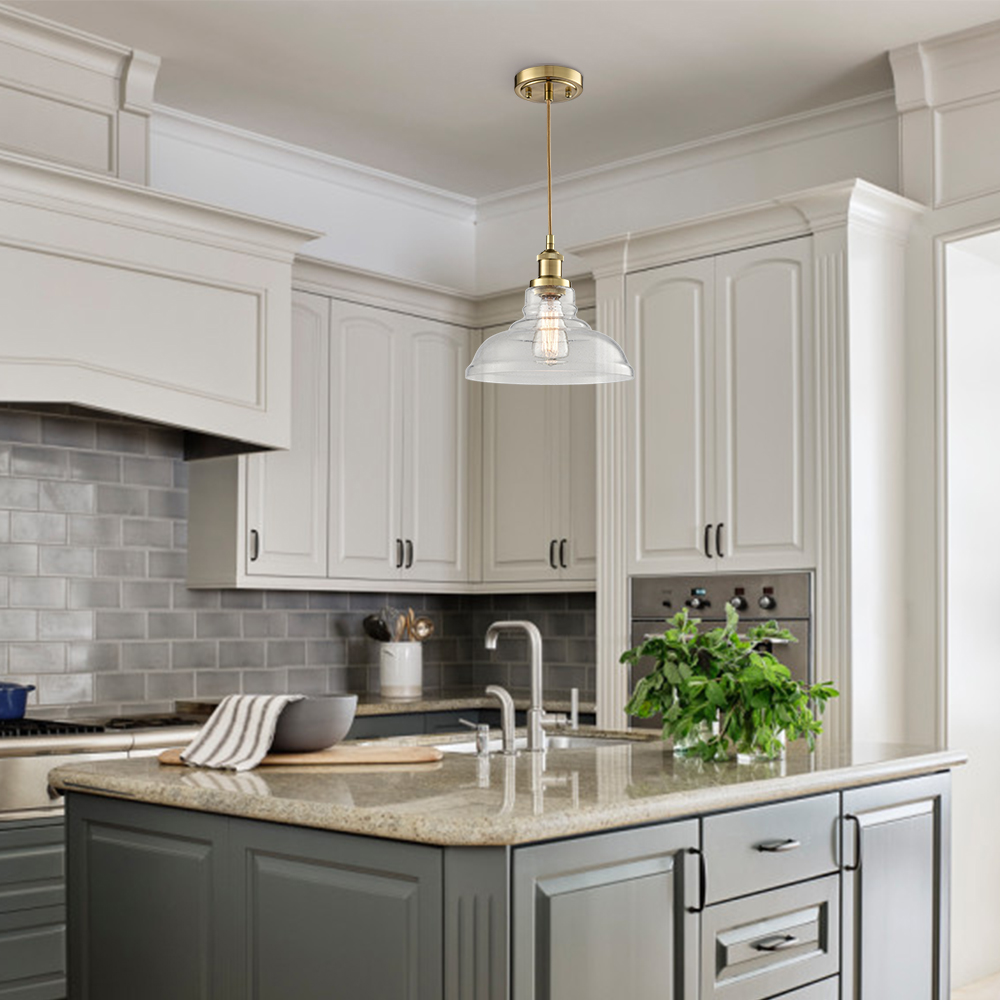 Boasting a shiny brass finish, the modern brass pendant light brightens up your interior with a dash of metallic gleam. Crafted of impurity-free hand-blown bubble glass, its dome shade brings a muted style and modern sophistication to your living space. With exquisite workmanship, the pendant light is durable and rustproof. Its dome shade contrasts the gold finish and adds alluring visual interest to the living area. It comes with a 47.2-inch adjustable cord.