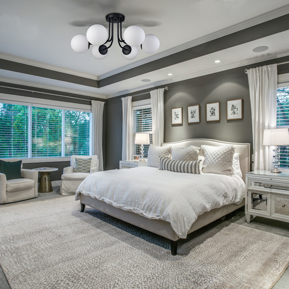 6-light modern Globe Black Semi Flush Mount Ceiling Light Fixture for Bedroom