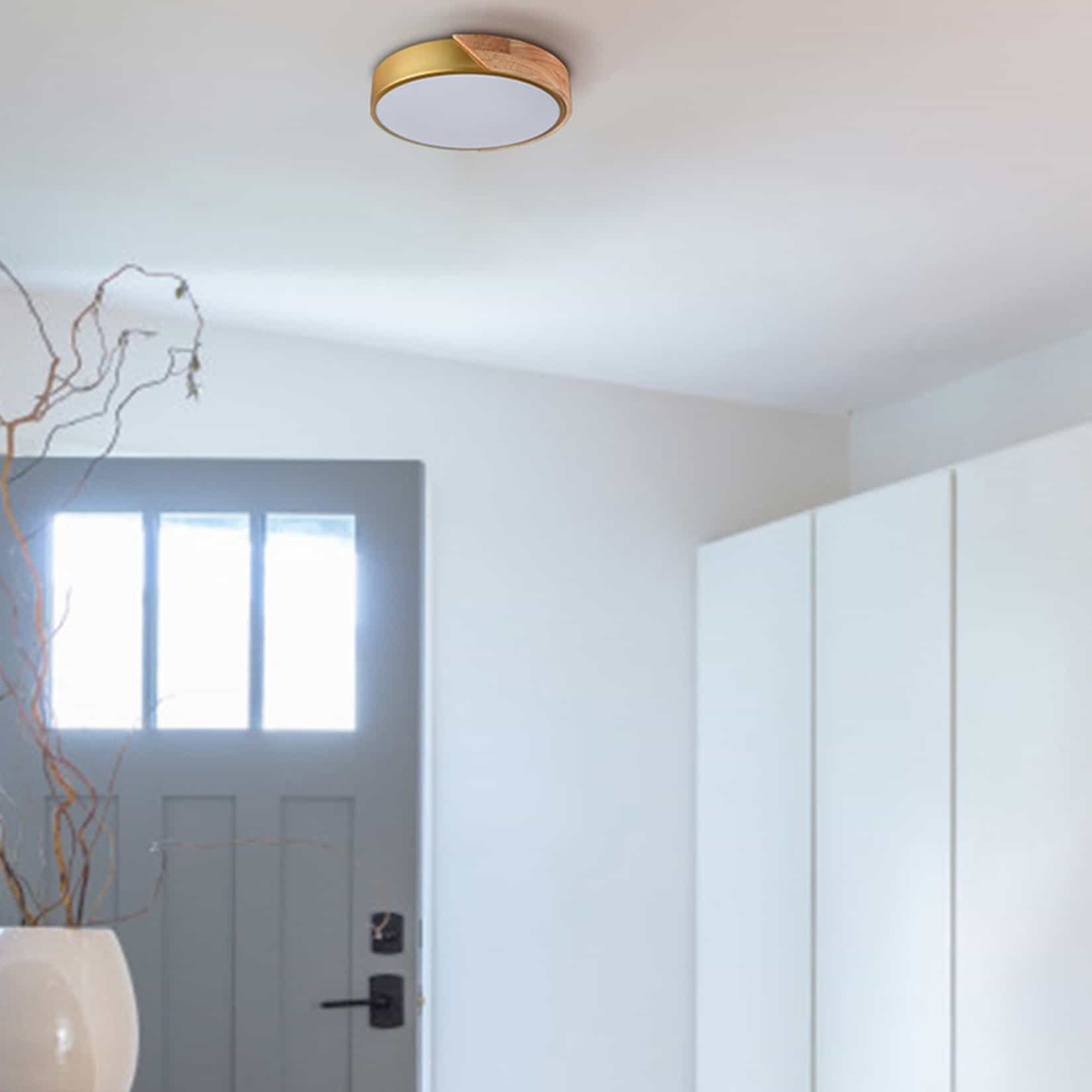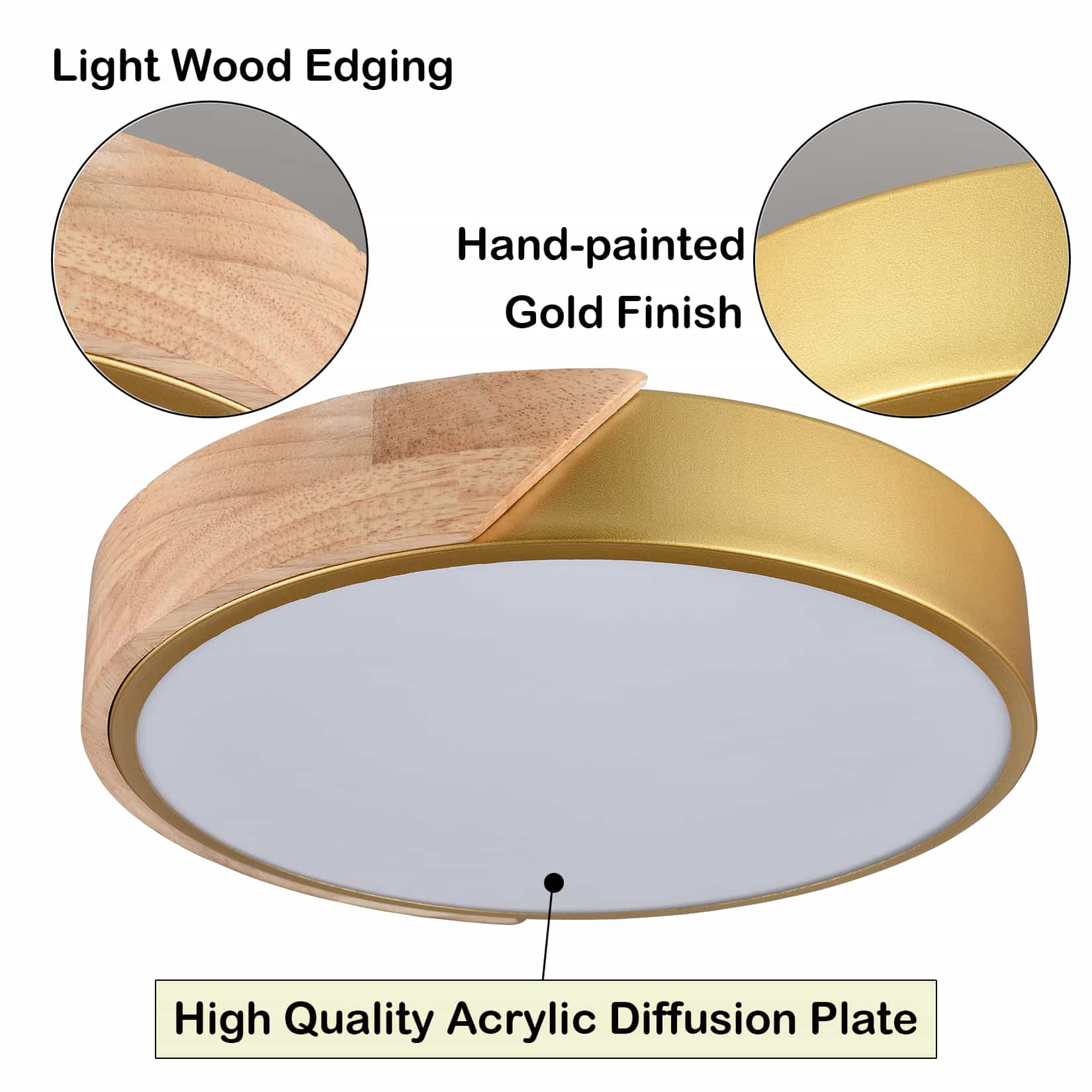 I just have to tell you about this amazing Modern Gold Flush Mount Ceiling Light I got for my room! I'm totally in love with it! It's like, super modern and elegant, which is exactly the vibe I wanted for my room. The gold finish gives it this chic and classy touch, and the wood and acrylic materials just add to the overall charm. The wood surface is so smooth, and the acrylic shade lets the light shine in the most magical way possible! The size is just perfect, so it fits perfectly in my room without being too overwhelming. And the best part? The built-in LED chip is soooo good! No flickering at all, and it's energy-saving too. I mean, I can't even count how many times I've just stared at it because it looks so mesmerizing in my room! Oh, and let's not forget about the light color - 4000K warm white light. It creates this cozy and inviting atmosphere, And with a CRI of 80+, it's just perfect for showing off all my cute decor and stuff. The best thing is that I didn't need to buy any extra bulbs because the LED light bulbs are already built-in. And even though it's not dimmable, I honestly don't mind because the brightness is just right for me. Now, here comes the most exciting part! You can literally use it anywhere in your house! I have it in my bedroom, and it's like a star in there. But it would look just as amazing in a hallway, office, kitchen, living room, dining room - you name it! The splicing colors of gold and wood give it this universal appeal that goes with any decor style. And guess what? Installing this beauty was a piece of cake! Seriously, all the mounting hardware came with it, and the step-by-step instructions were so easy to follow. I had it up in no time, and now it's the centerpiece of my room! It has made my room so much more fabulous, and I just feel like it's added this touch of sophistication that I never knew I needed. If you're looking for a way to upgrade your space with some modern and elegant lighting, this is definitely the way to go!