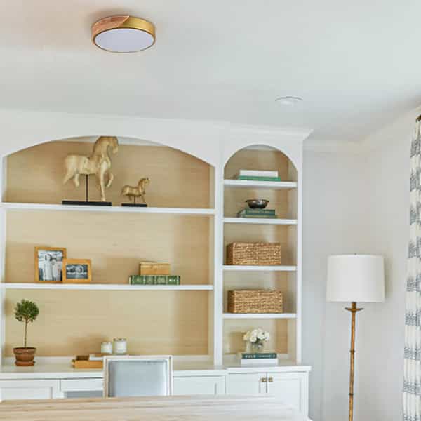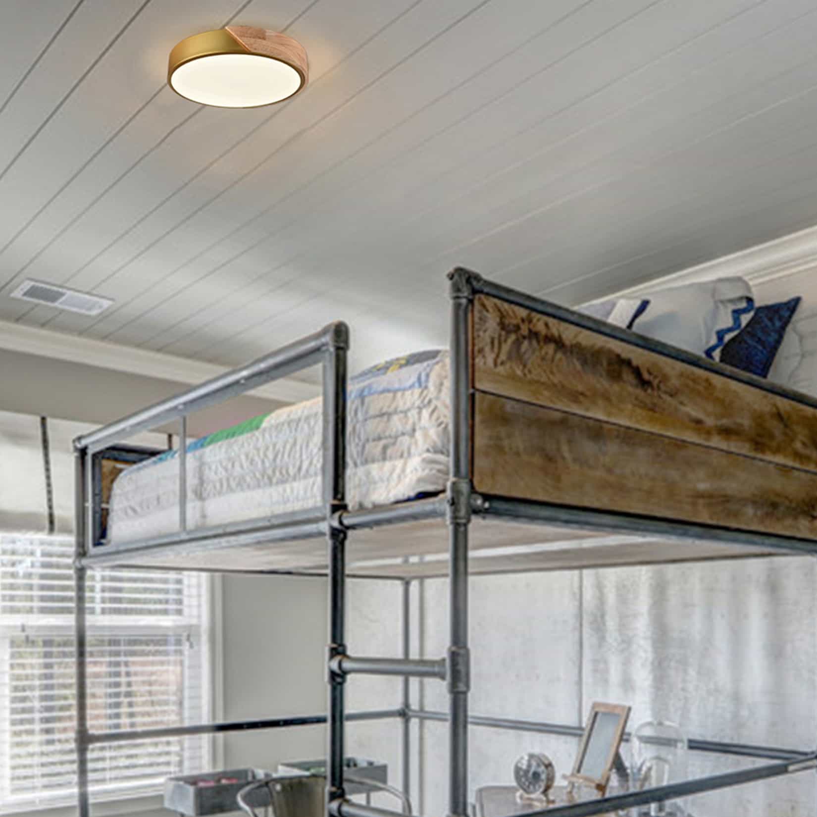 Flaunting a modern design, the LED flush mount ceiling lights are dressed in a gold finish and a sepia wood finish, sprucing up your living space with a glint of glamour. The drum shades are framed by a layer of arched wood, lending an organic aesthetic to the space. They draw the eye upward to a beautiful display of wood and metal suspended above. They come with a white acrylic diffuser that allows a soft glow to pass right through, filling the space without any glare. The mix of finishes encompasses both nature-inspired qualities and a shimmery accent, yet maintains a minimalist vibe.