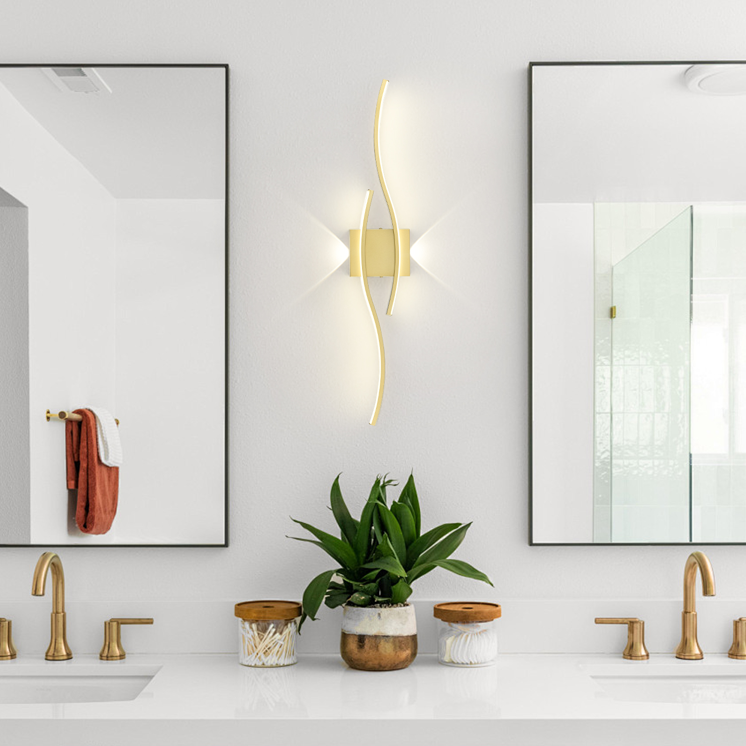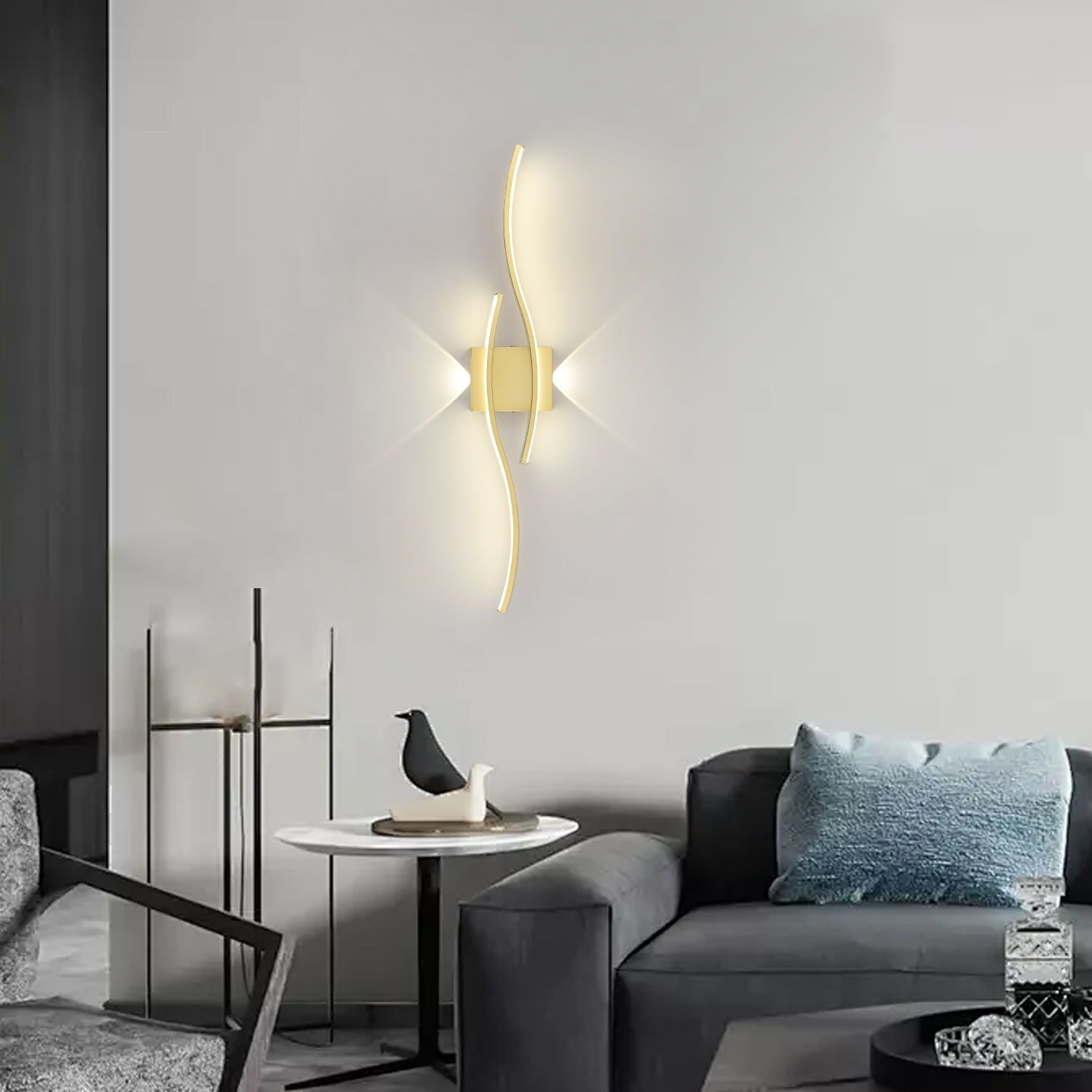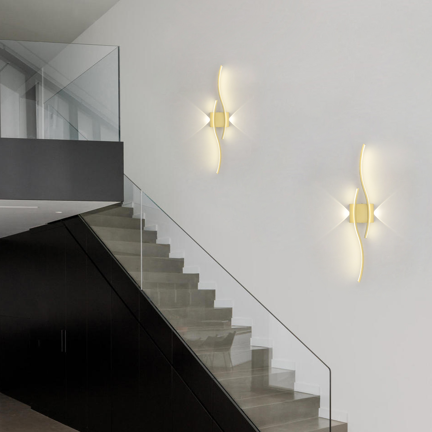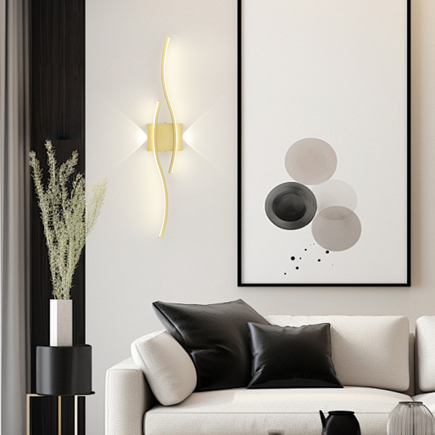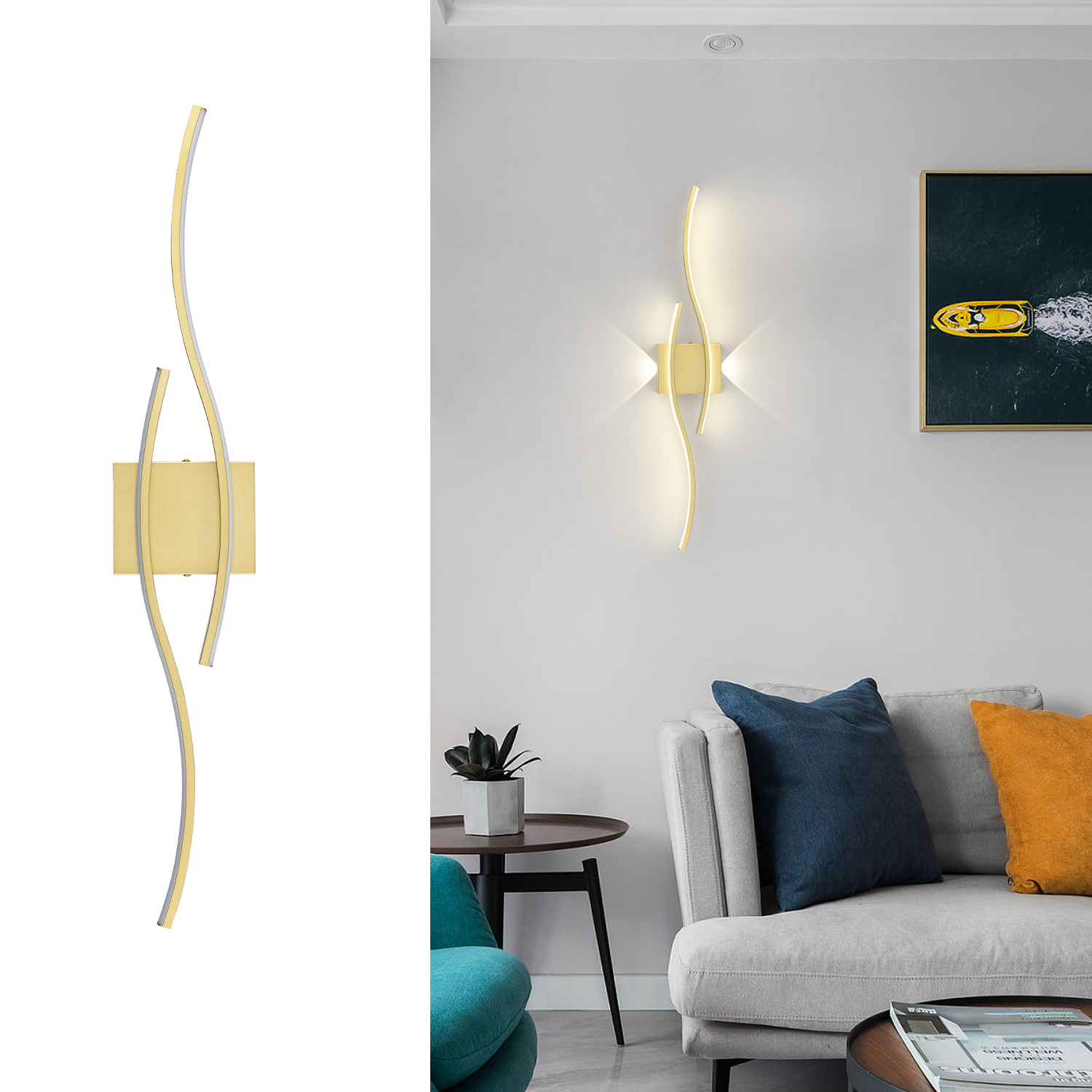 Being coated in a gold finish, the LED wall light fixture adds a touch of shimmer to your interior. It shows off a simple but edgy design as an energy-efficient wall light. Two wavy bars that are crafted of aluminum and iron are put together to present a minimalist yet geometric look. It offers a surprising twist and supplies a dash of drama without overpowering the rest of the space. A charming glow shines through the wall light, filling the space without any glare. It is flicker-free and is able to serve as a light source for all your lighting needs. It can be installed horizontally or vertically.