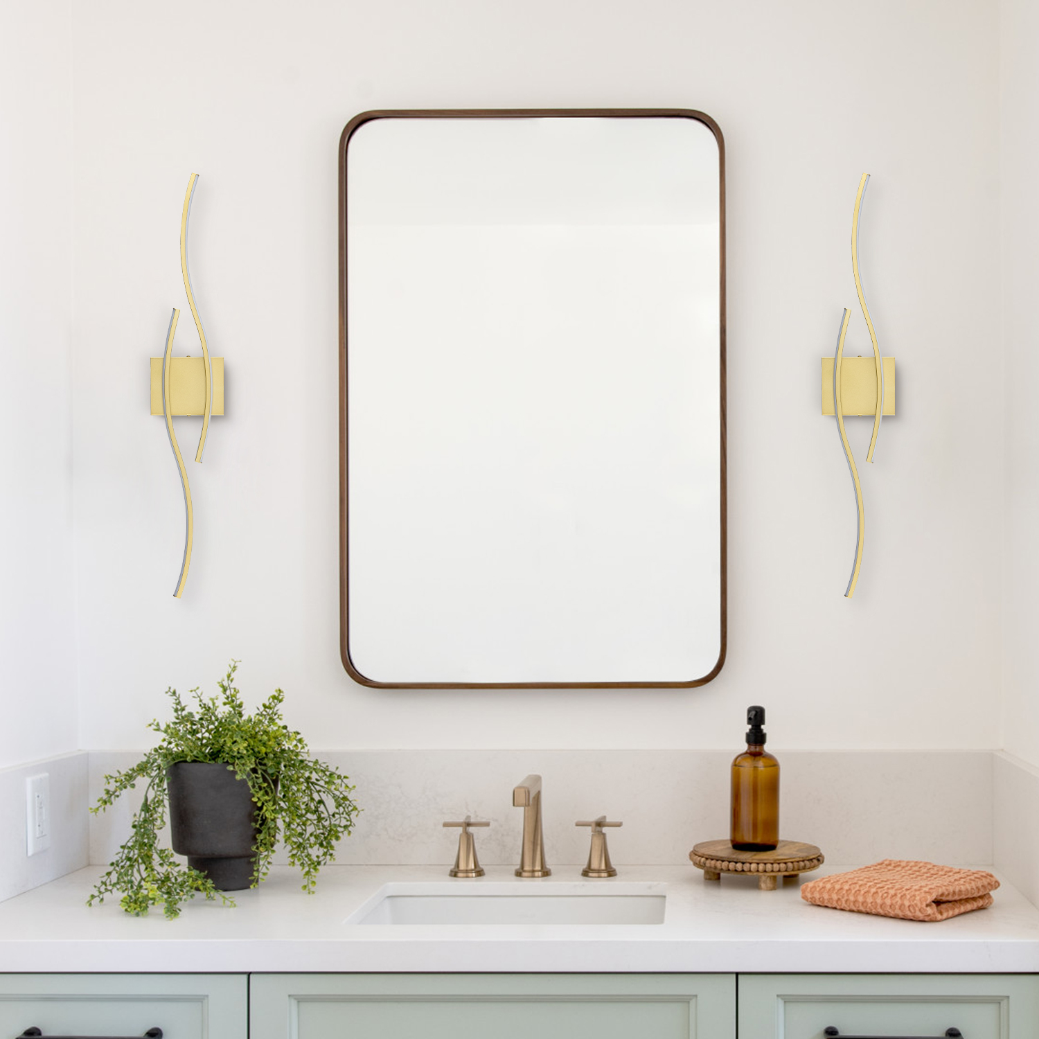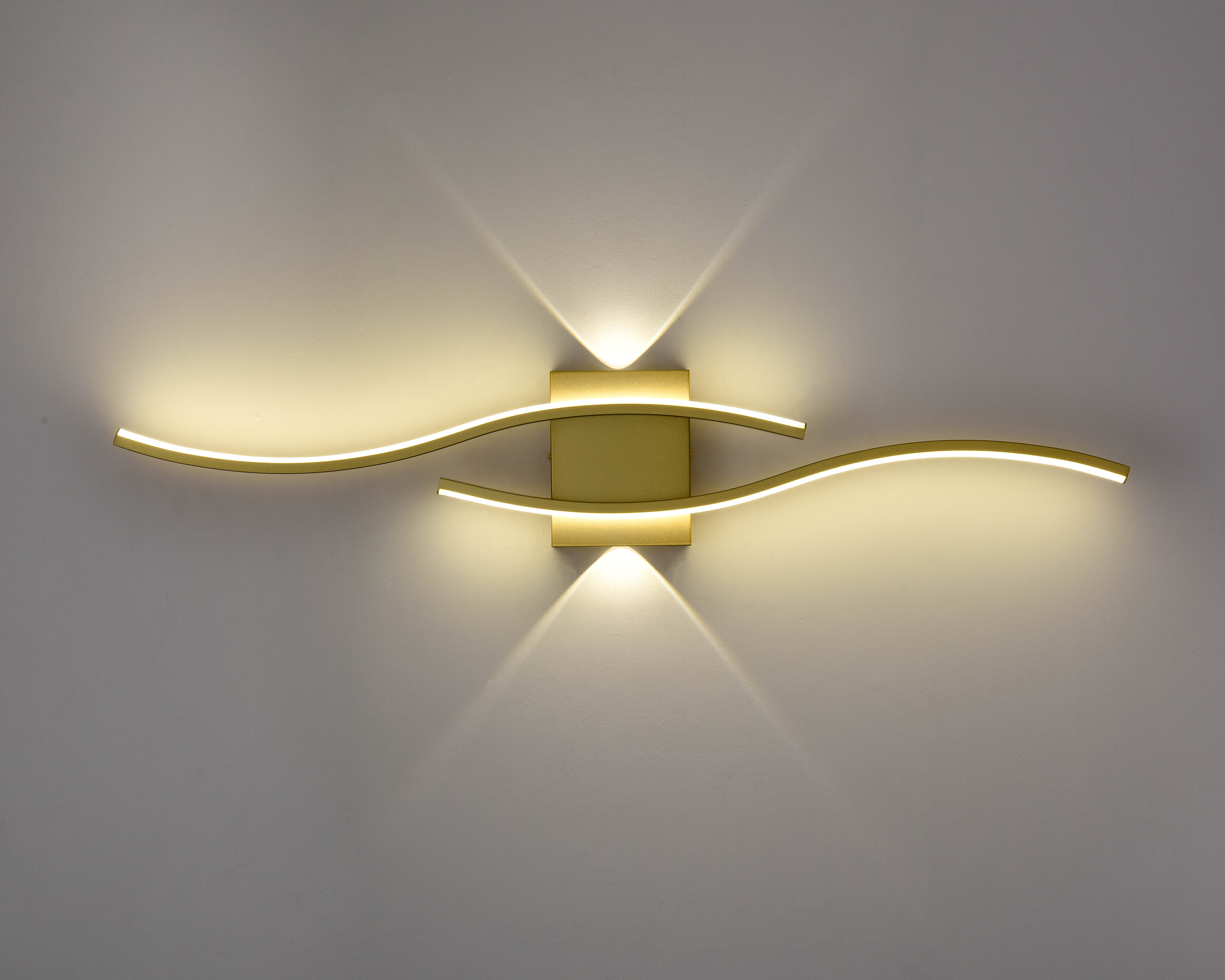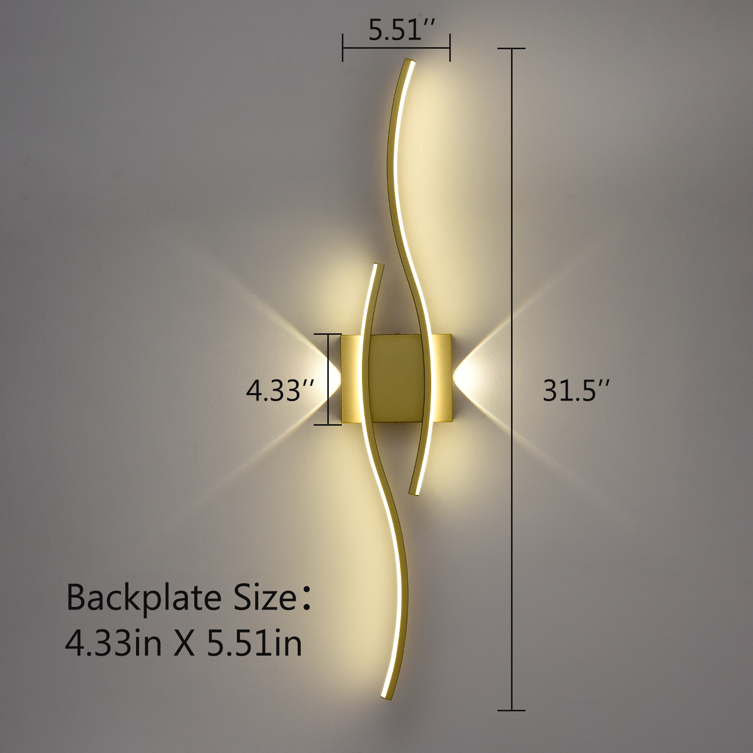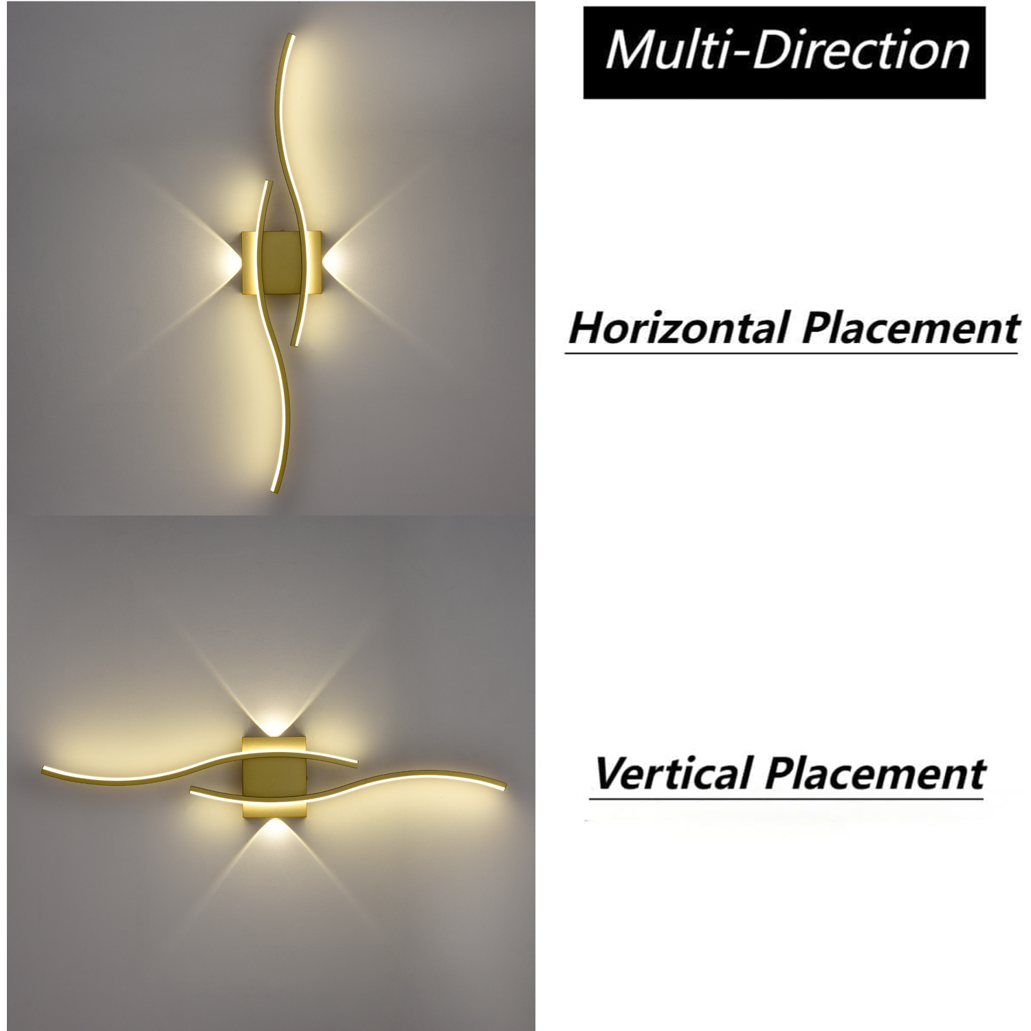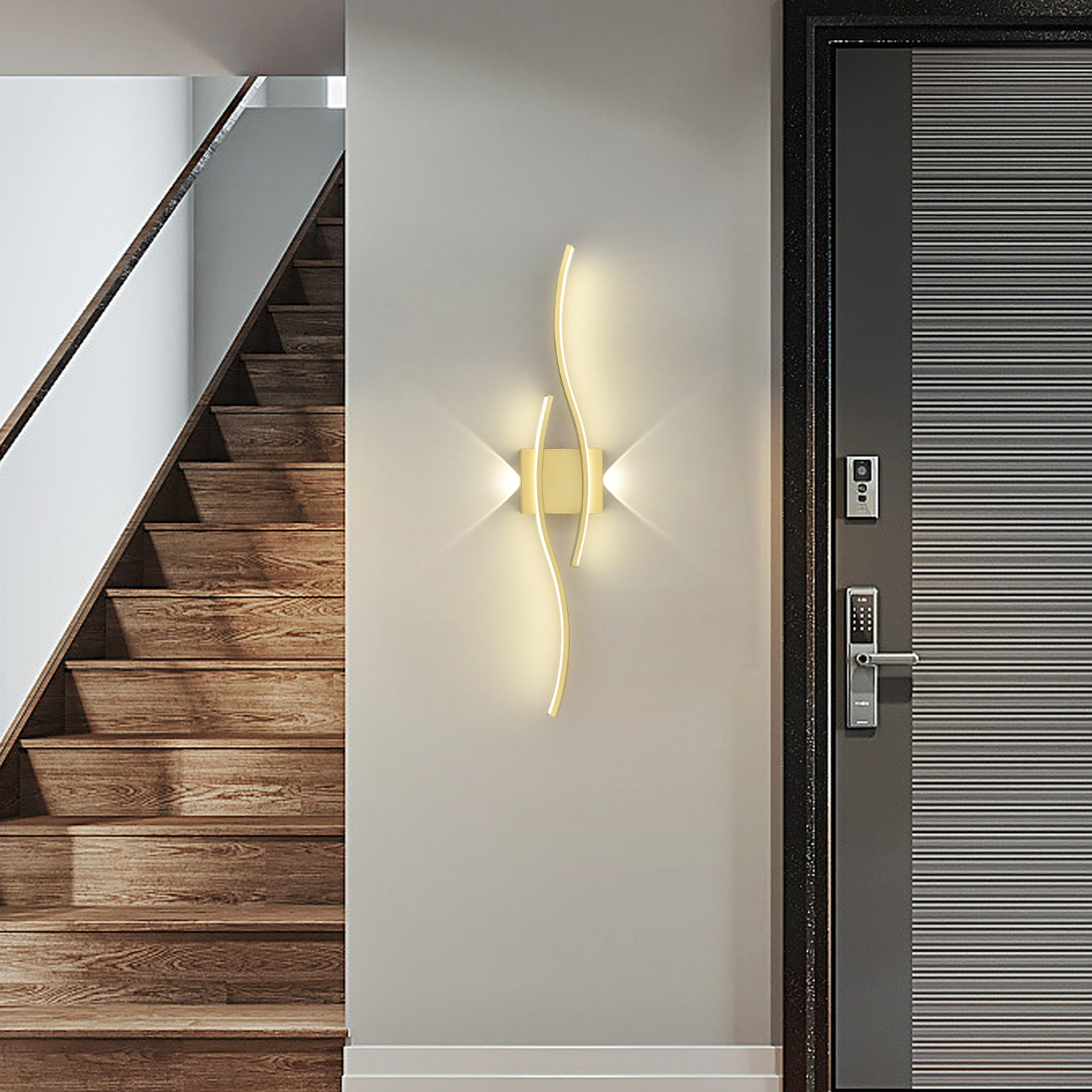 Being coated in a gold finish, the LED wall light fixture adds a touch of shimmer to your interior. It shows off a simple but edgy design as an energy-efficient wall light. Two wavy bars that are crafted of aluminum and iron are put together to present a minimalist yet geometric look. It offers a surprising twist and supplies a dash of drama without overpowering the rest of the space. A charming glow shines through the wall light, filling the space without any glare. It is flicker-free and is able to serve as a light source for all your lighting needs. It can be installed horizontally or vertically.
