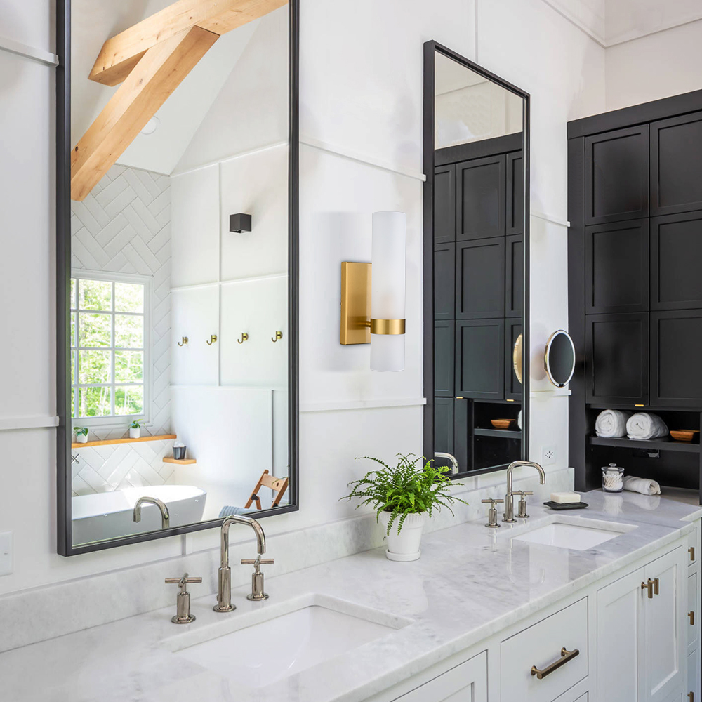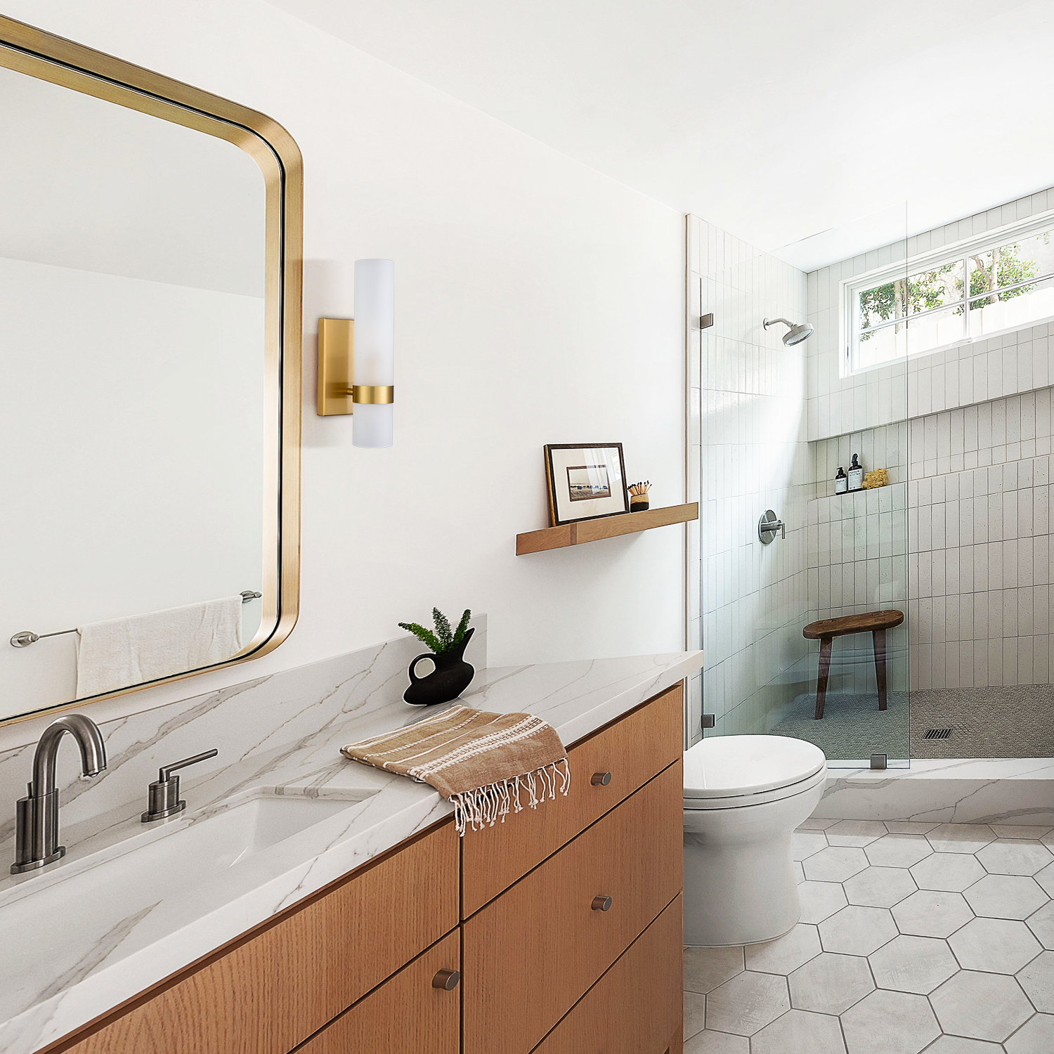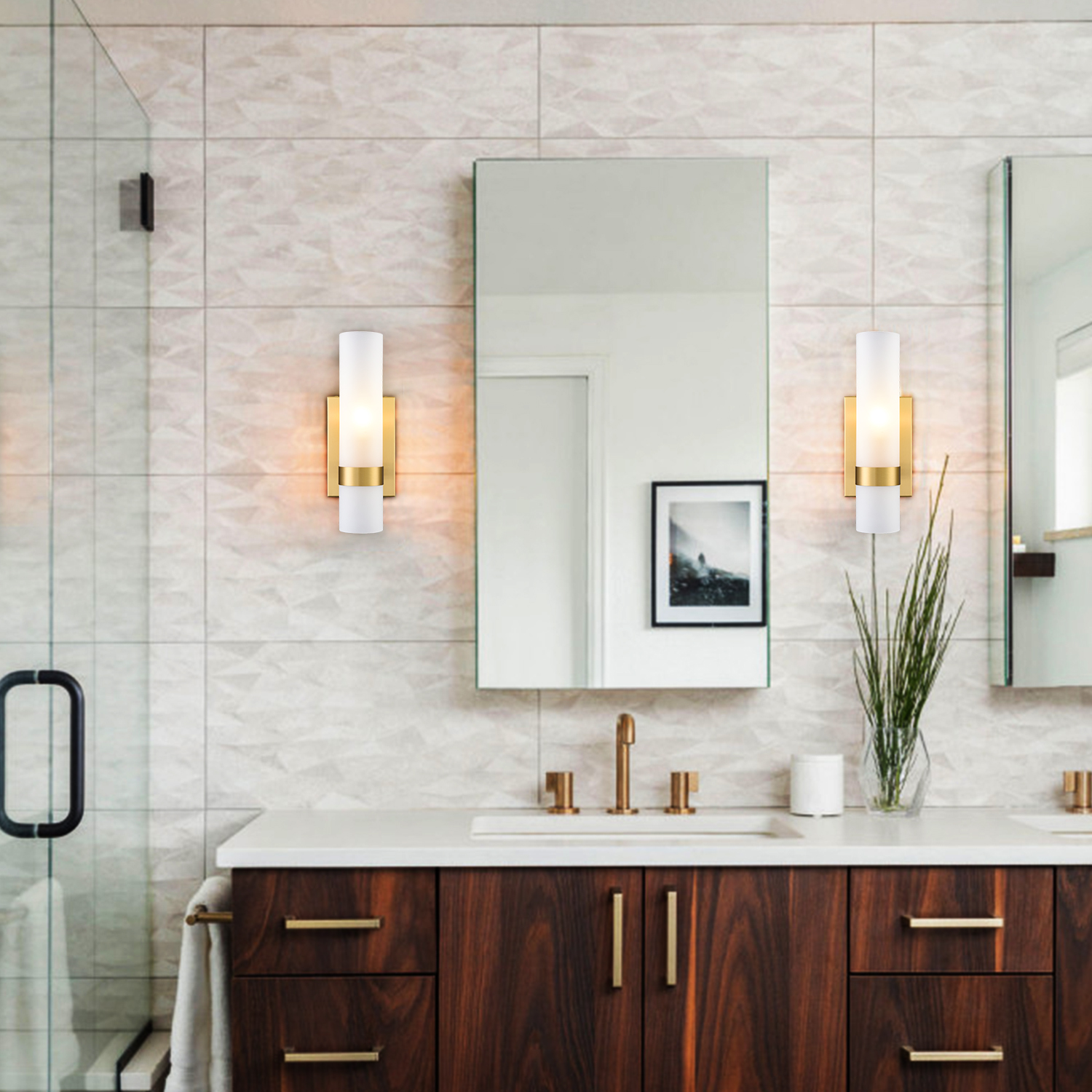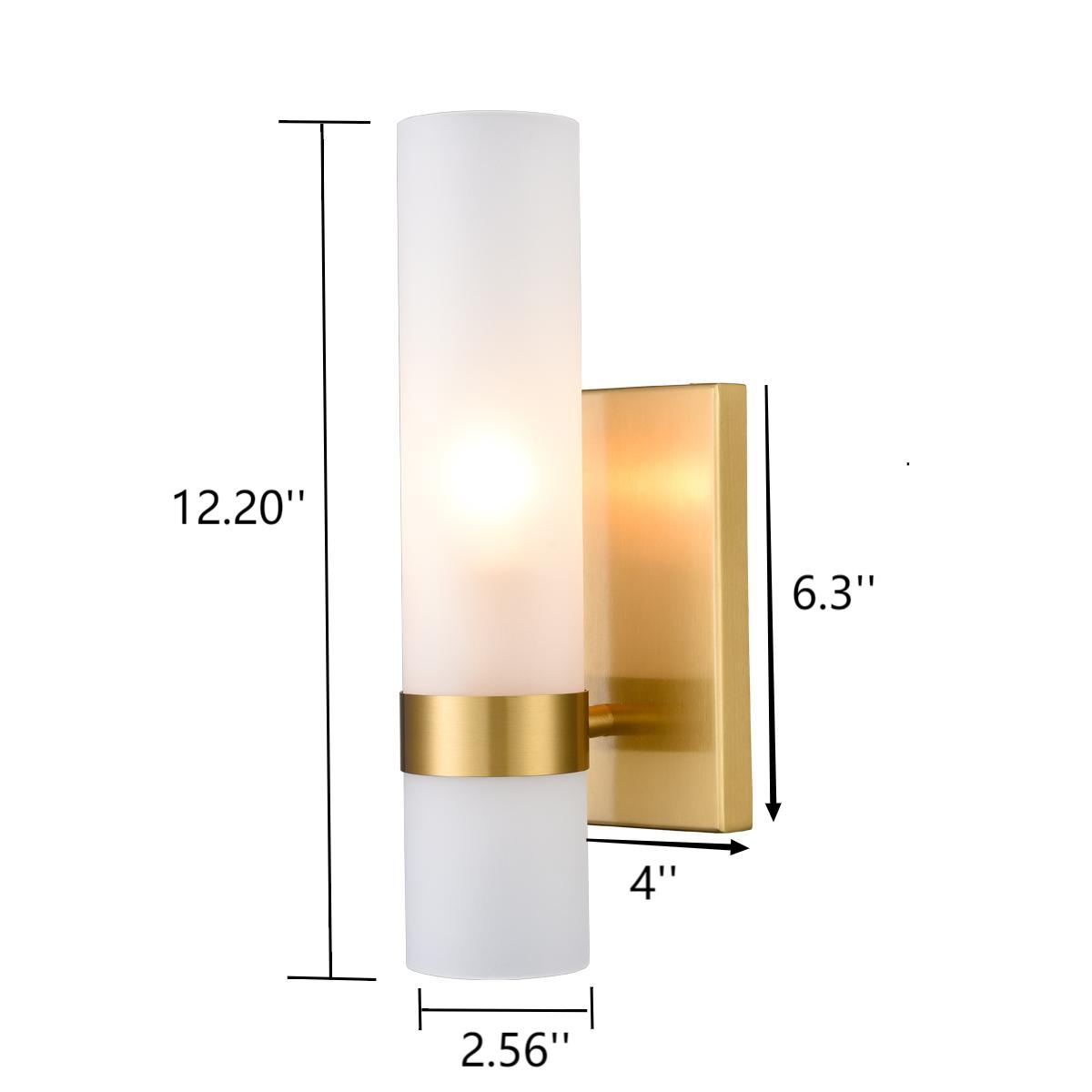 The modern gold cylinder wall sconce’s canopy, lamp holder, and the metal frame securing the lampshade show off a rustproof brushed gold finish, pepping up your living space with metallic pizzazz. It flaunts an elongated cylinder shade crafted from impurity-free frosted glass. Its glass shade is designed to house a candelabra-inspired socket to complete the aesthetic. The glass shade is held aloft by a gold metal frame, bringing an unrivaled level of sophistication. Its cylinder shade contrasts the gold finish and adds alluring visual interest to the living area. It can be installed horizontally or vertically.