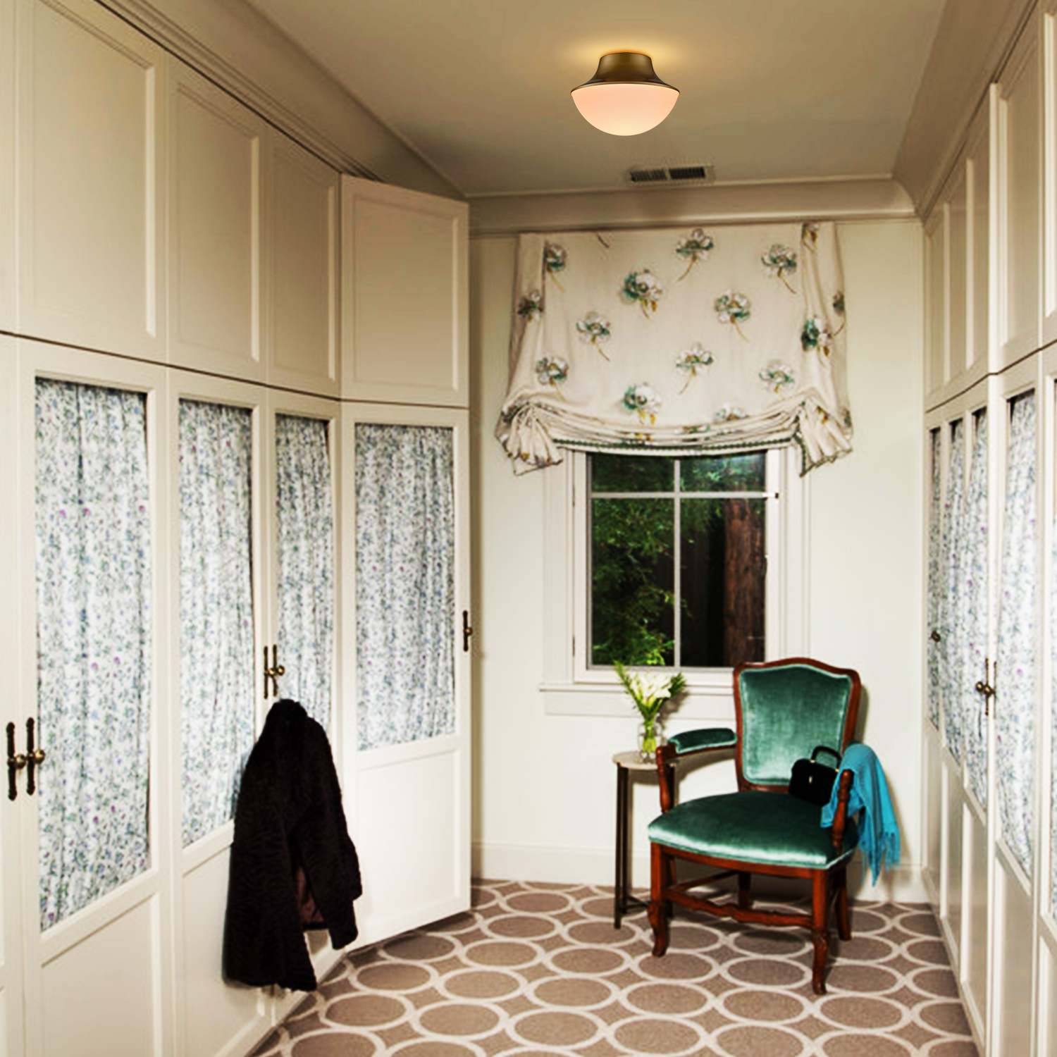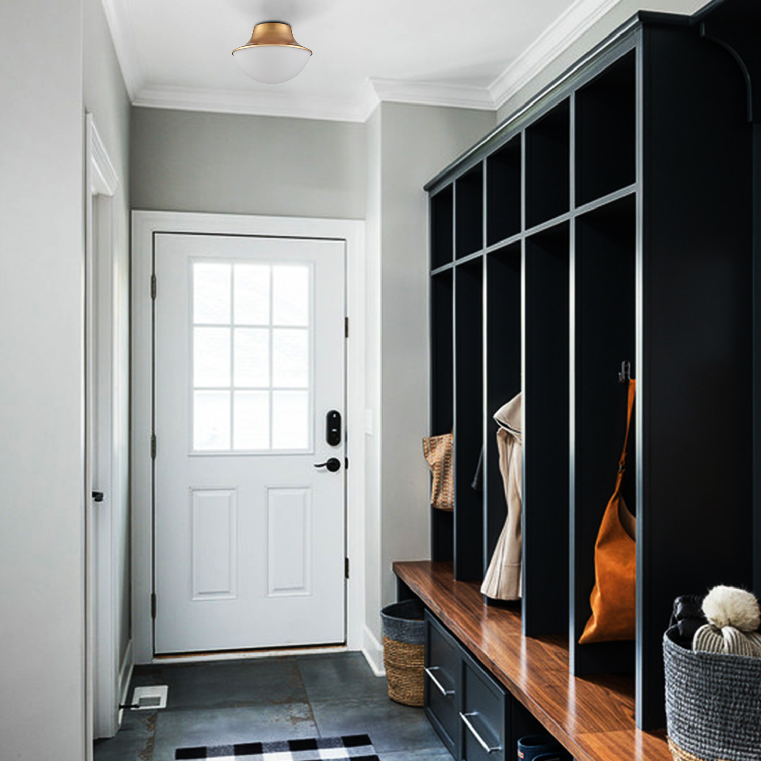 The ceiling light comes with 1 E26-base socket which is compatible with a variety of bulb types: LED, INCANDESCENT, CFL.