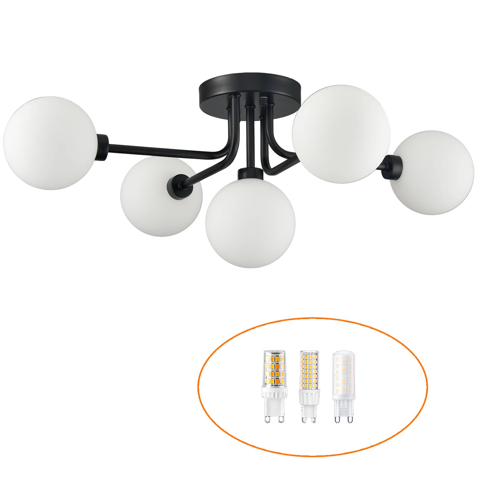 The ceiling light features five G9-base sockets which are compatible with a variety of bulb types: LED, INCANDESCENT, CFL.