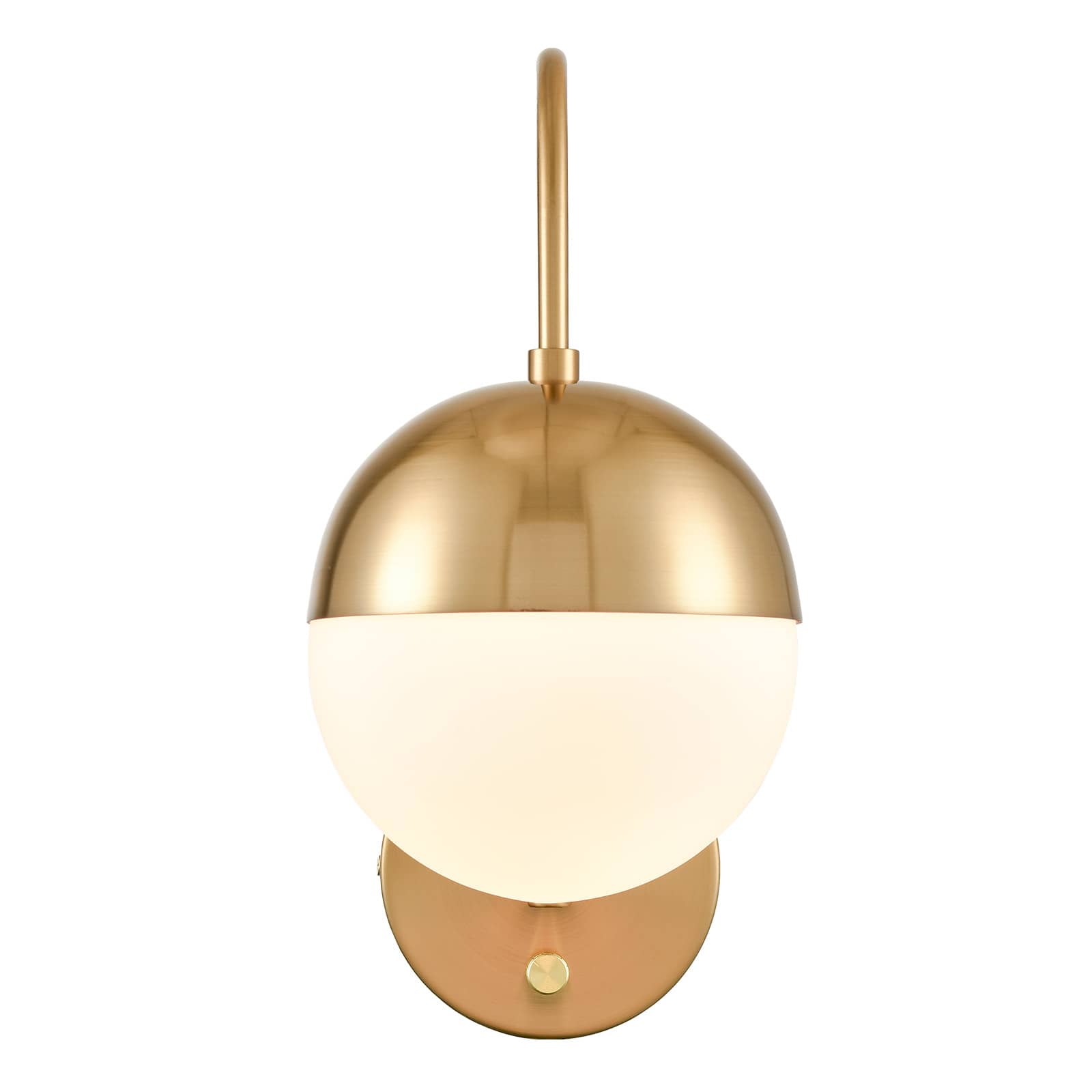 The wall light’s canopy, arm, the upper part of the globe shade, and the lamp-holder sport a shimmery brass finish, brightening up your interior with a boost of sparkle. Its opaque opal glass shade delivers a dreamlike vibe to the space and rounds out the design with understated elegance. The glass shade offers a sleek sphere silhouette and a cool air of modern sophistication. The wall light is a glamorous addition to your home with its shiny look. It serves as a statement piece for gracing the bar, entryway, hallway, and kitchen.