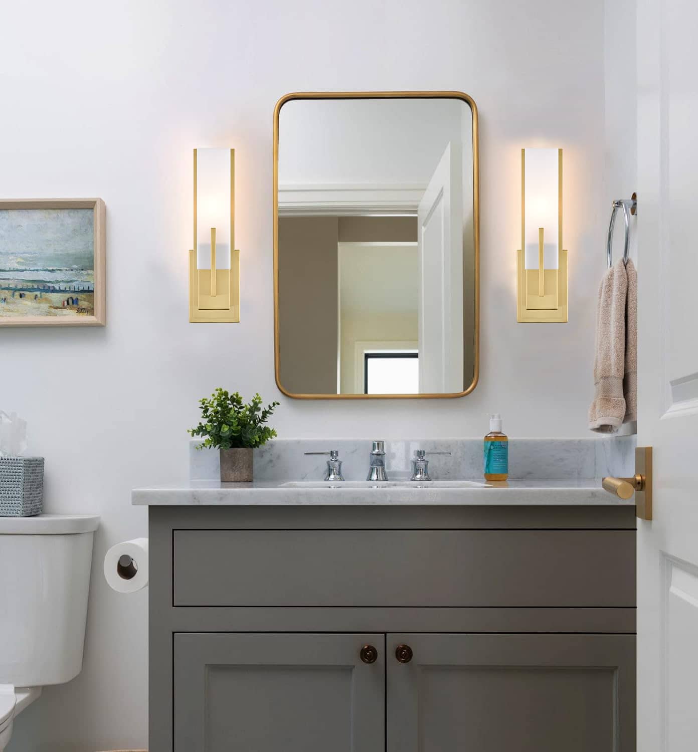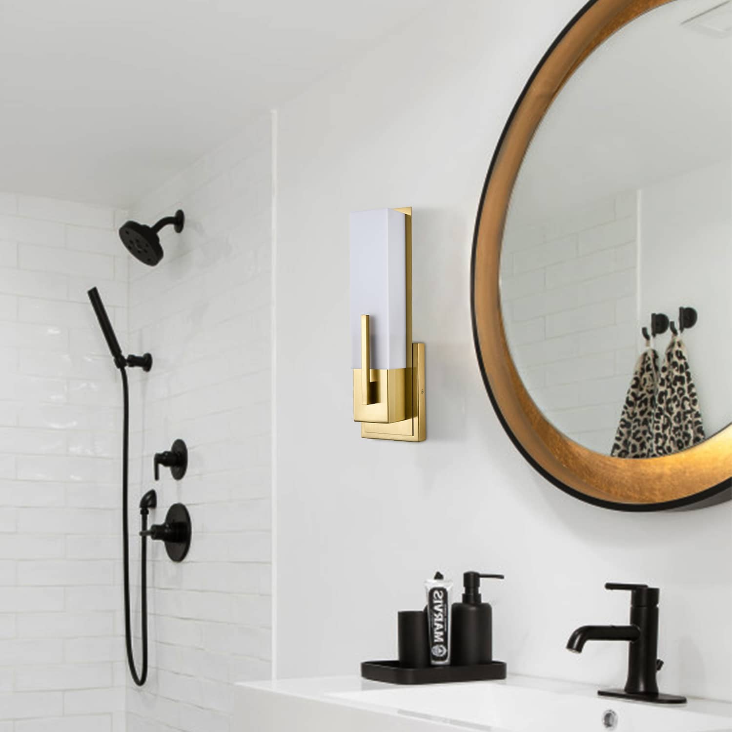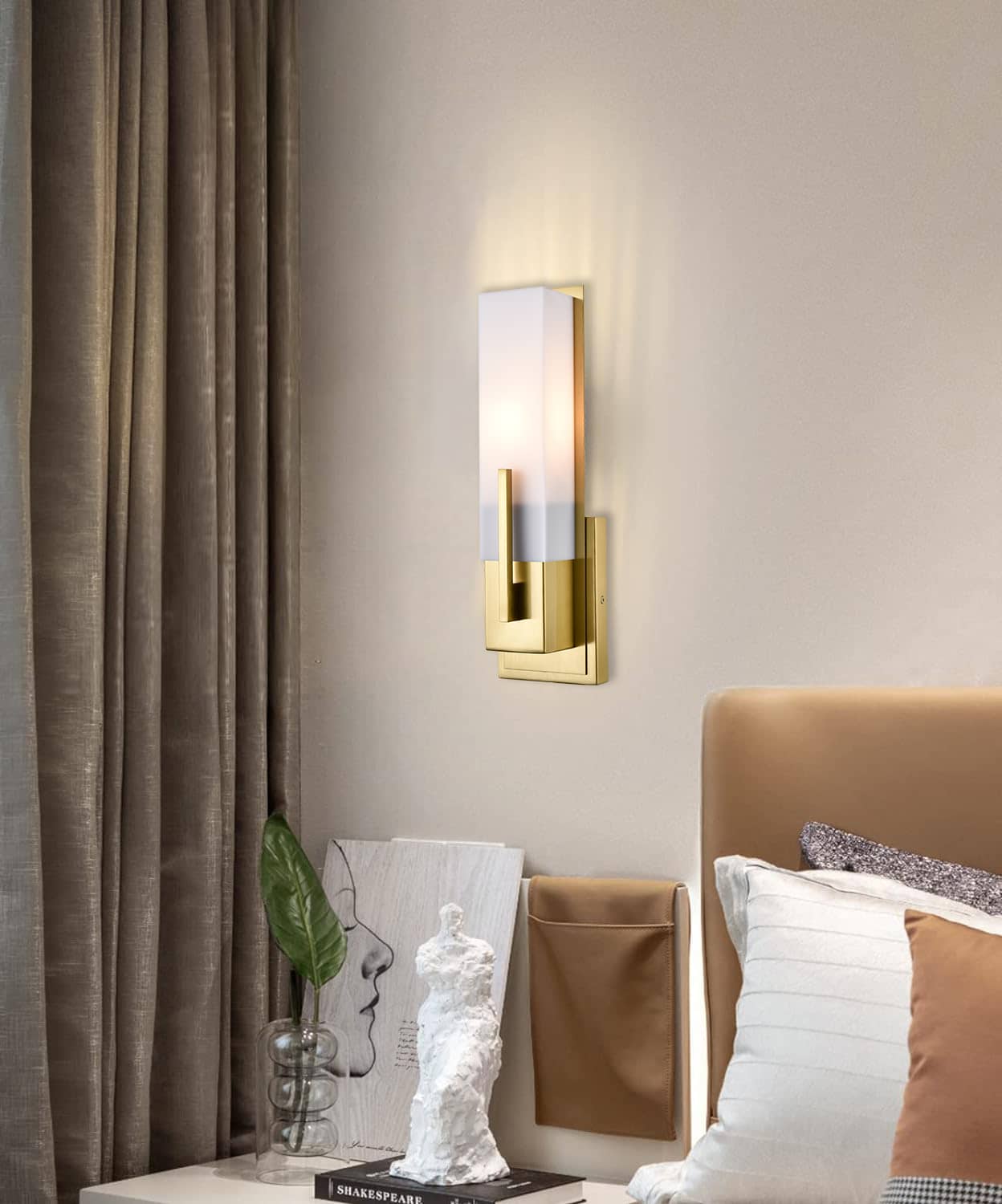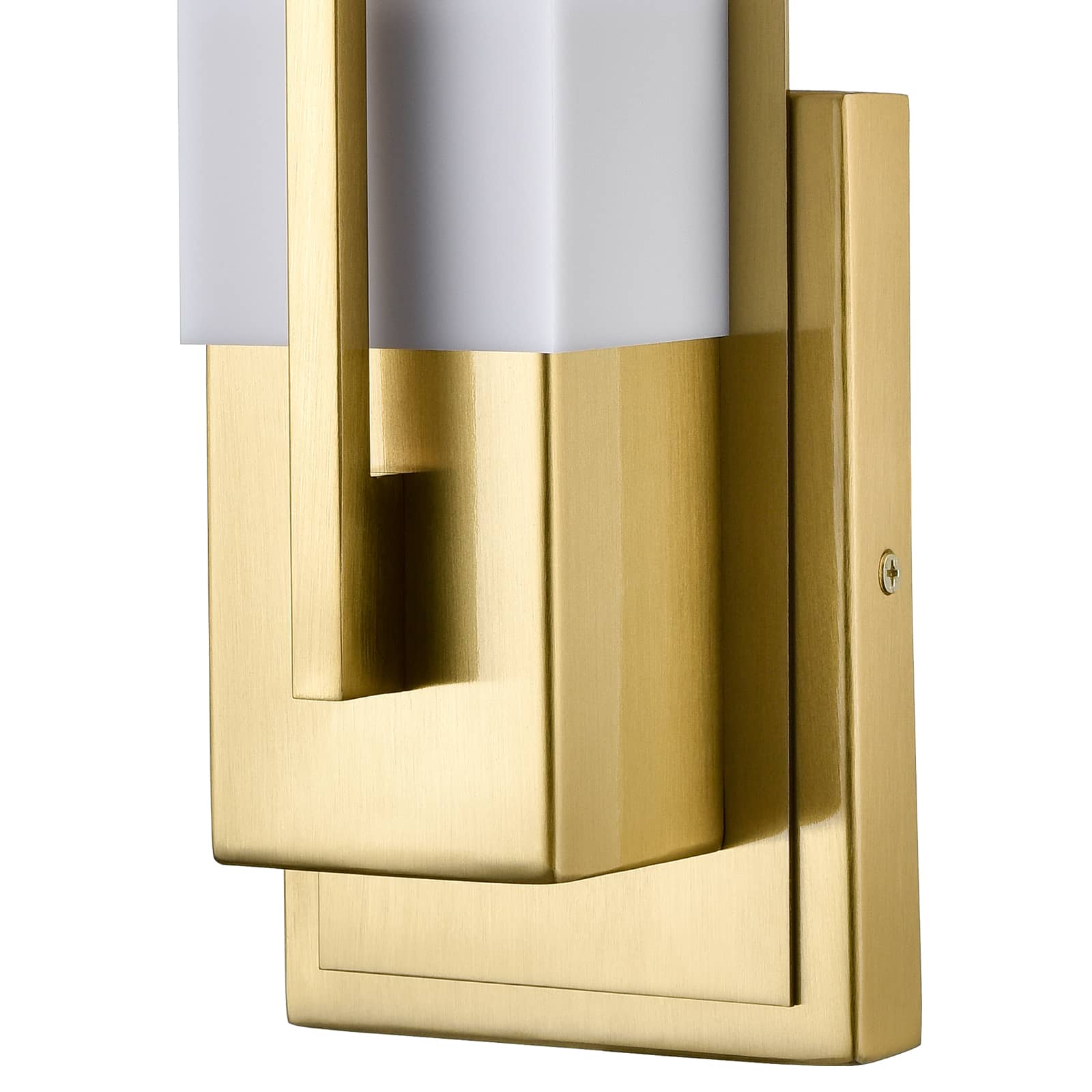 Boasting an electrophoretic gold finish, the modern gold wall sconce livens up your space with a dash of metallic shimmer. A rectangular acrylic shade is designed to house an exposed bulb and lends a touch of geometry to the interior. The rectangular acrylic shade is held aloft by the streamlined metal bar extending to the front of the shade. Its shimmery gold finish and the acrylic shade make for a perfect contrast in the space.