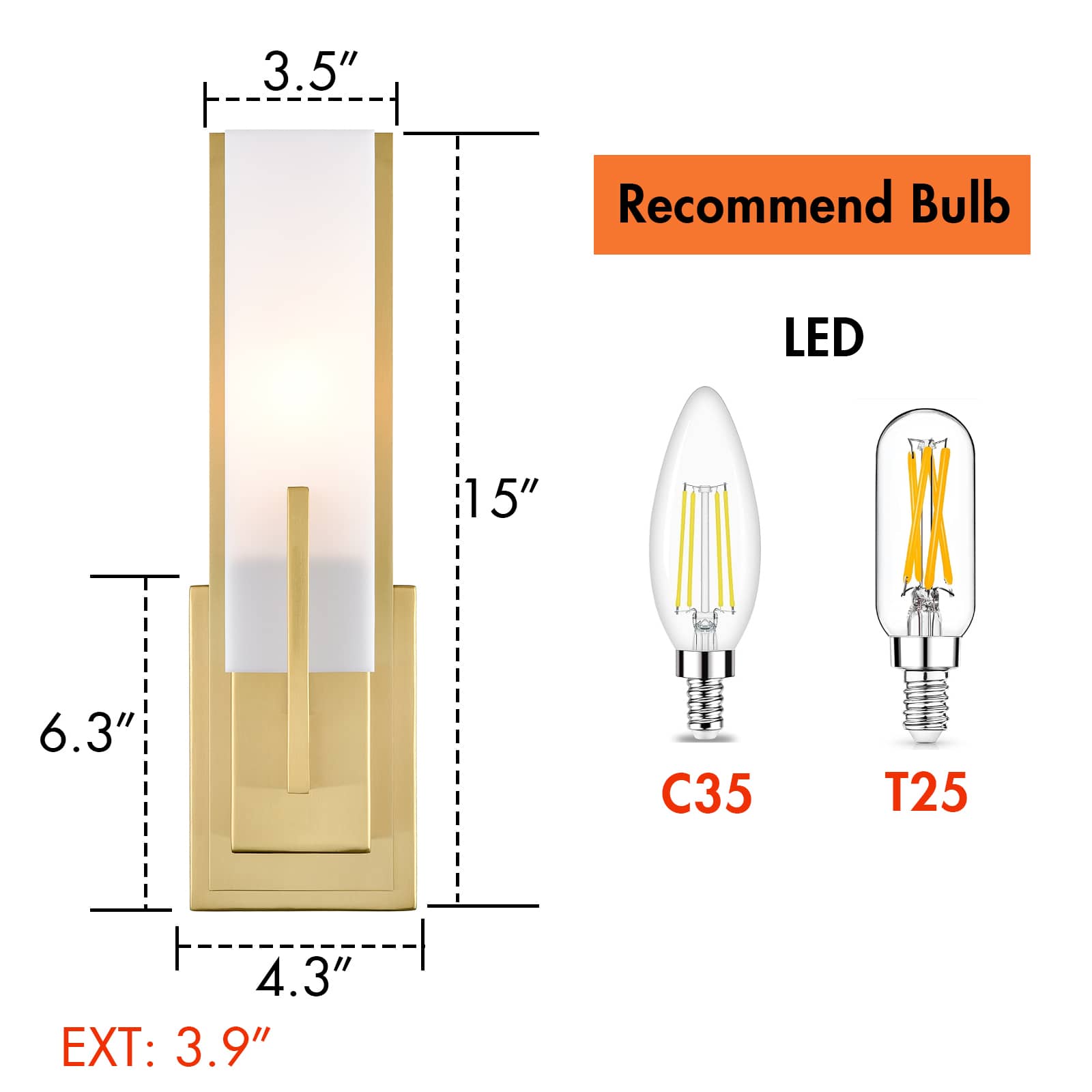 The wall sconce comes with 1 E12-base socket which is only compatible with LED bulbs.