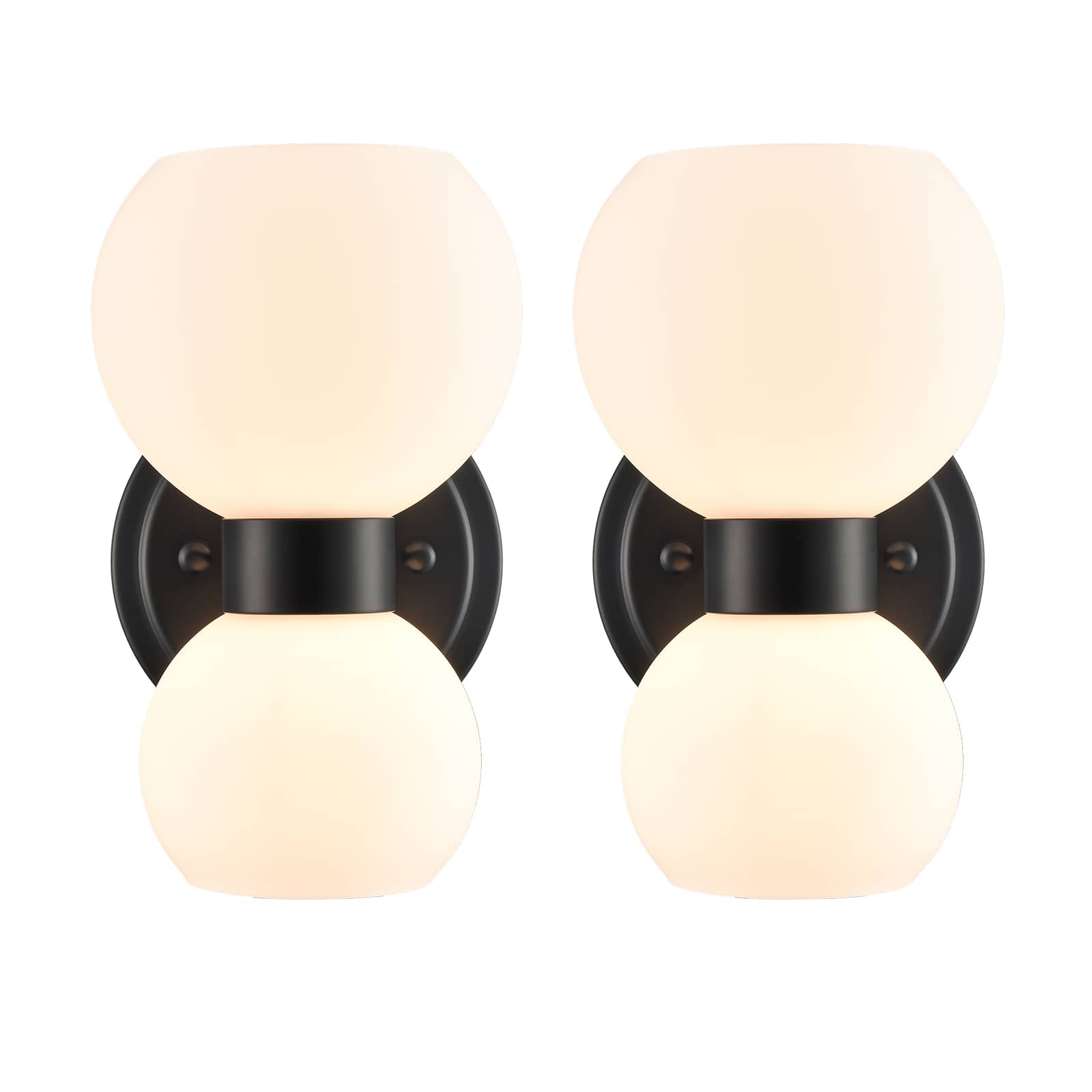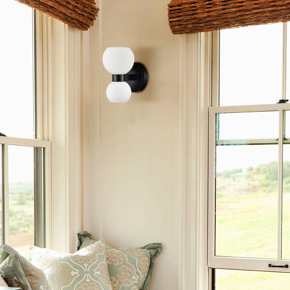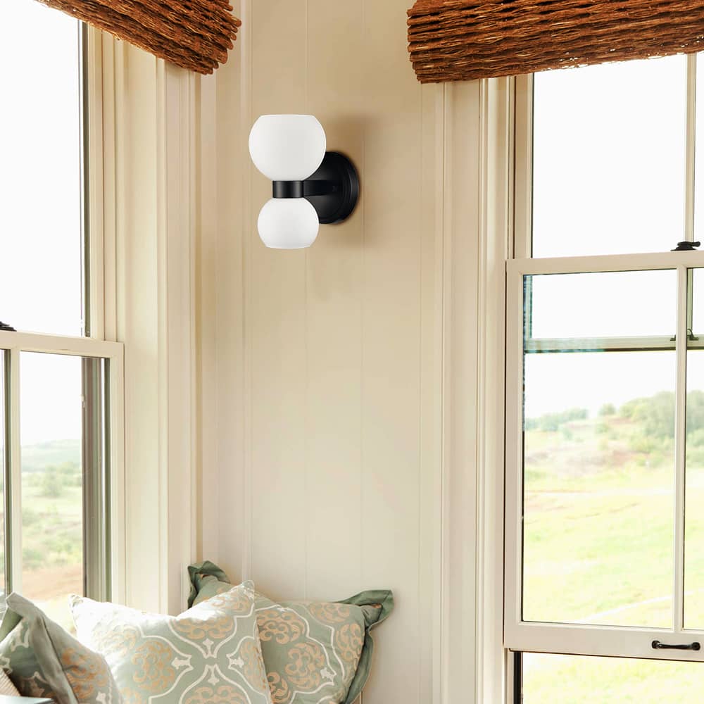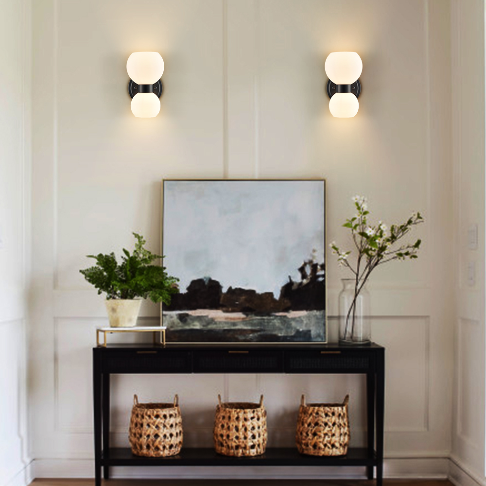 The modern black wall sconces’ canopies, lamp holders, and arms are accented with a rustproof black finish, giving your living space a touch of urban sophistication. Crafted from impurity-free hand-blown glass, their milk glass shades distribute light evenly to avoid shadows. Their bow-knot-inspired design adds attractive eye appeal and a touch of whimsy to your interior. They are eye-catching additions to your home with their black-and-white classic color combo. Their milk glass shades contrast the black finish and add alluring visual interest to the living area.