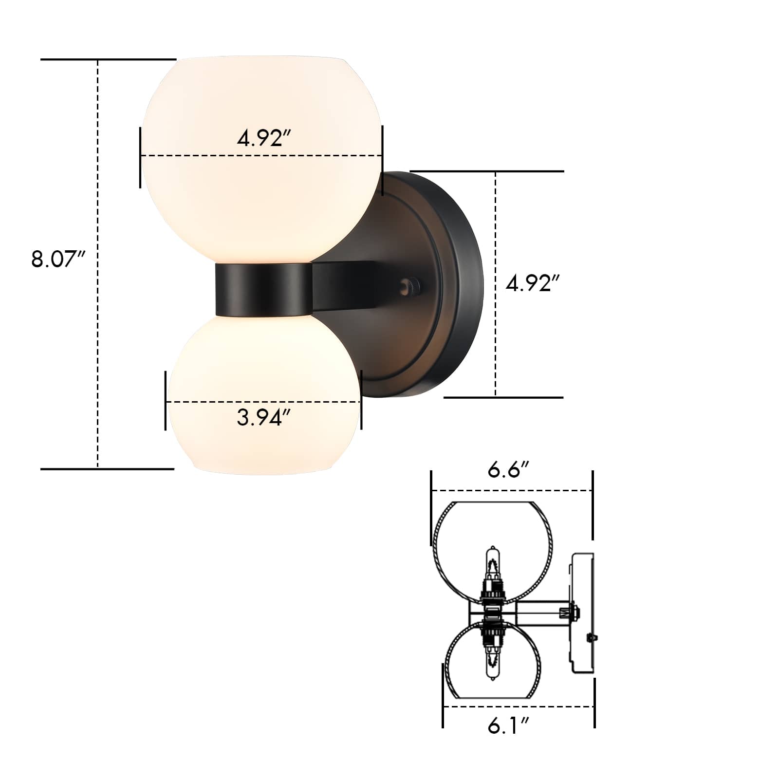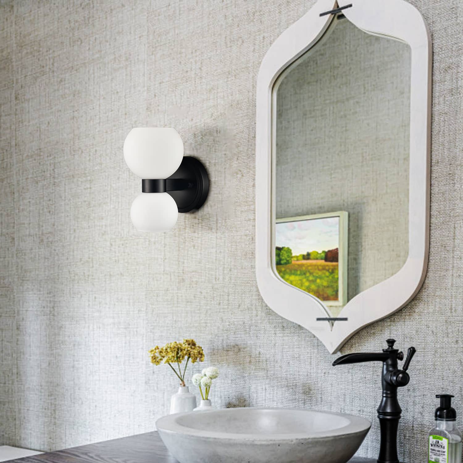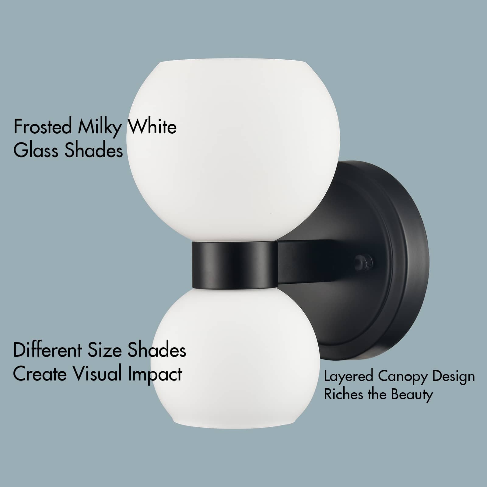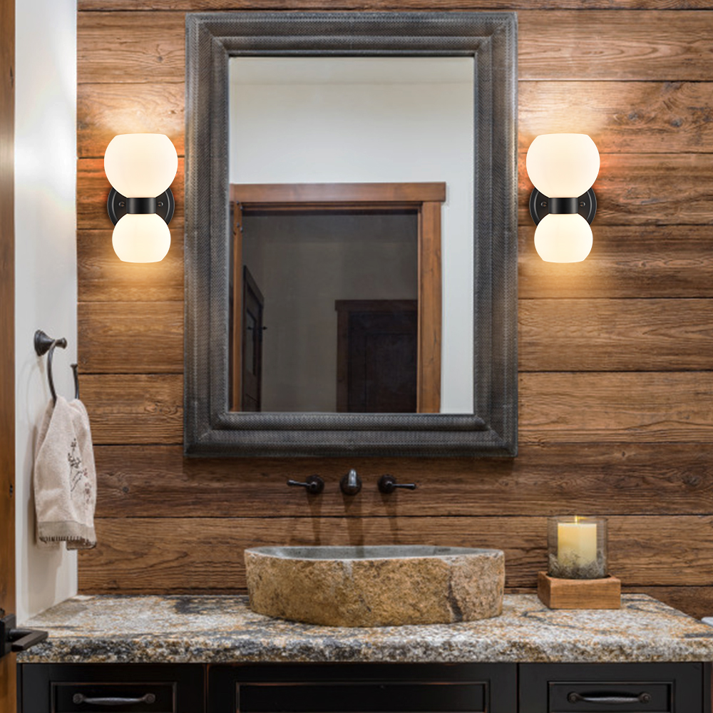 The modern black wall sconces’ canopies, lamp holders, and arms are accented with a rustproof black finish, giving your living space a touch of urban sophistication. Crafted from impurity-free hand-blown glass, their milk glass shades distribute light evenly to avoid shadows. Their bow-knot-inspired design adds attractive eye appeal and a touch of whimsy to your interior. They are eye-catching additions to your home with their black-and-white classic color combo. Their milk glass shades contrast the black finish and add alluring visual interest to the living area.