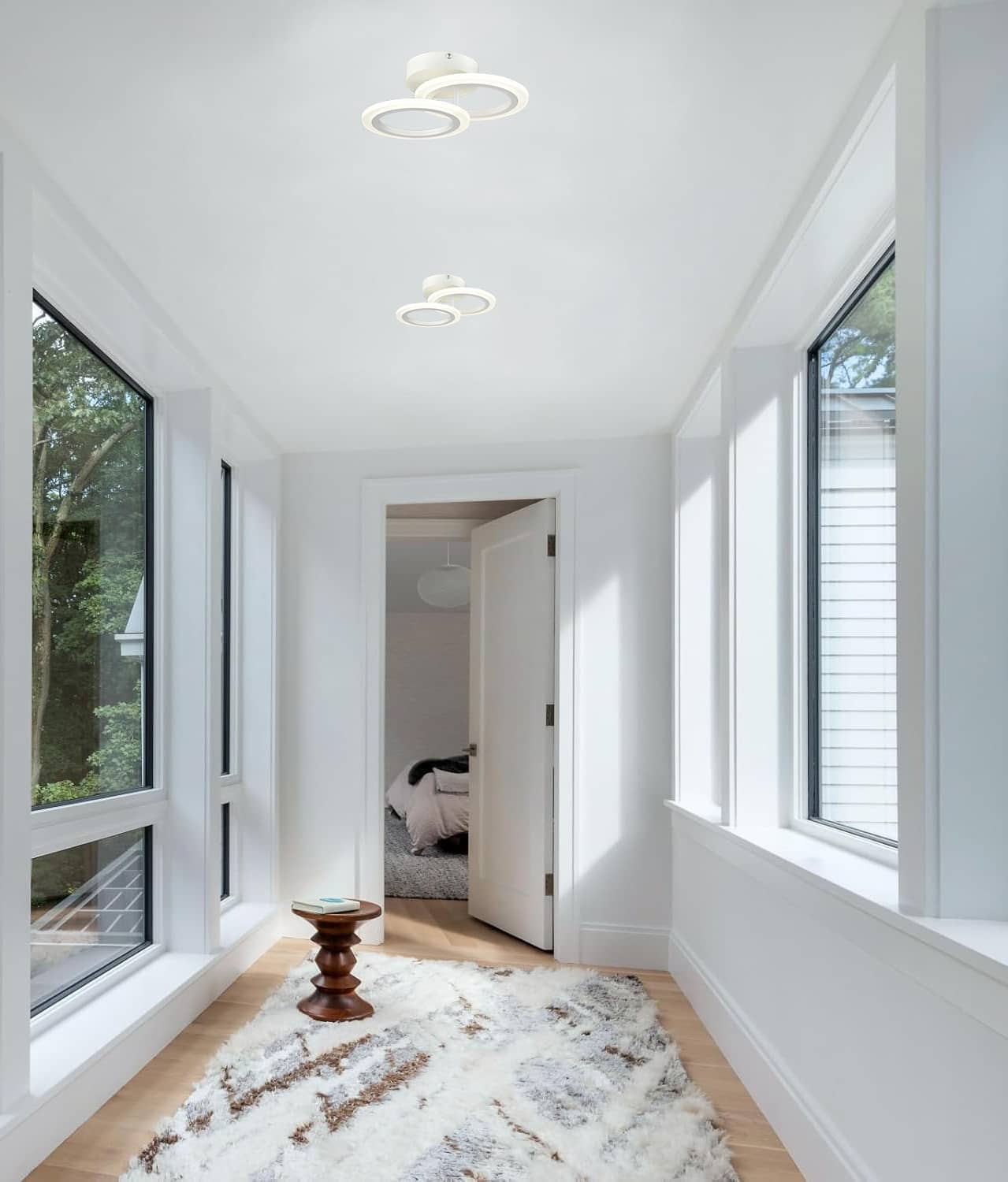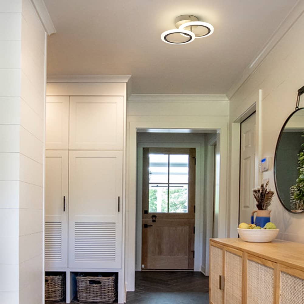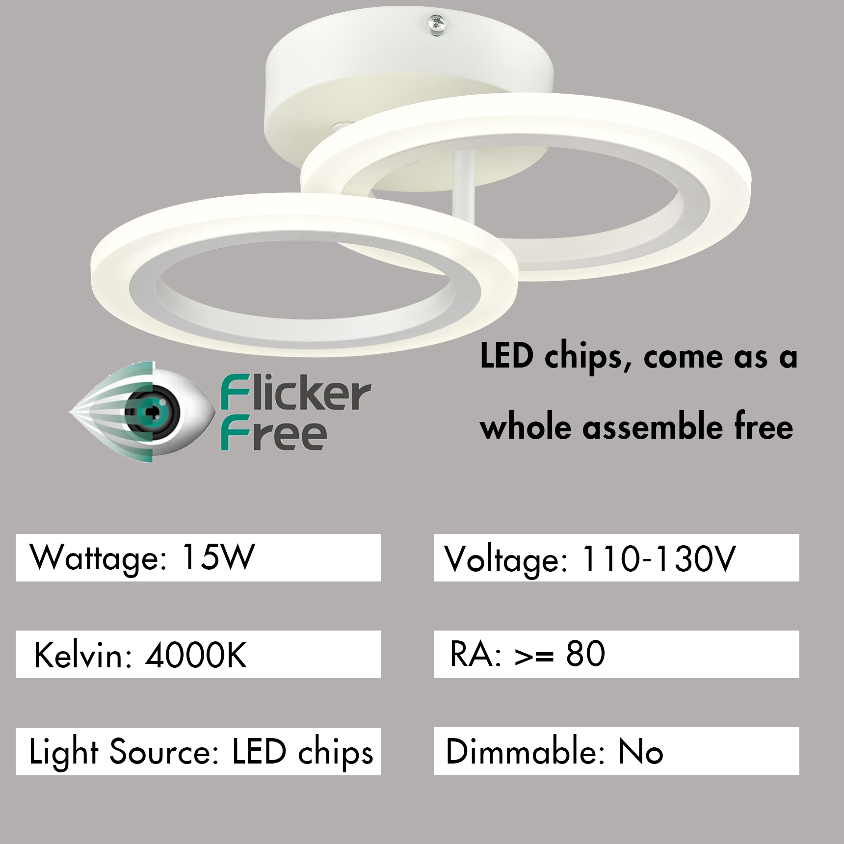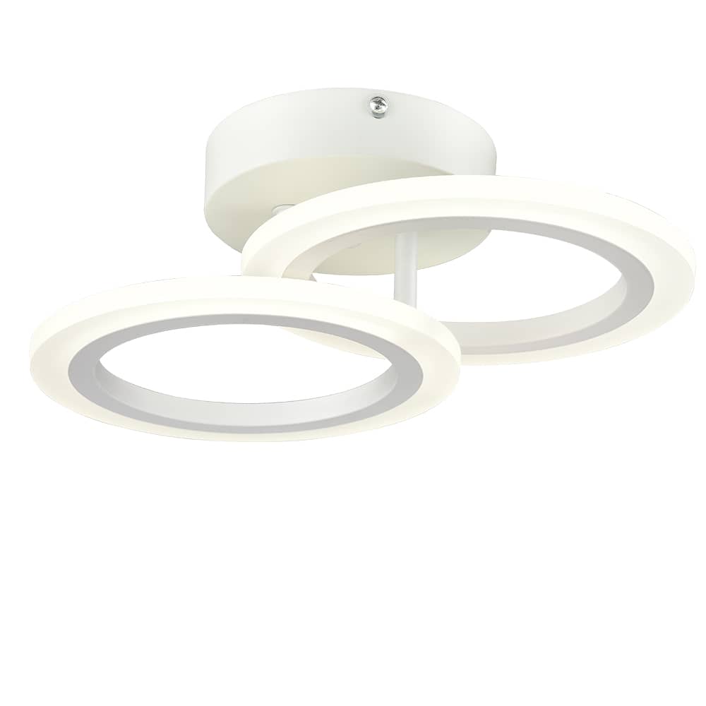 The modern LED ceiling light sports a rustproof white finish, giving your living space a touch of urban sophistication. It flaunts two intersecting rings hanging at different heights, providing a bold decorative detail to the living space. The rings are crafted of metal and acrylic. It doubles up on the rounded shades, creating layers of nuanced light. It boasts elegant geometry and adds a ton of eye appeal to the scene. It has all the style, charisma, and drama required to make everyone stand still to stare and appreciate. Offering attractive eye appeal, it delivers a huge dose of modern touch to your interior. Its intricate design draws the eye upward to a beautiful display of metal and acrylic.