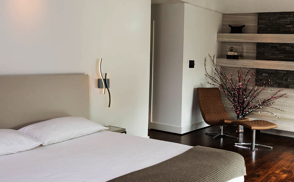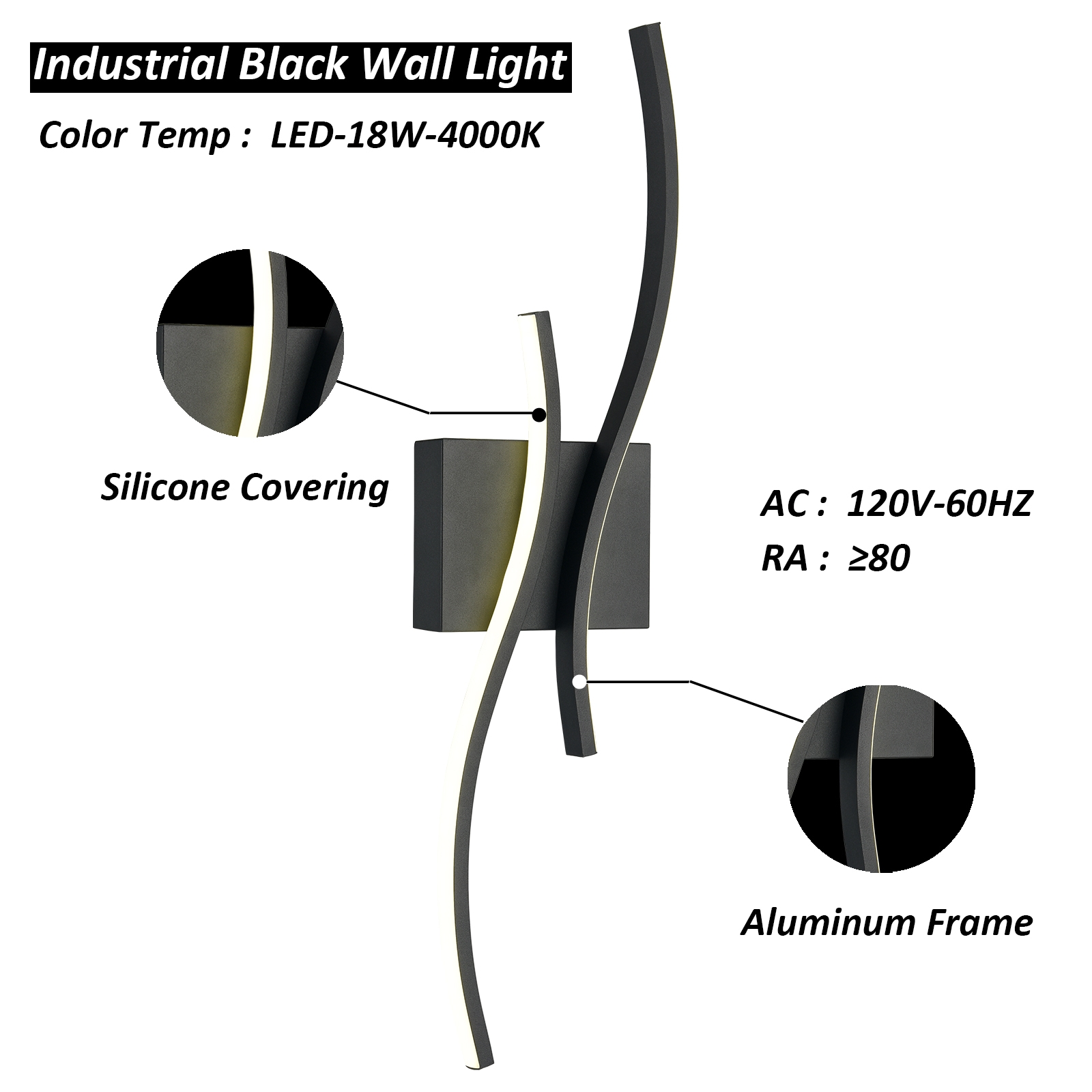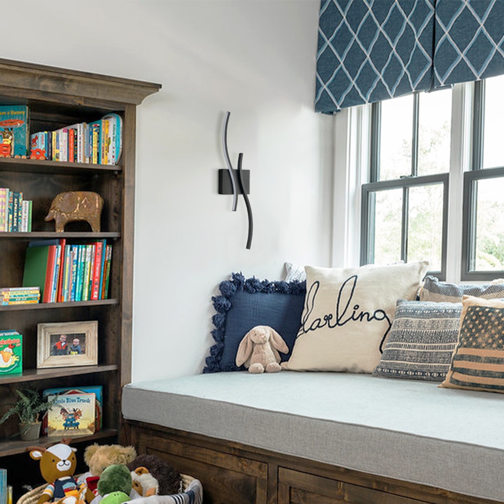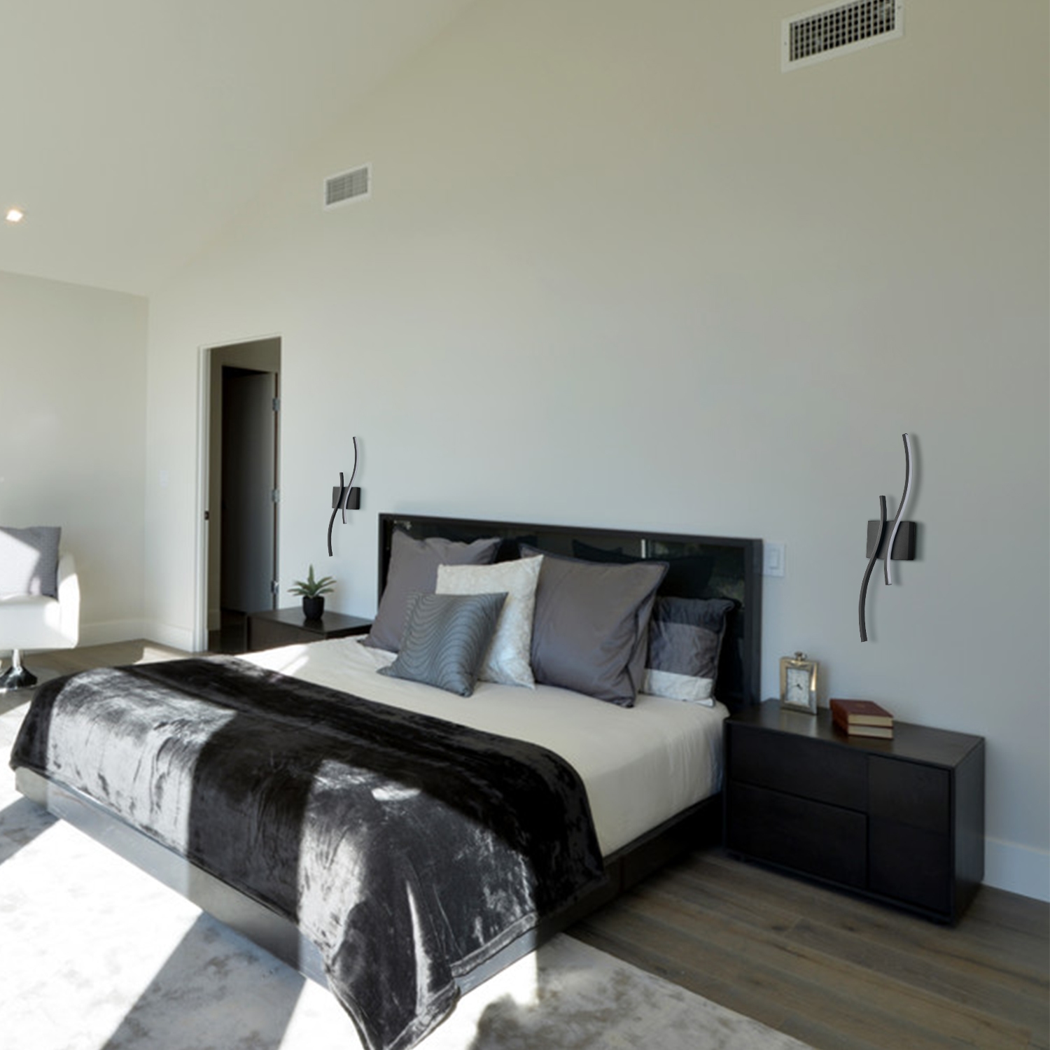 Being coated in a black finish, the LED wall sconce adds a touch of modern elegance to your interior. It shows off a simple but edgy design as an energy-efficient wall light. Two wavy linear bars that are crafted of aluminum and silicon are put together to present a minimalist yet geometric look. It offers a surprising twist and supplies a dash of drama without overpowering the rest of the space. A charming glow shines through the wall light, filling the space without any glare. It is flicker-free and is able to serve as a light source for all your lighting needs. It can be installed horizontally or vertically.