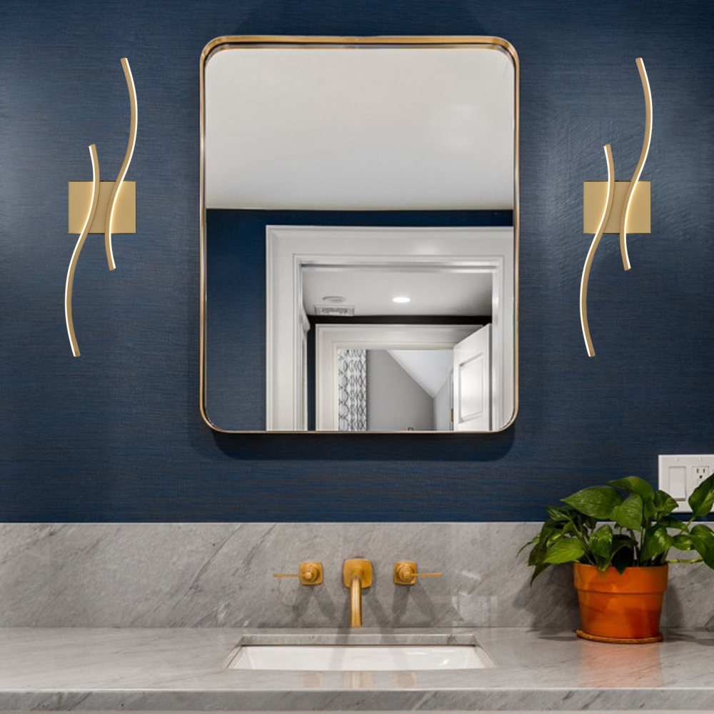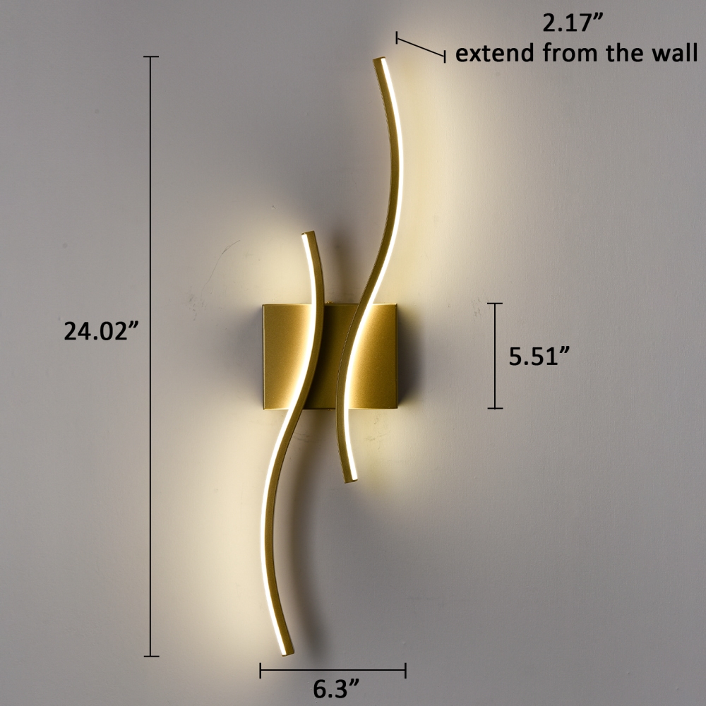 Flaunting a gold finish, the modern LED sconce adds a nice pop of sparkle to your interior. It shows off a simple but edgy design as an energy-efficient wall light. Two wavy linear bars that are crafted of aluminium and silicon are put together to present a minimalist yet geometric look. It offers a surprising twist and supplies a dash of drama without overpowering the rest of the space. A charming glow shines through the light, filling the space without any glare. It is flicker-free and is able to serve as a light source for all your lighting needs. It can be installed horizontally or vertically.