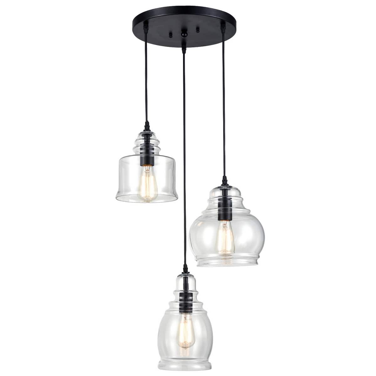 This multi Jar-pendant chandelier is a perfect blend of industrial and modern design. The chandelier showcases (3) adjustable height pendants with different clear glass shades. Add this light to your breakfast nook, dining area or even over tables in a coffee shop, you are sure to gather compliments over this charming collection of pendants.
