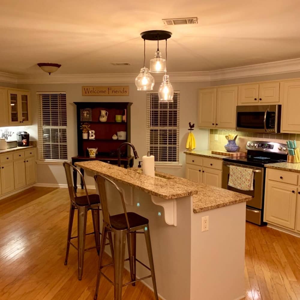 The Farmhouse Pendant Light is absolutely beautiful. We couldn't be more please with how well it went with the house. It was very easy to install. We bought the 3-light one to hang in the kitchen. Very happy with our purchase.