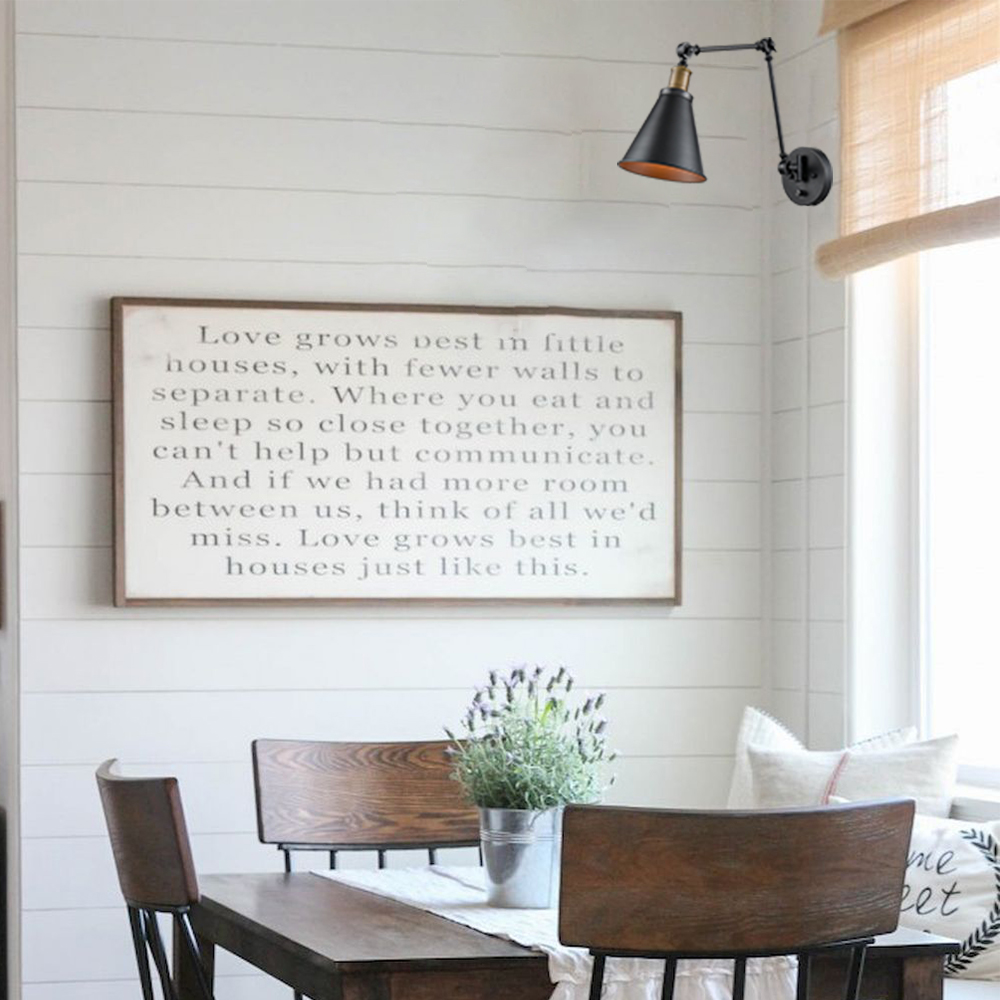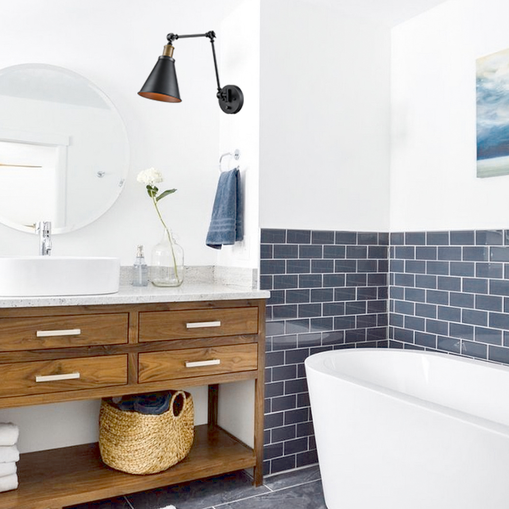 Black finish with antique brass lamp holder brings industrial but chic style. Two rods with rotary pins, you can fully adjust the light direction to suit your lighting need.