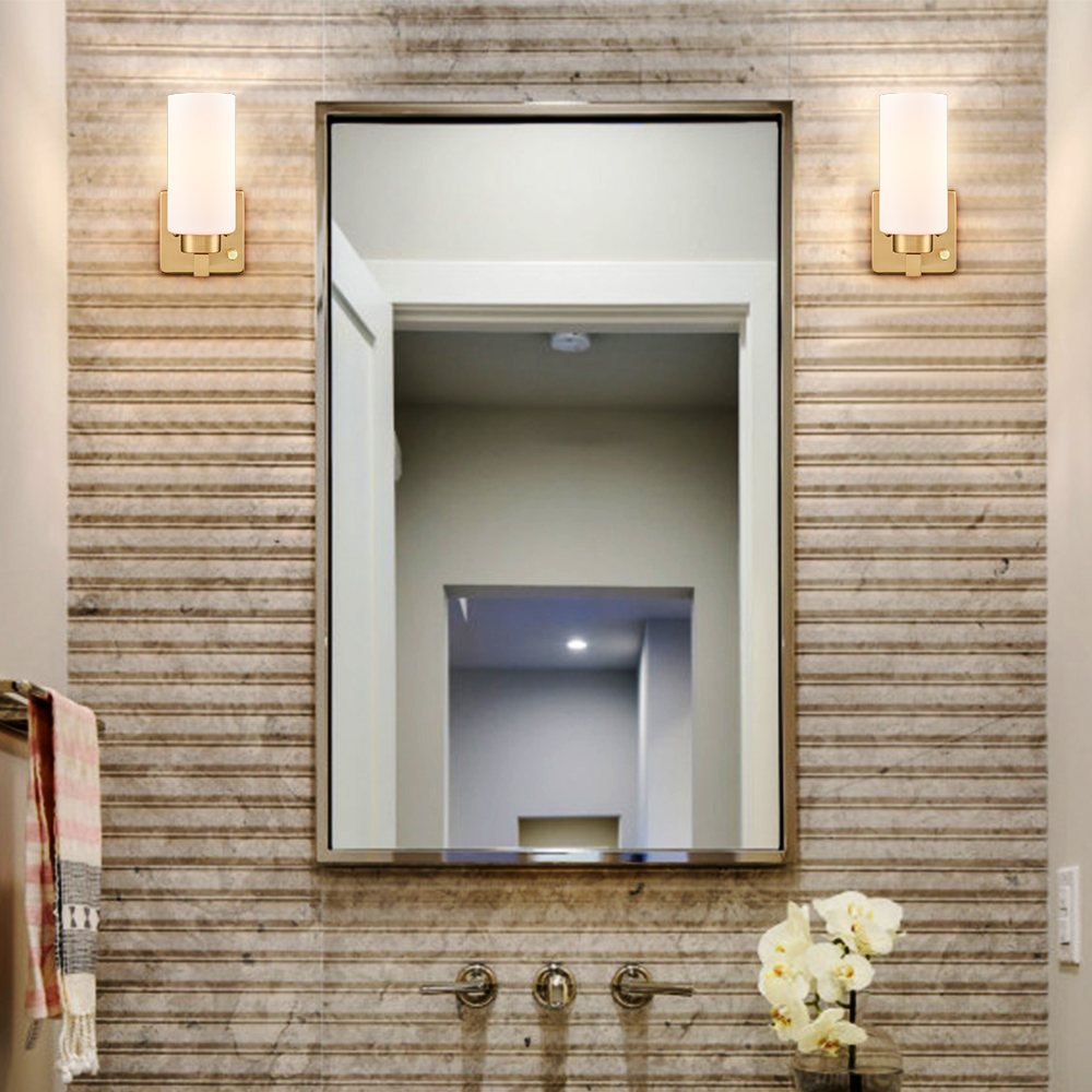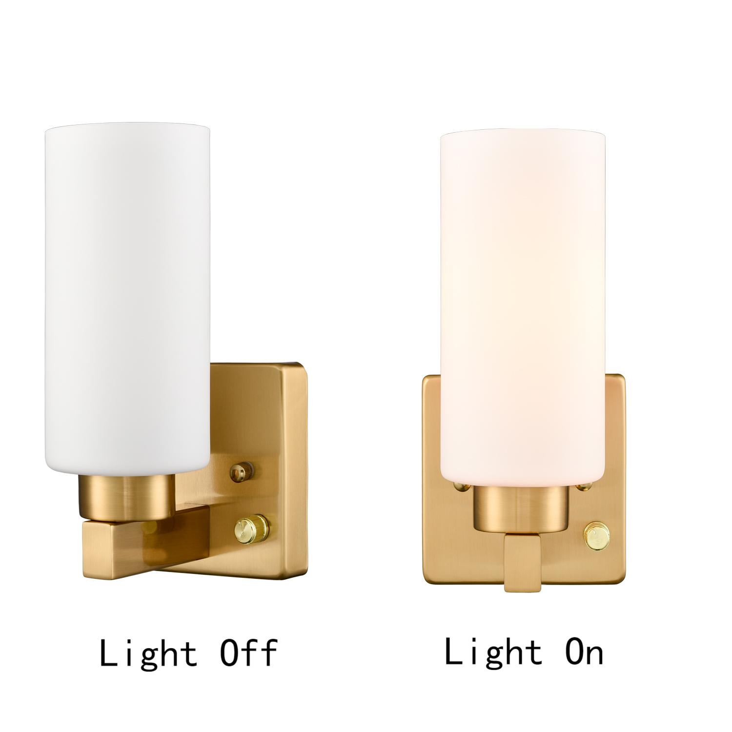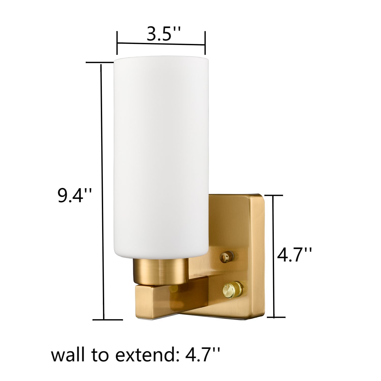 The modern plug in wall sconces’ canopies, lamp holders, and arms are accented with a rustproof electrophoretic brass finish, livening up your interior with a touch of shimmer. Crafted from impurity-free hand-blown glass, their milk glass cylinder shades give your aesthetic a dash of drama and showcase the beauty of geometry. Their shimmery brass finish contrasts the milk glass shades and adds alluring visual interest to the space. Each wall sconce comes with a 78.7-inch plug-in cord. The switch on their canopies is both an on/off switch and a dimmer switch.