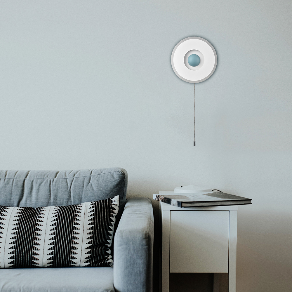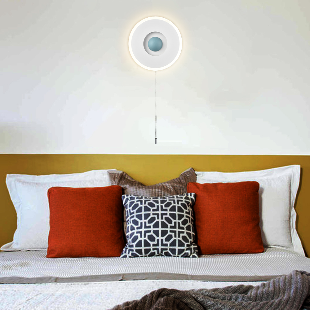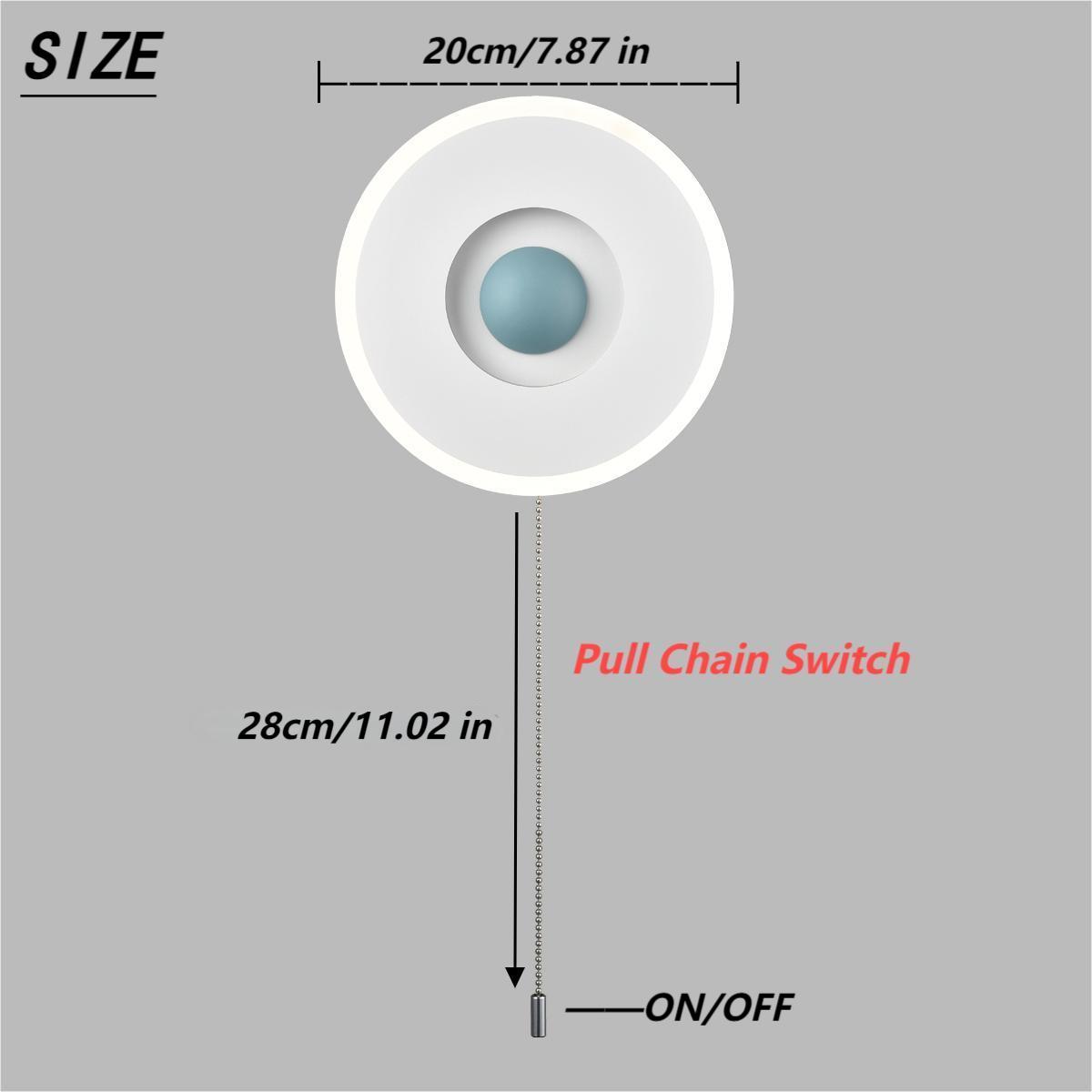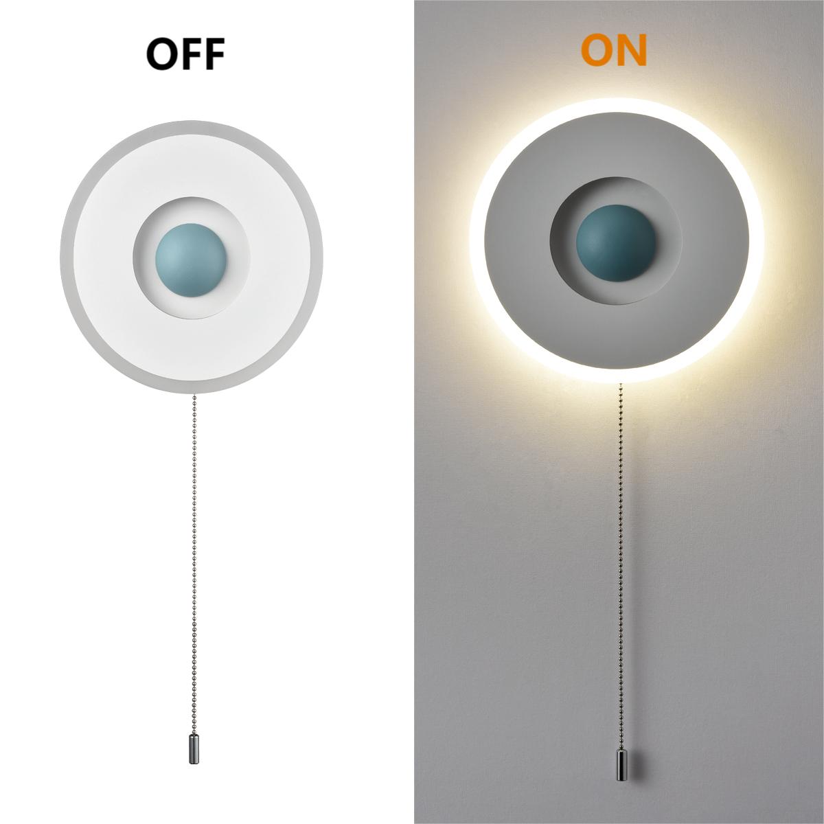 Boasting a matte white finish, the LED wall sconce conveys a cool air of sophistication to your living space. Crafted from acrylic, the rounded lamp body casts an enchanting aura of elegance and showcases the beauty of geometry. It comes with built-in integrated LED PCB and no bulb is needed. The recessed night light supplies a dash of drama and gives the space a snappy look with the turquoise hemisphere in the middle. The LED wall sconce and the night light emit flicker-free light, helping you avoid eyestrain. The pull chain switch (without a dimming function) allows you to turn on/off the wall sconce and the night light easily.