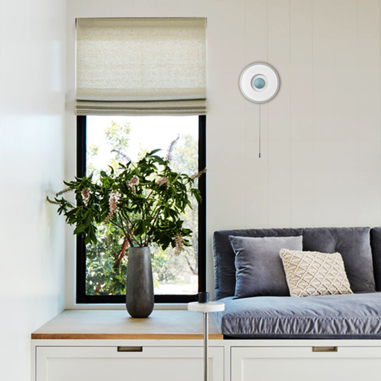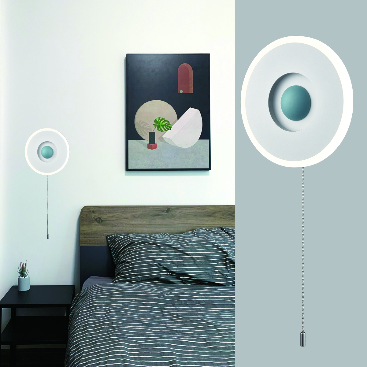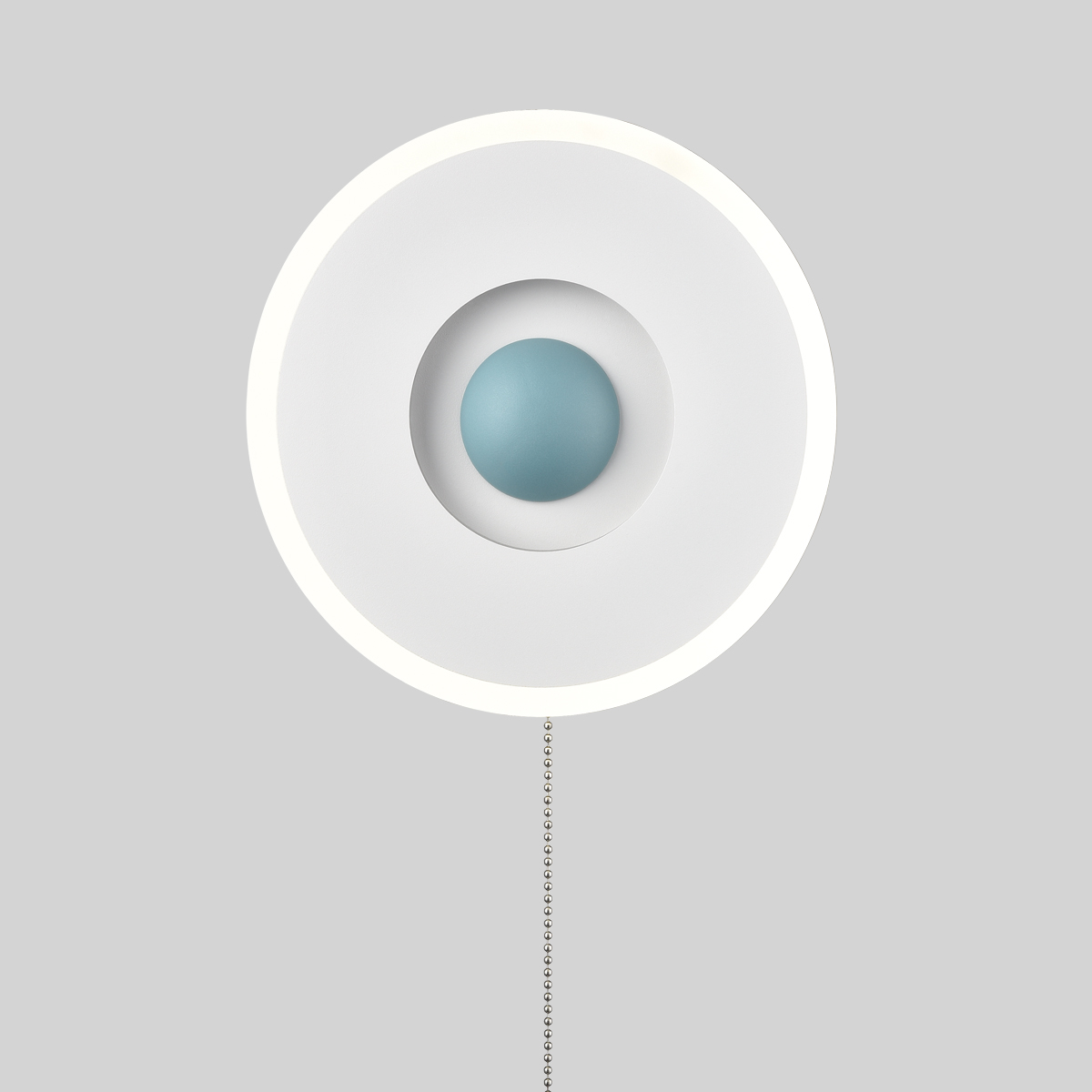 Boasting a matte white finish, the LED wall sconce conveys a cool air of sophistication to your living space. Crafted from acrylic, the rounded lamp body casts an enchanting aura of elegance and showcases the beauty of geometry. It comes with built-in integrated LED PCB and no bulb is needed. The recessed night light supplies a dash of drama and gives the space a snappy look with the turquoise hemisphere in the middle. The LED wall sconce and the night light emit flicker-free light, helping you avoid eyestrain. The pull chain switch (without a dimming function) allows you to turn on/off the wall sconce and the night light easily.