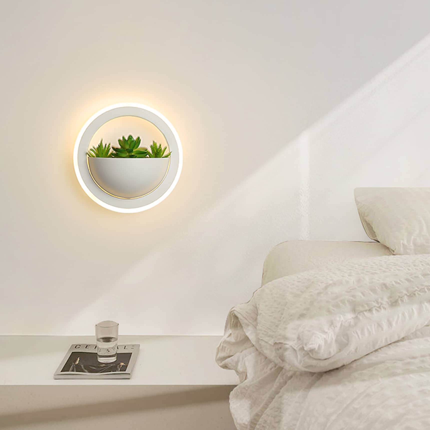 Boasting a matte white finish, the LED wall sconce conveys a cool air of sophistication to your living space. Crafted from acrylic, the semicircular lampshade is perched on the rounded lamp body to showcase the beauty of geometry. It casts an enchanting aura of elegance and supplies a dash of drama. It comes with built-in integrated LED PCB and no bulb is needed. It emit flicker-free light, helping you avoid eyestrain. Feel free to put some preserved plants into the semicircular lampshade to decorate your living space.