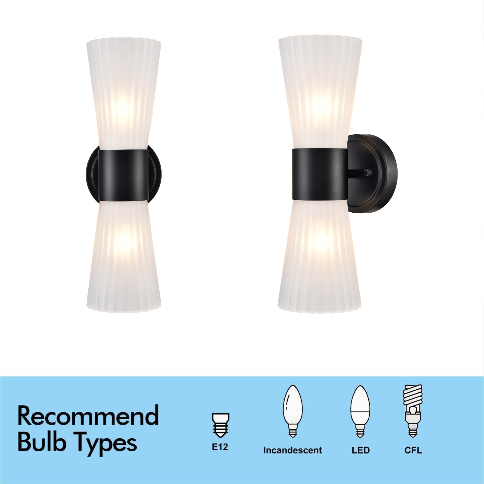 The black wall sconce comes with 2 E12-base sockets which are compatible with a variety of bulb types: LED, INCANDESCENT, CFL.