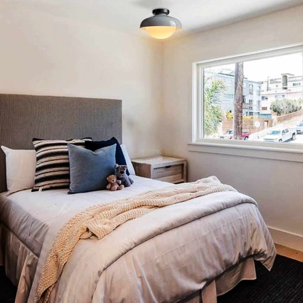 The installation of CLAXY Industrial Ceiling Light Fixture was straightforward. The metal lampshade is painted white along with a frosted opal glass to diffuse the light. Since it's flush mount, it looks great even in a low ceiling room/area.