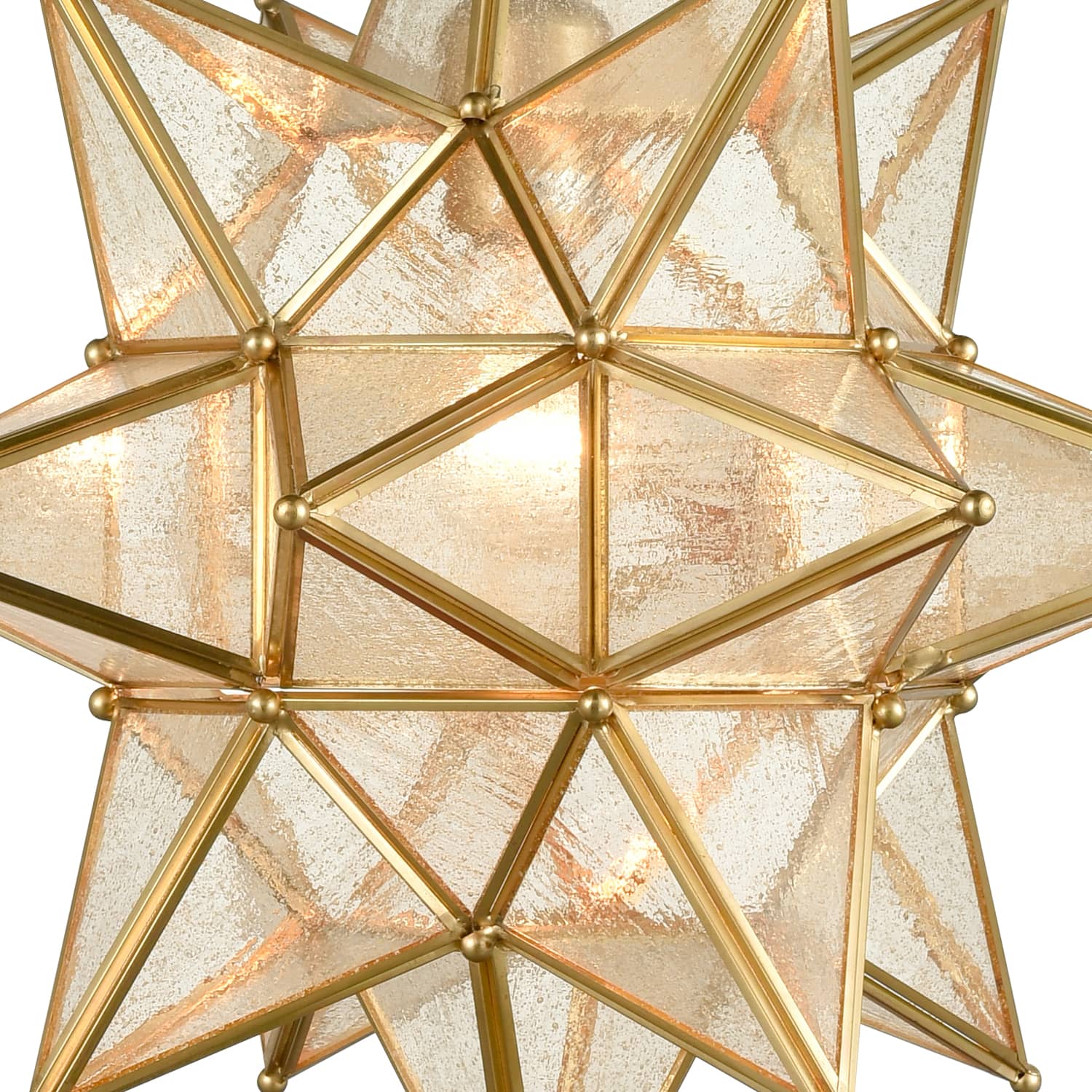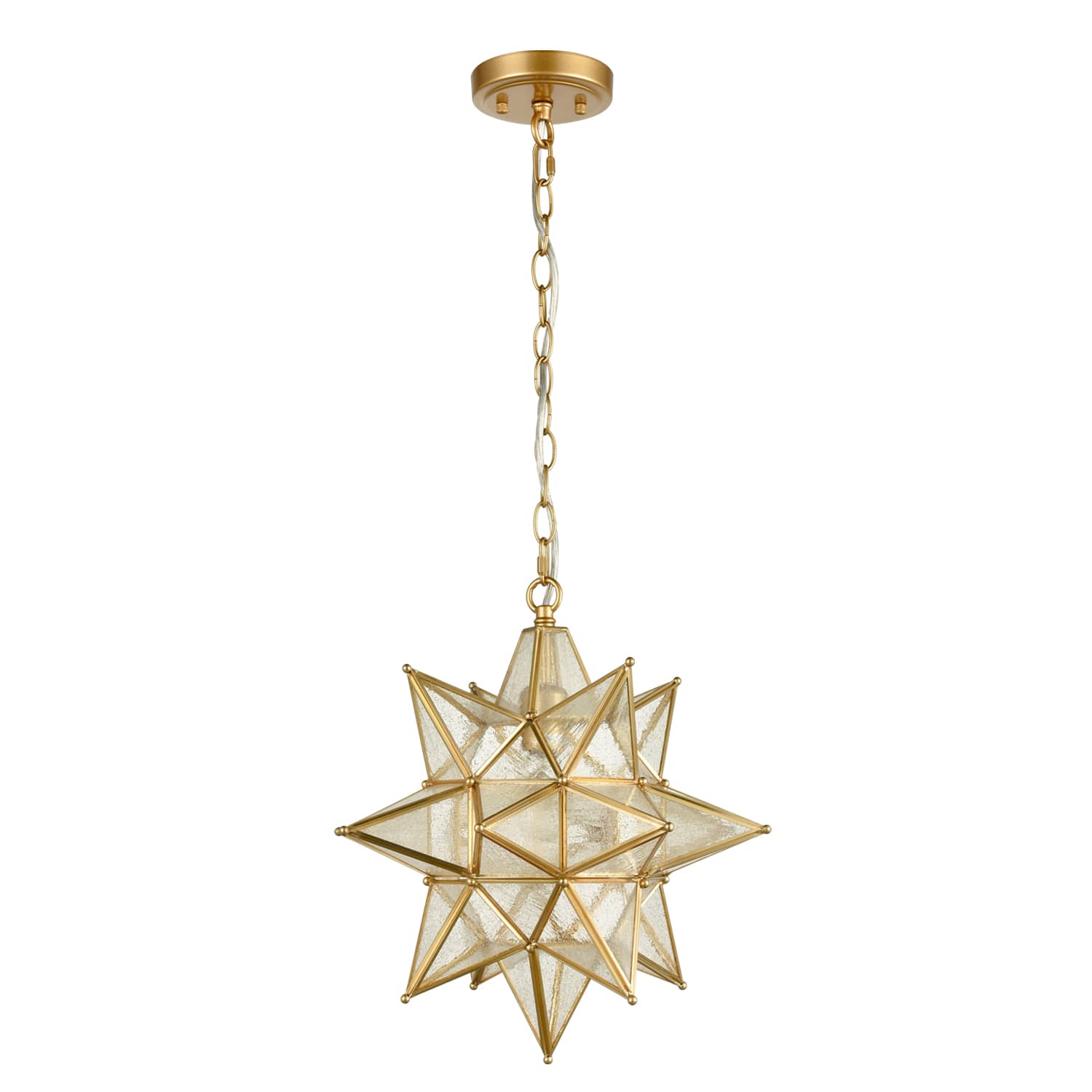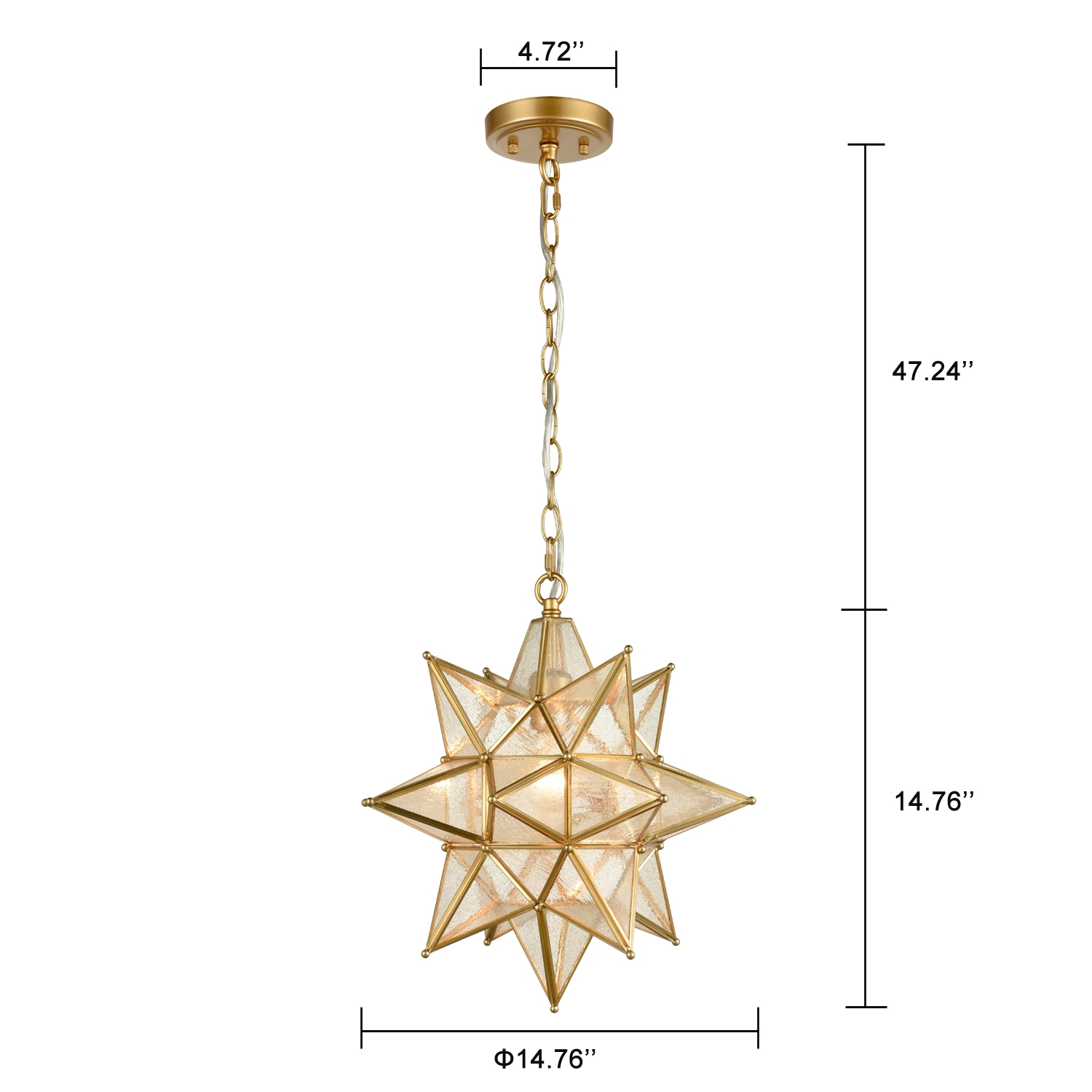 • 	Moravian Star Pendant Chandelier Seeded Glass Gold Light 13 Inches