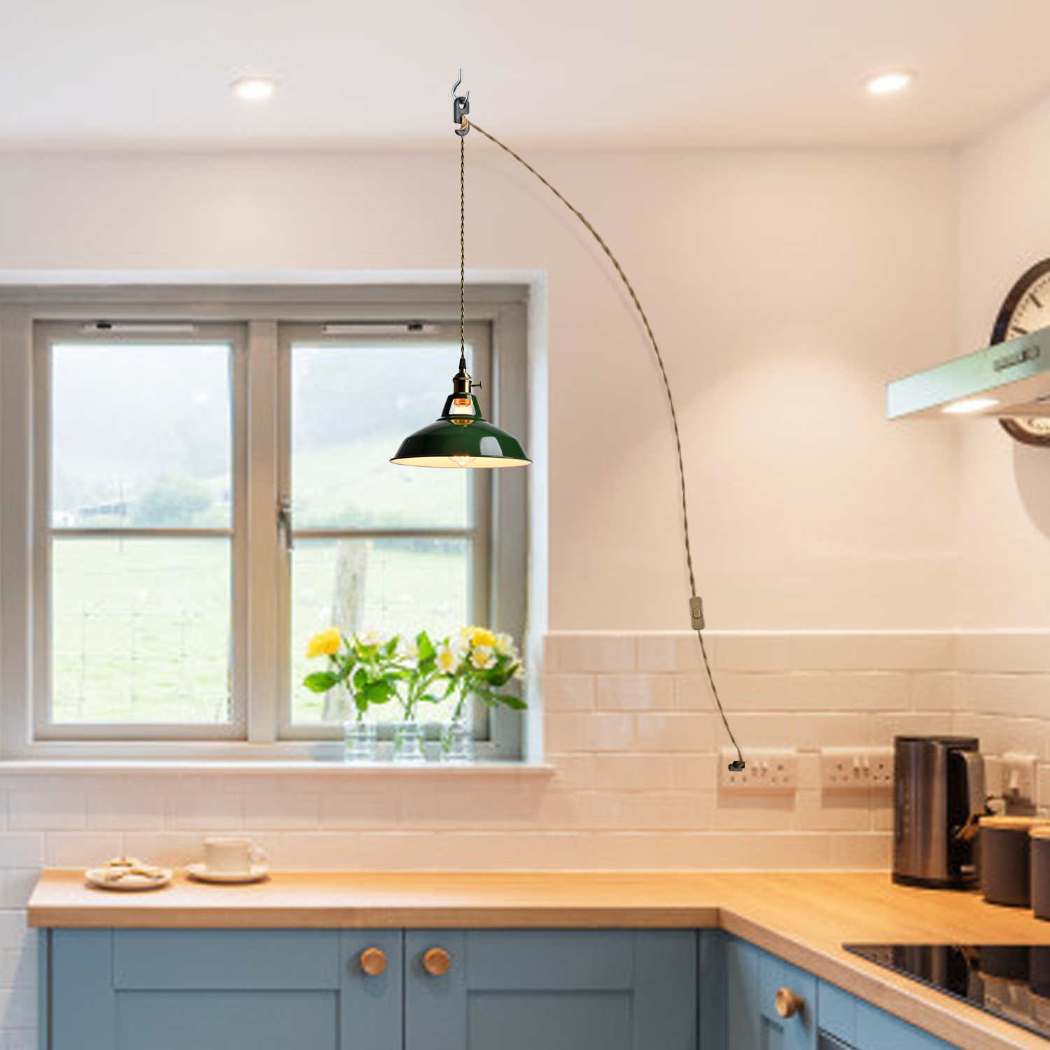 • Macaron Plug-in Kitchen Pendant Light Adjustable Hanging Height