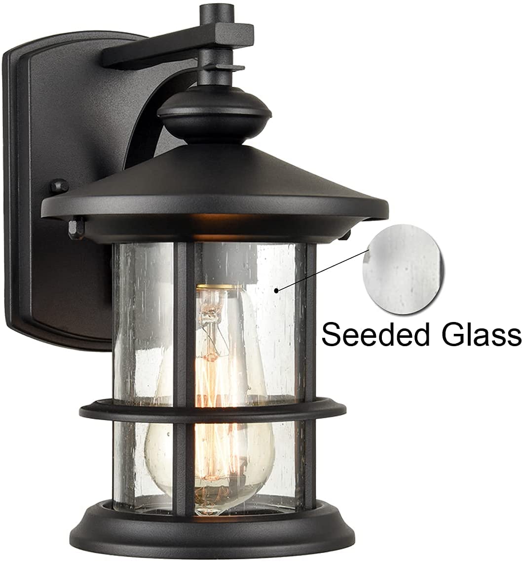 With sand black finish and a seedy glass lamp shade, the waterproof wall sconce is hardwired and presents a antique retro style, decorating exterior space of your home.
