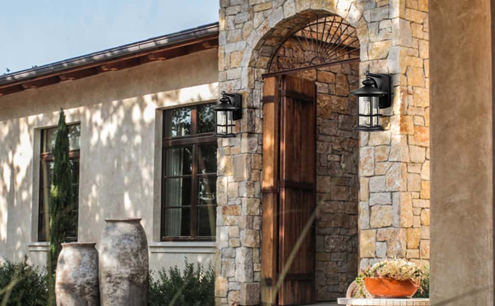 With sand black finish and a seedy glass lamp shade, the waterproof wall sconce is hardwired and presents a antique retro style, decorating exterior space of your home.