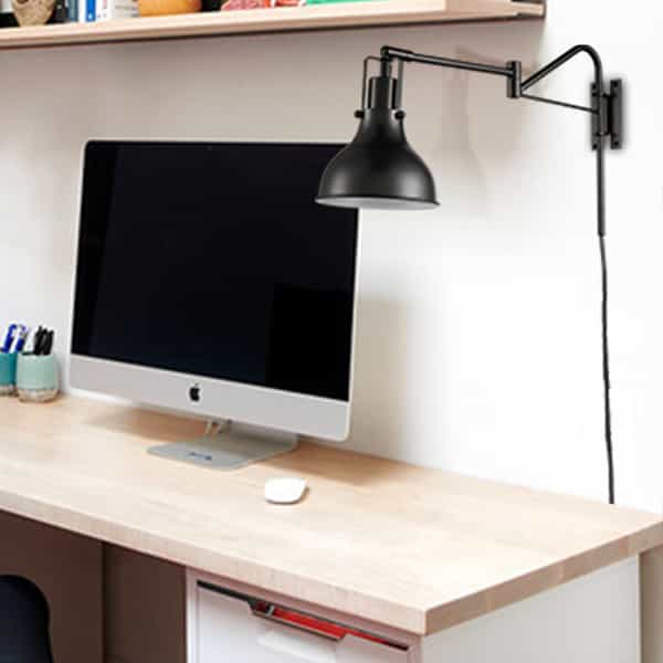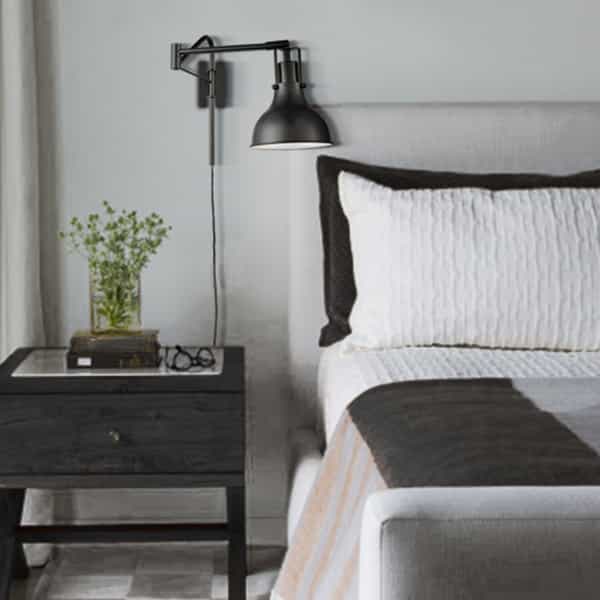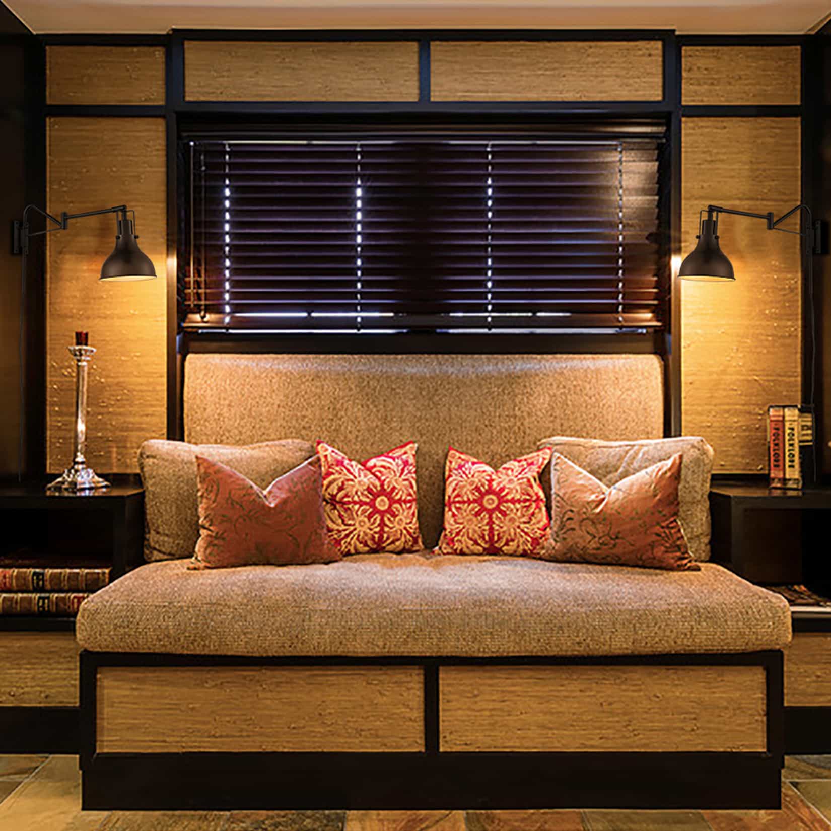 The wall sconce’s outer surface of dome shade, swing arm and backplate are finished in semigloss black while its inner surface of the dome shade is dressed in a white finish. Its beautiful dual finish makes an industrial yet classic statement in your living space.