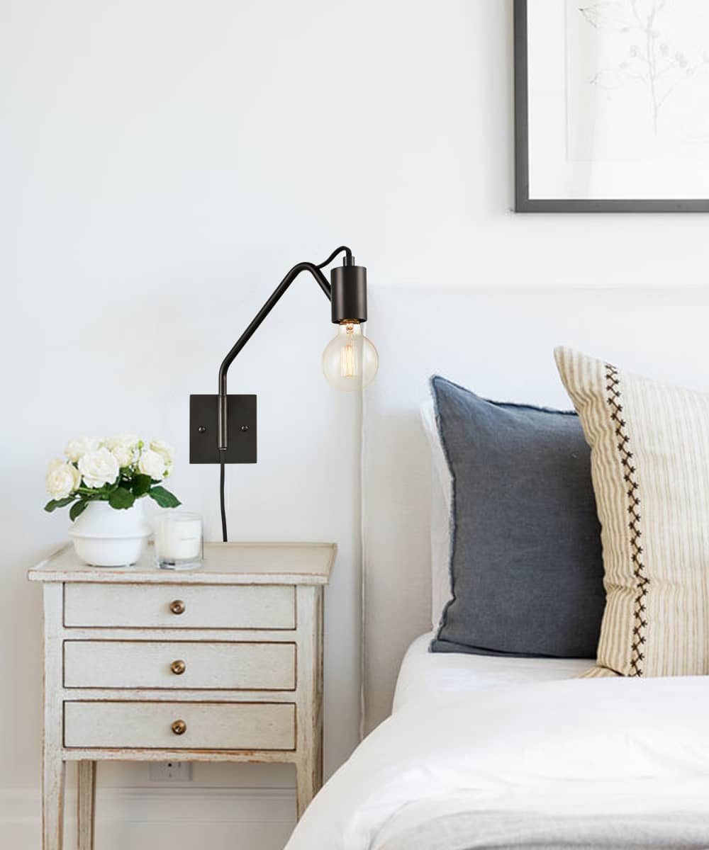 The modern plug-in wall sconces' semi-gloss black finish livens up your home with a dash of drama. Their minimalist, pared-down silhouette adds a perfect finishing touch and presents timeless elegance to your living space. The switch on the plug-in cord of the wall sconces is just an on/off switch without a dimming function. Feel free to adjust their swing arms horizontally to suit your different lighting needs. They come with 70.8-inch fabric cords.
