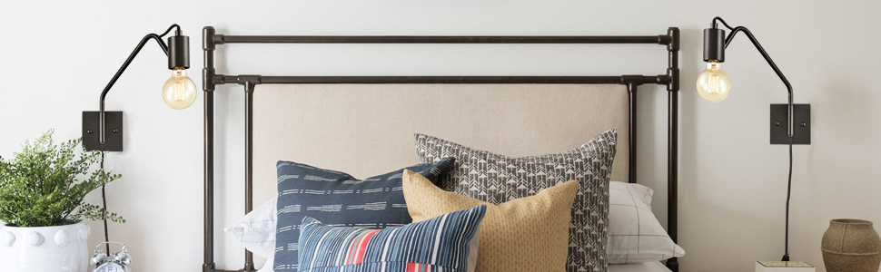 The modern plug-in wall sconces' semi-gloss black finish livens up your home with a dash of drama. Their minimalist, pared-down silhouette adds a perfect finishing touch and presents timeless elegance to your living space. The switch on the plug-in cord of the wall sconces is just an on/off switch without a dimming function. Feel free to adjust their swing arms horizontally to suit your different lighting needs. They come with 70.8-inch fabric cords.